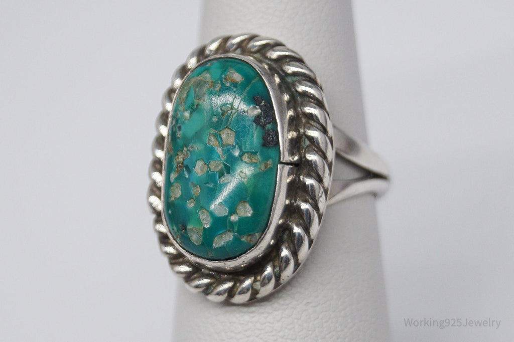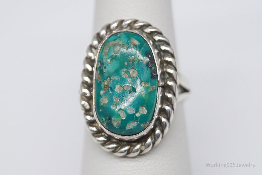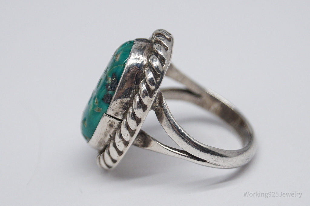 Vintage Native American Turquoise Unsigned Silver Ring - Size 6.25