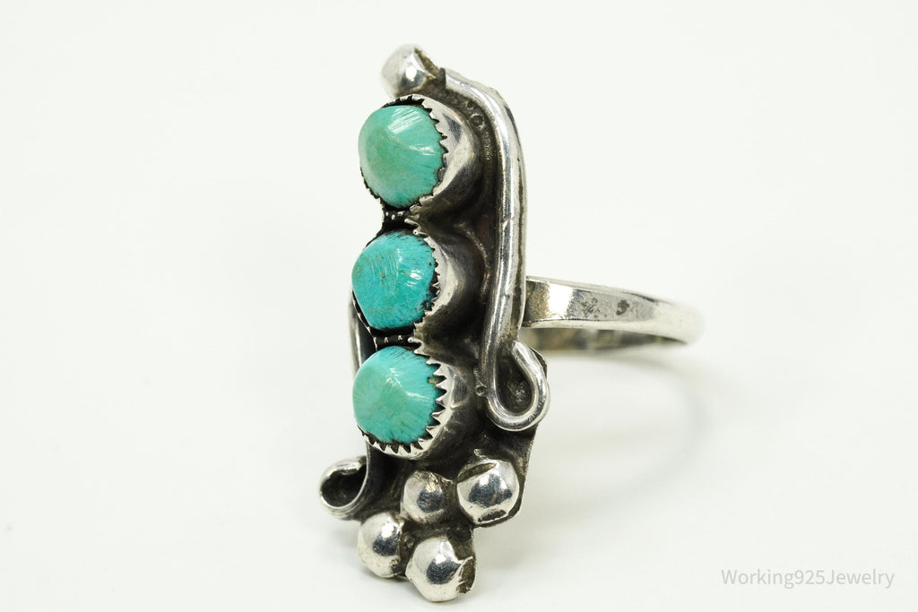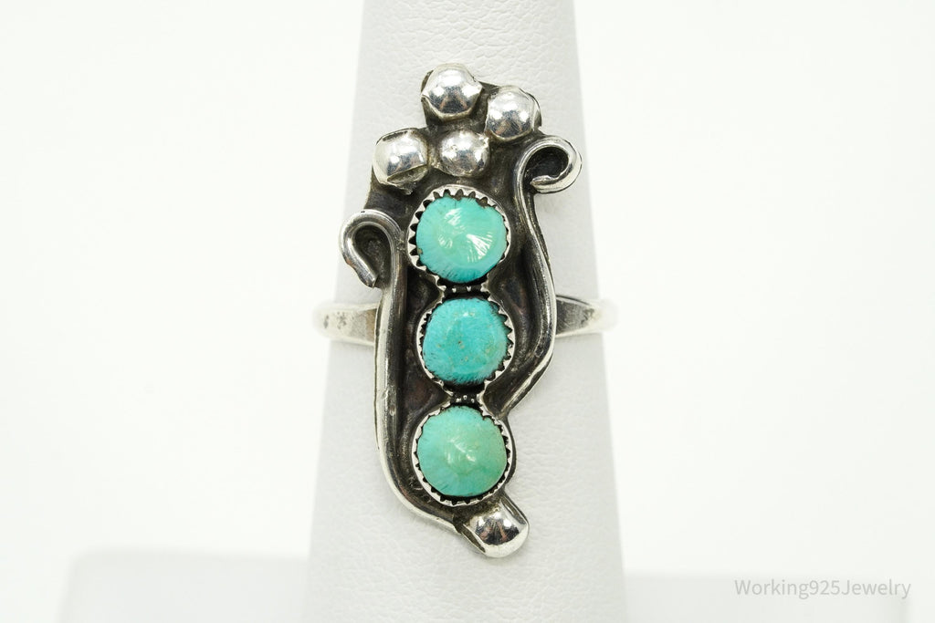 Vintage Native American Turquoise Unsigned Silver Ring - Size 6