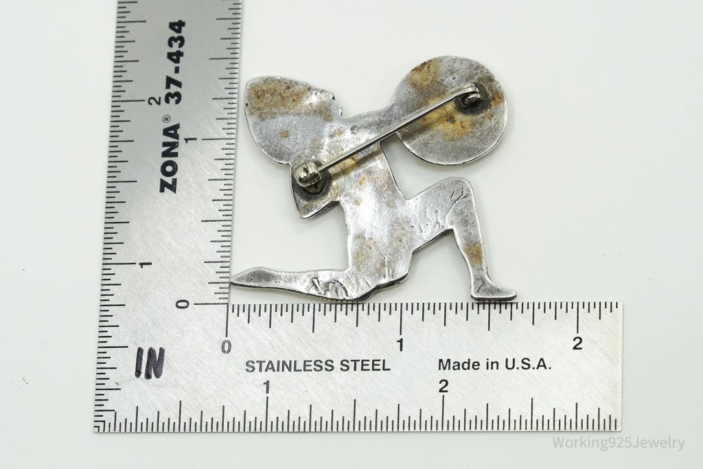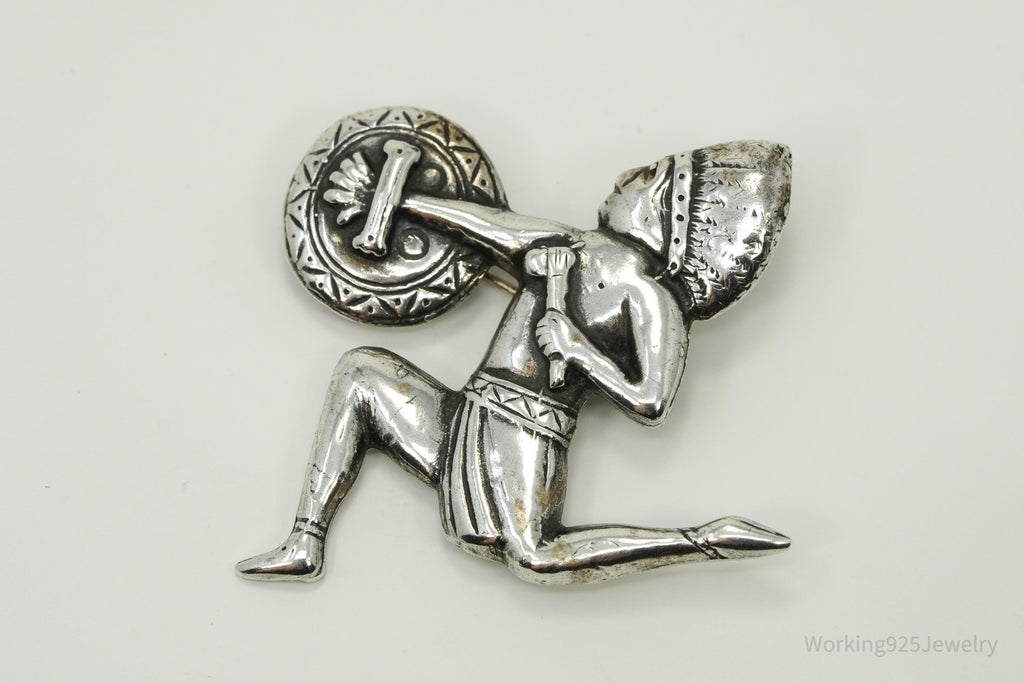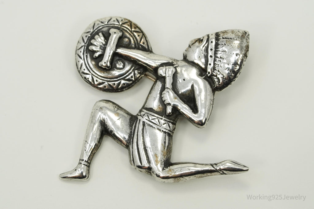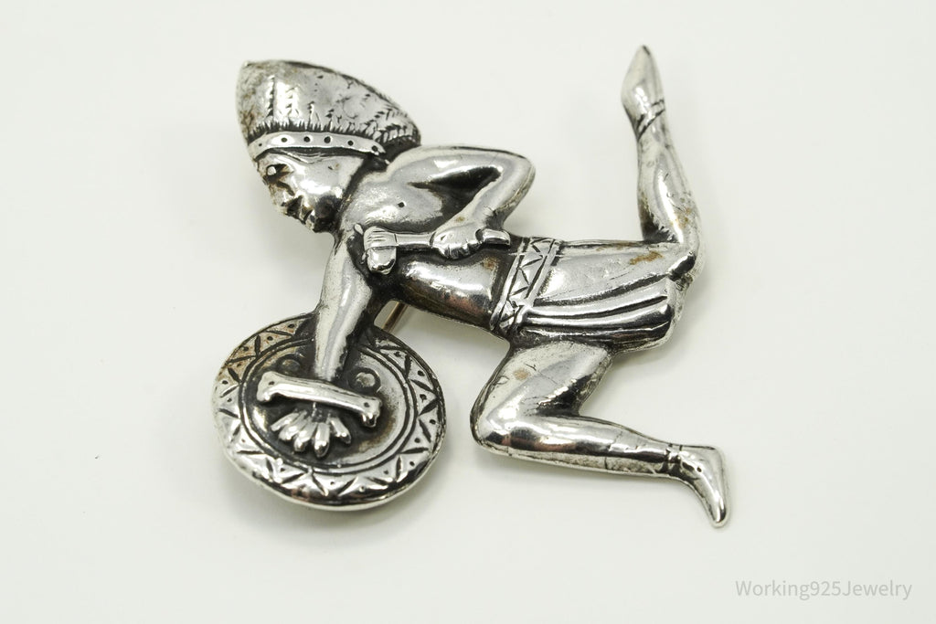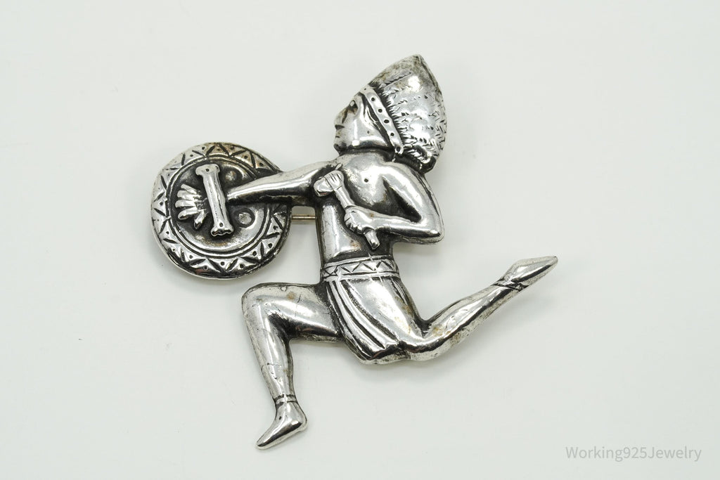 Vintage Native American Warrior Unsigned Silver Brooch Pin