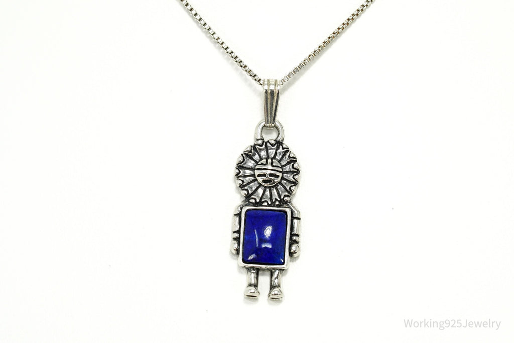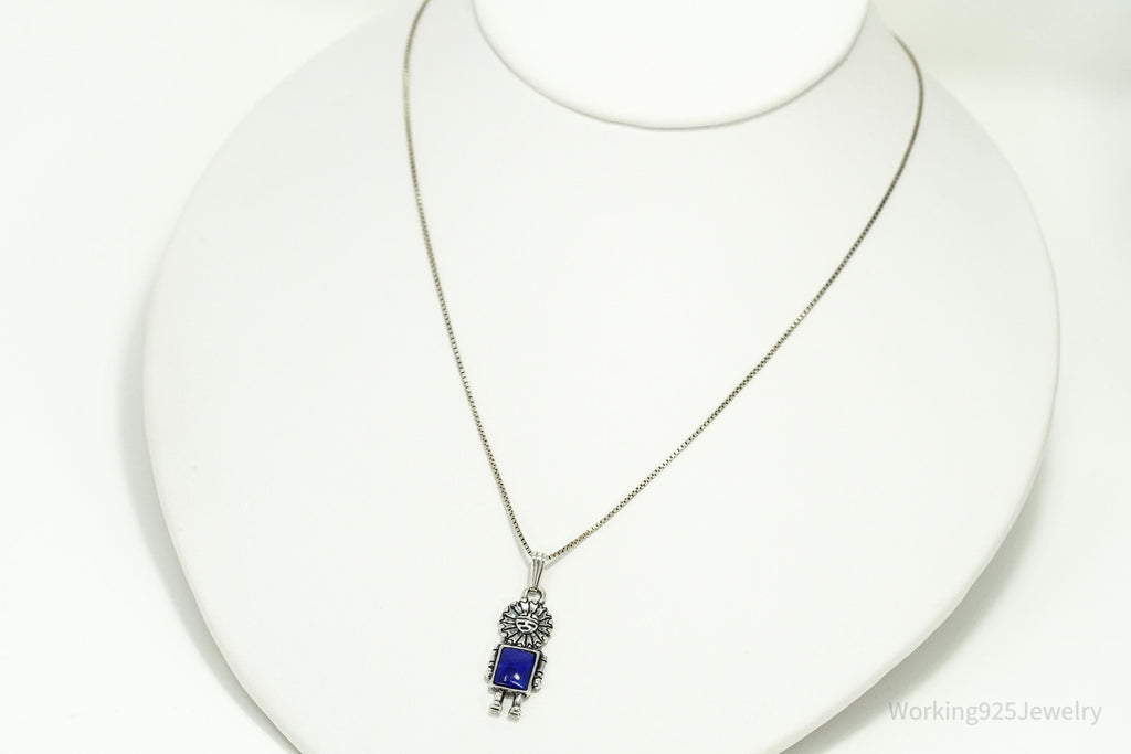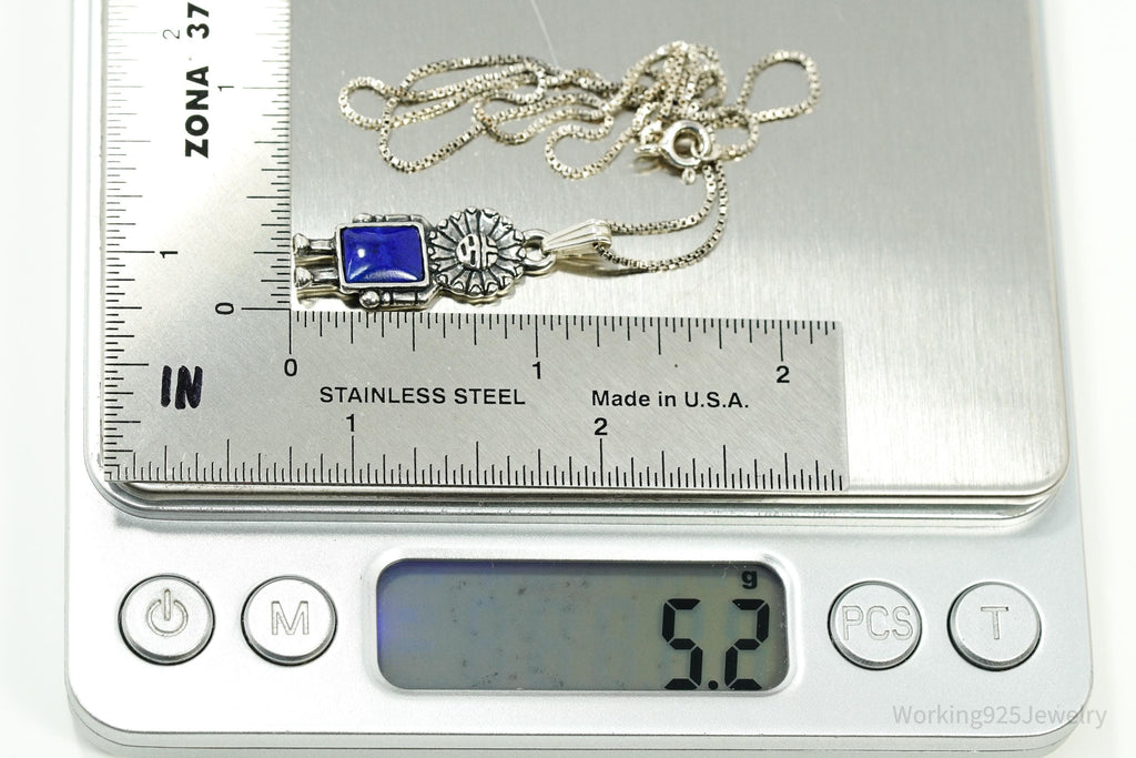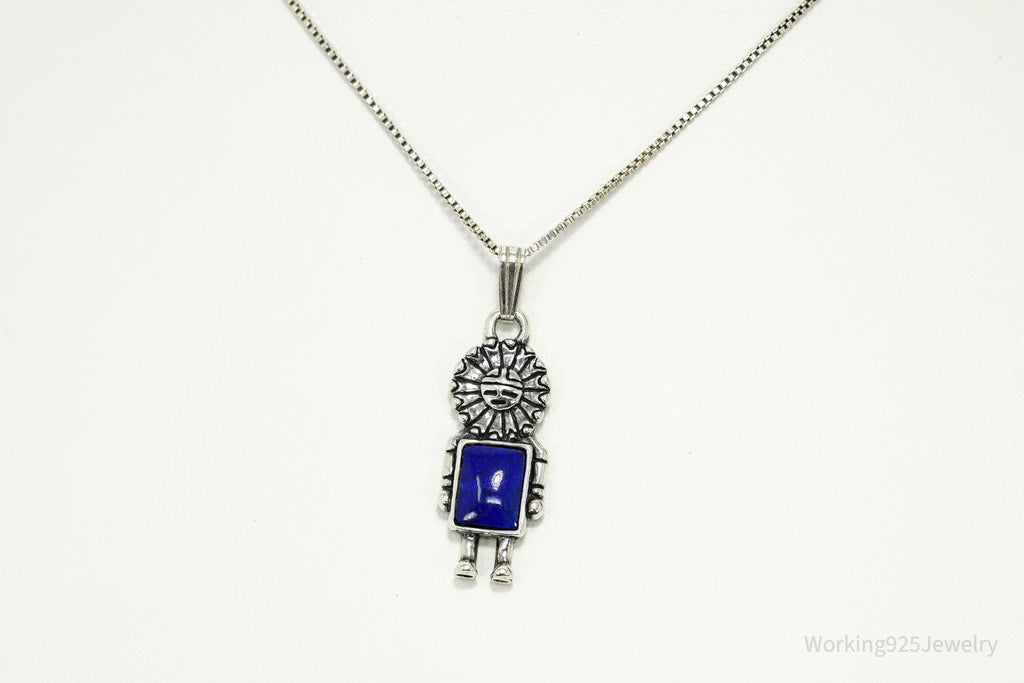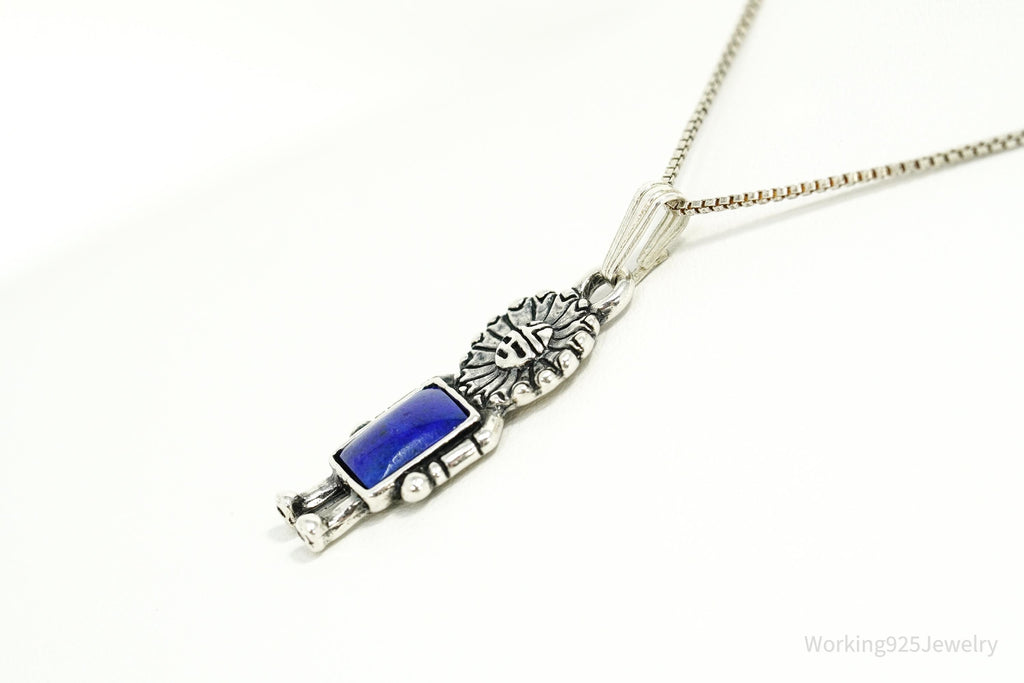 Vintage Native Carolyn Pollack Lapis Lazuli Tawa Sterling Silver Necklace 18"