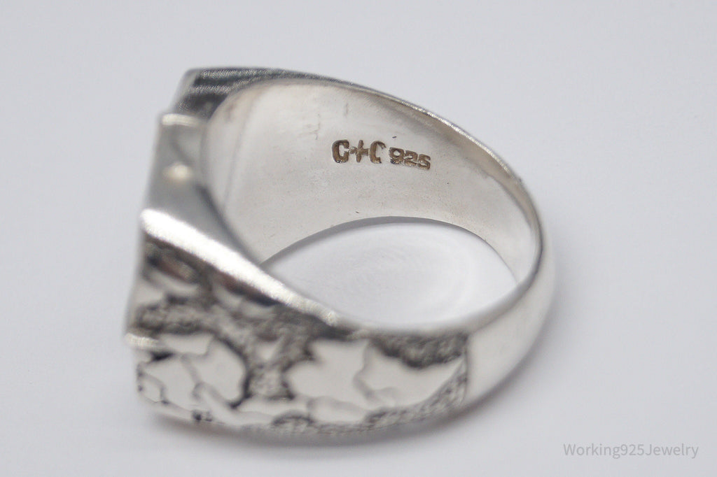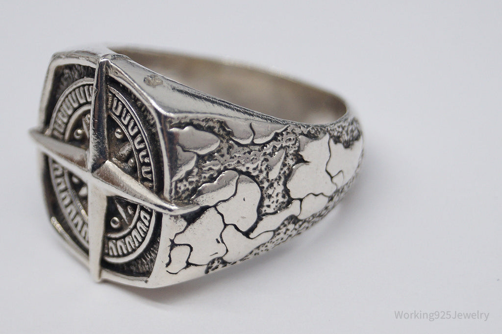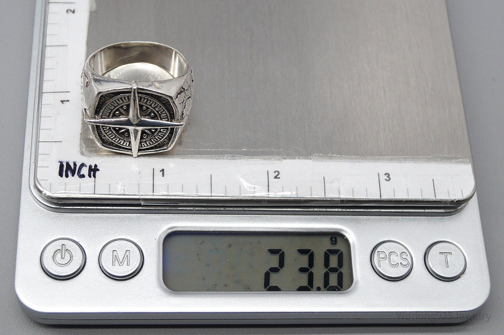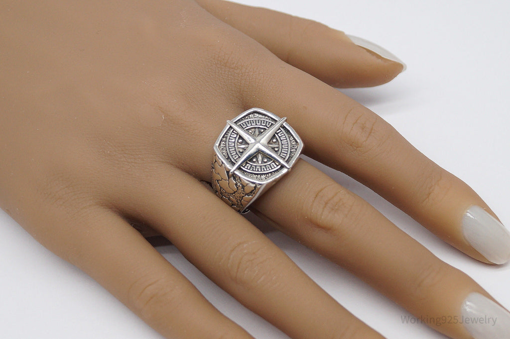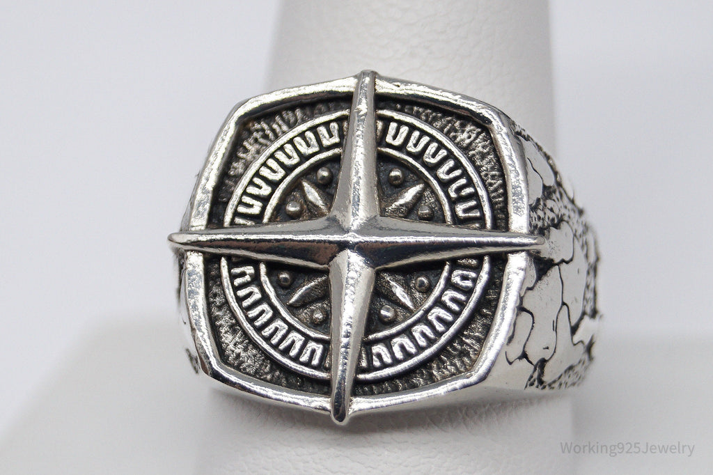 Vintage Nautical Style Compass Sterling Silver Ring - Size 11