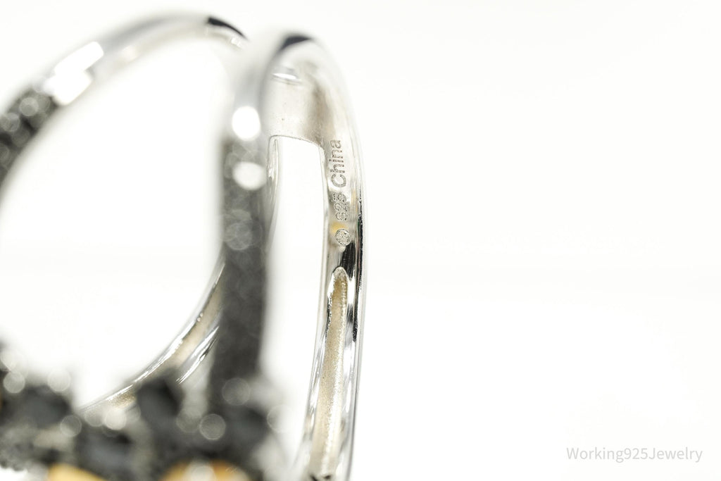 Vintage Opal & Black Spinel Sterling Silver Statement Ring - Size 9