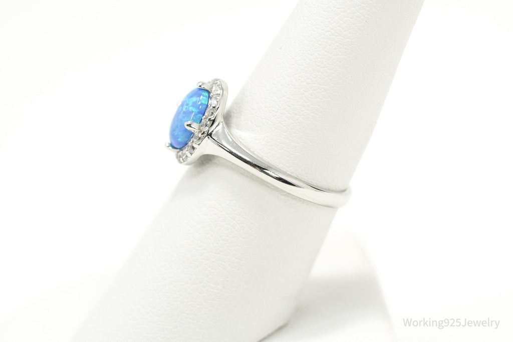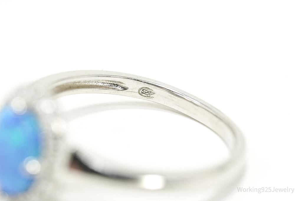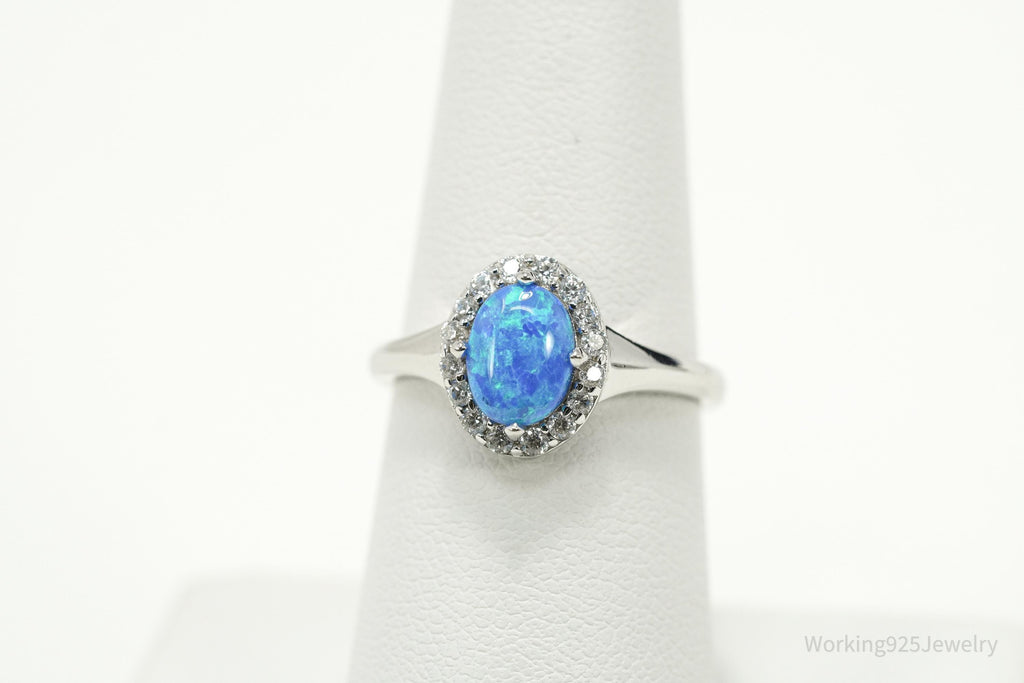 Vintage Opal & Cubic Zirconia Sterling Silver Ring - Size 7