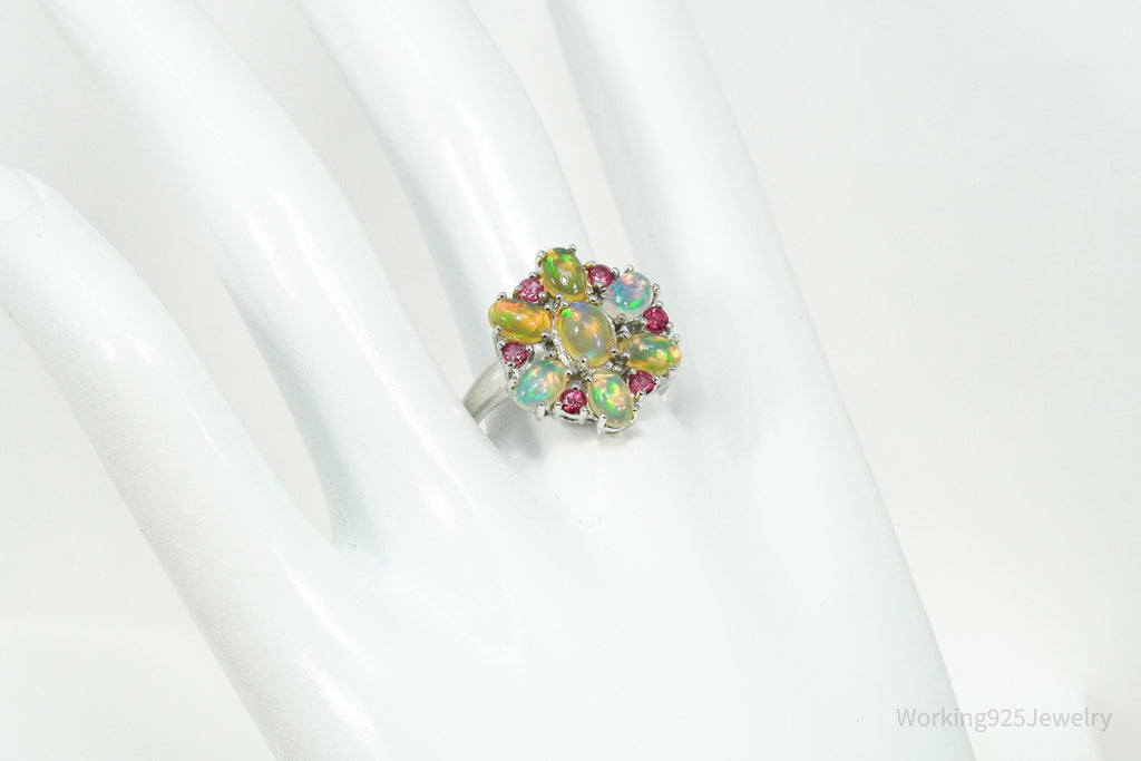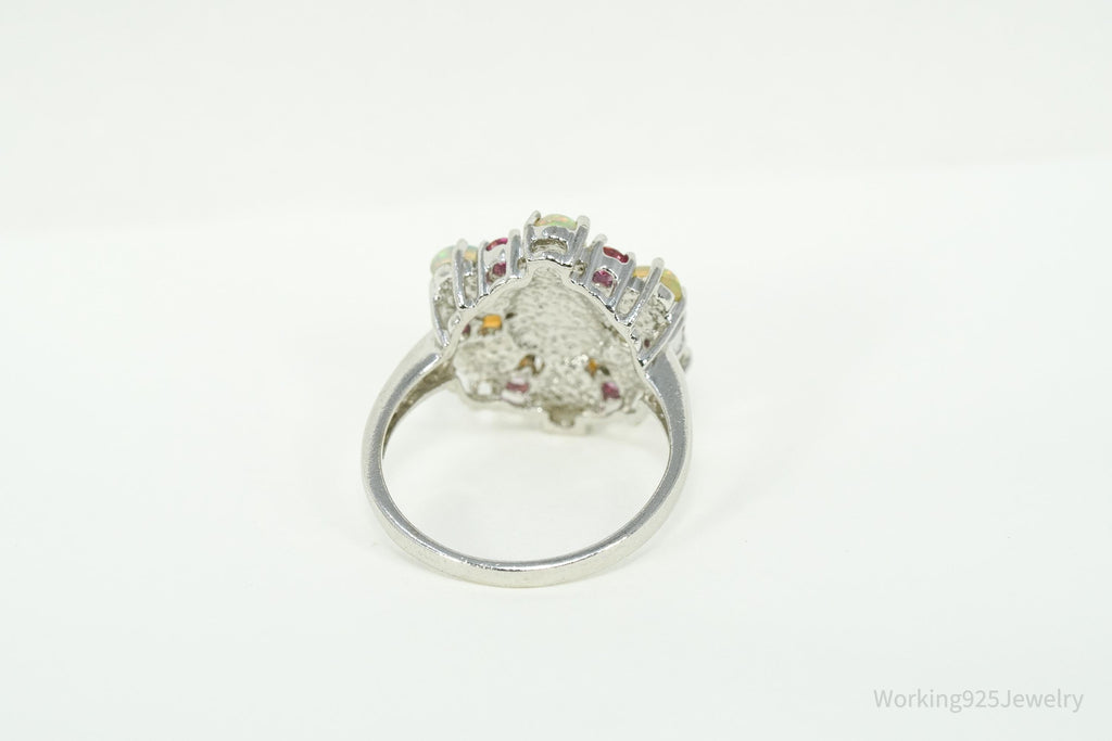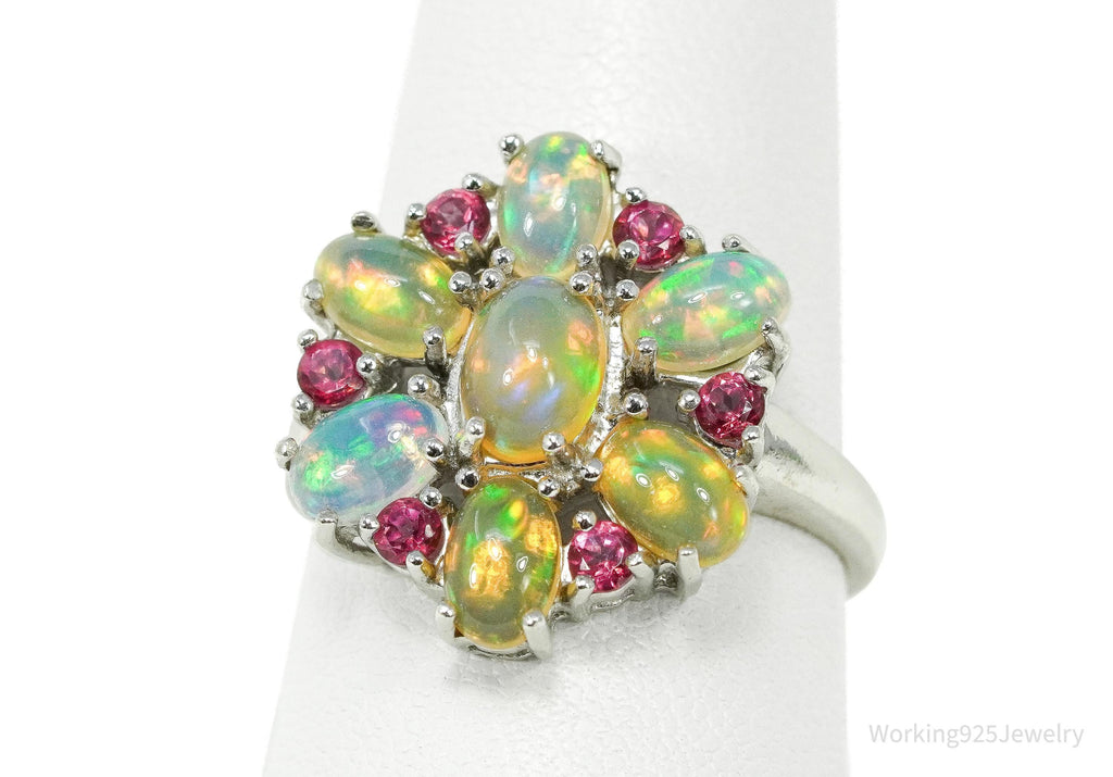 Vintage Opal & Pink Topaz Sterling Silver Ring - Size 9