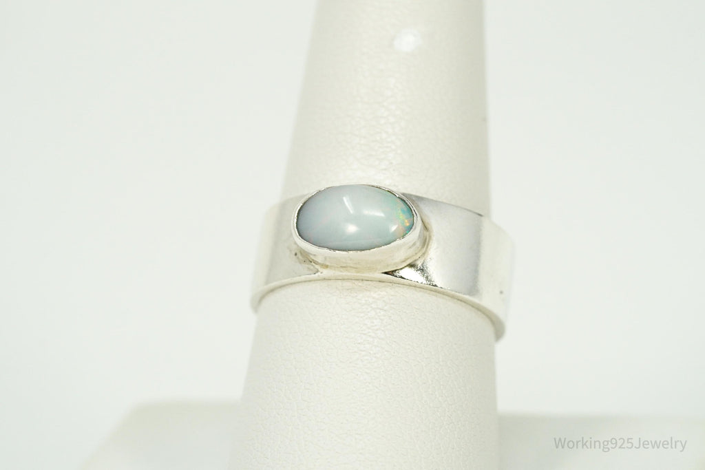 Vintage Opal Sterling Silver Band Ring - Size 8.75
