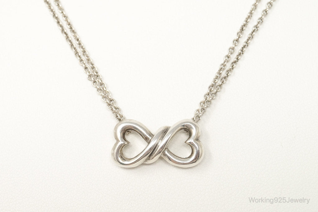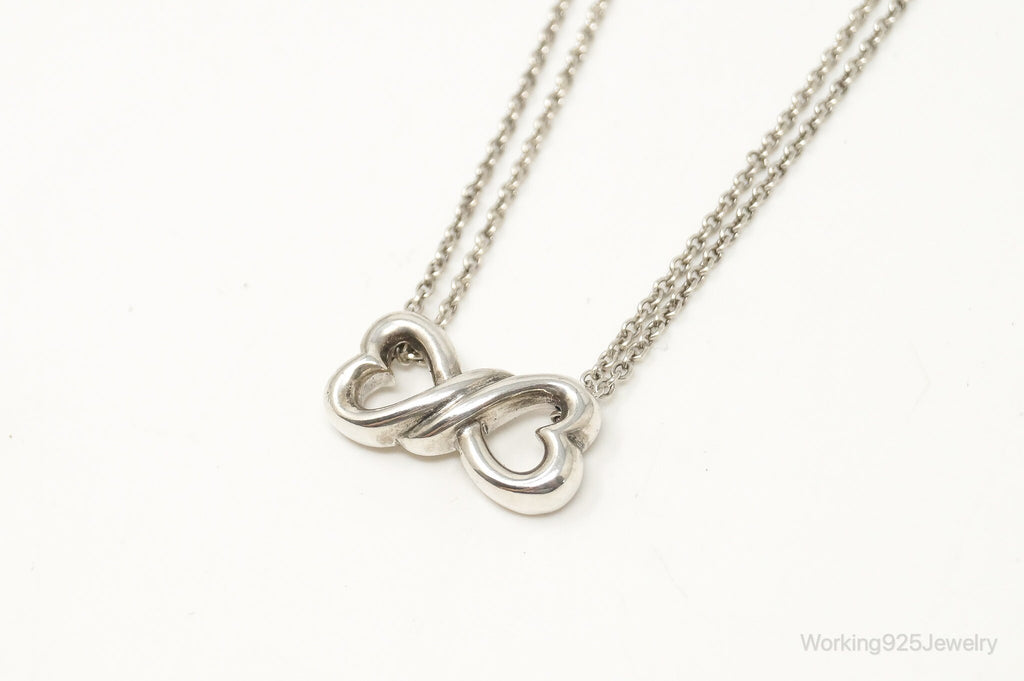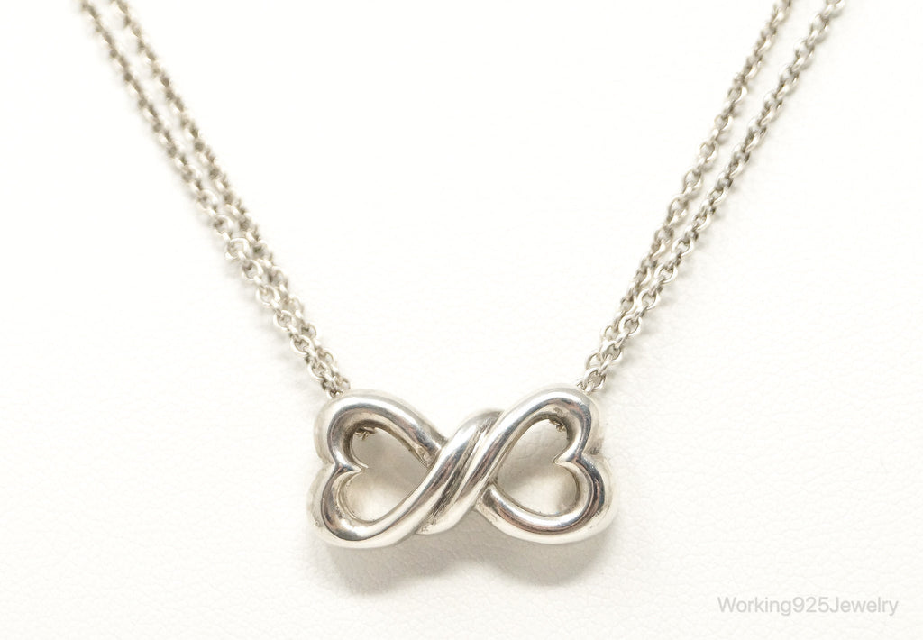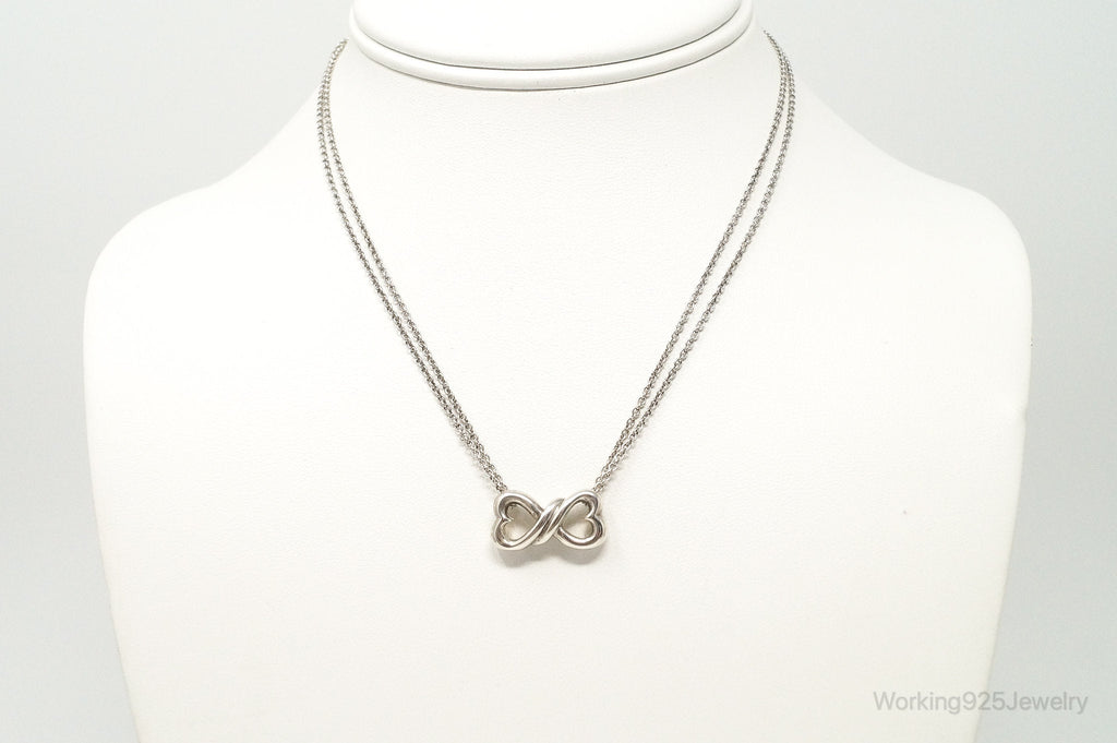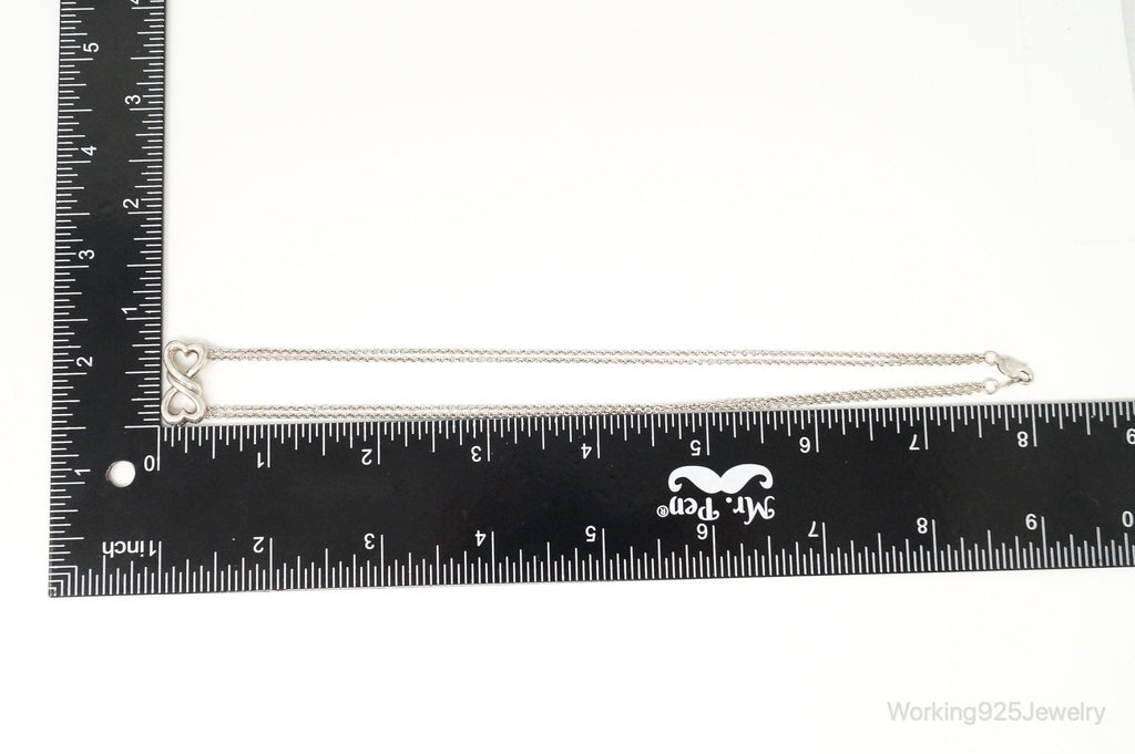 Vintage Open Linked Hearts Lovers Infinity Sterling Silver Necklace