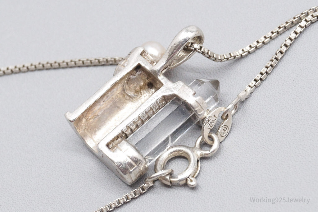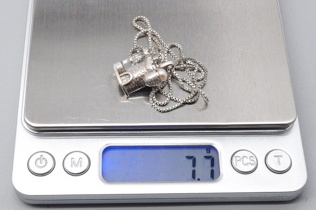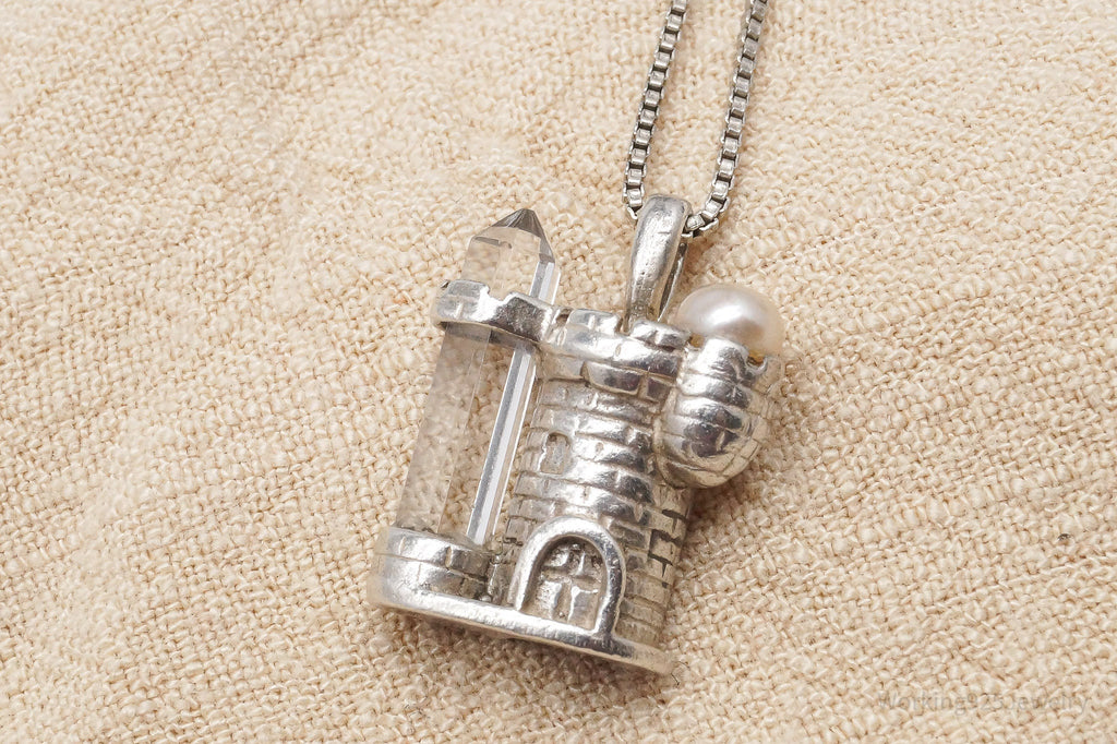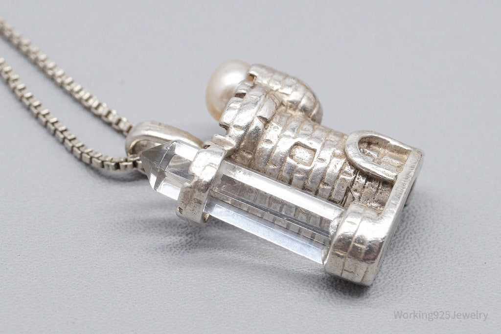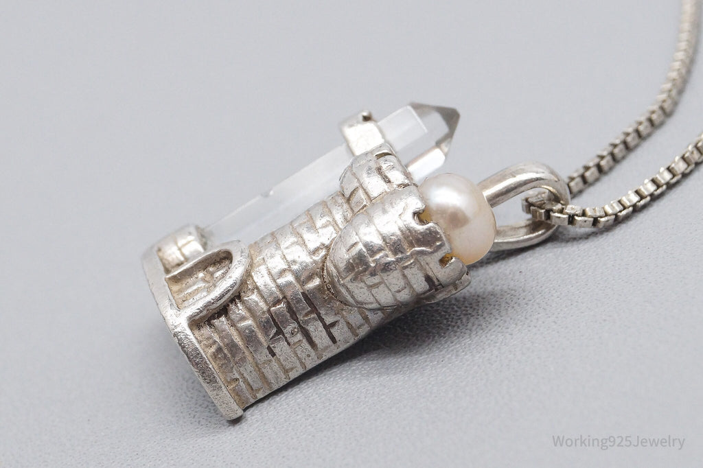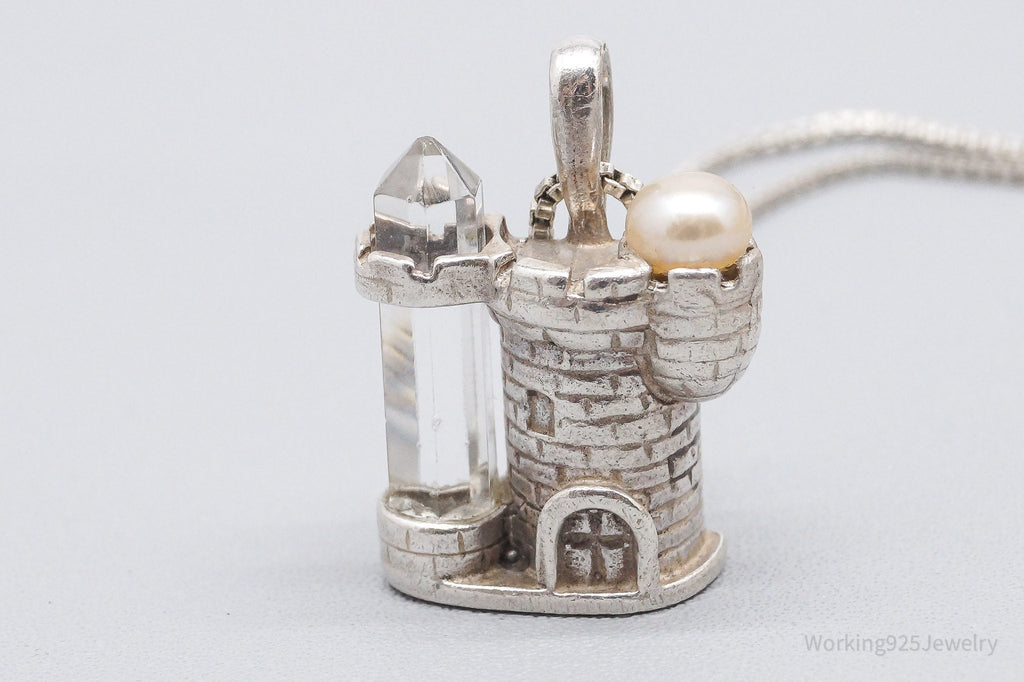 Vintage Pearl & Crystal Castle Sterling Silver Necklace 18"