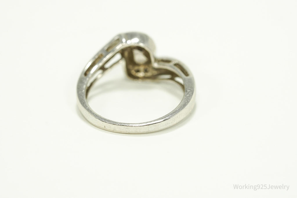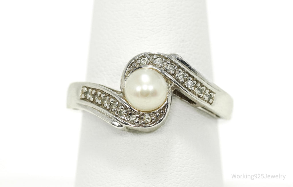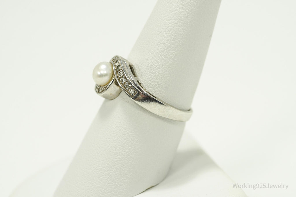 Vintage Pearl & Cubic Zirconia Sterling Silver Ring - Size 8