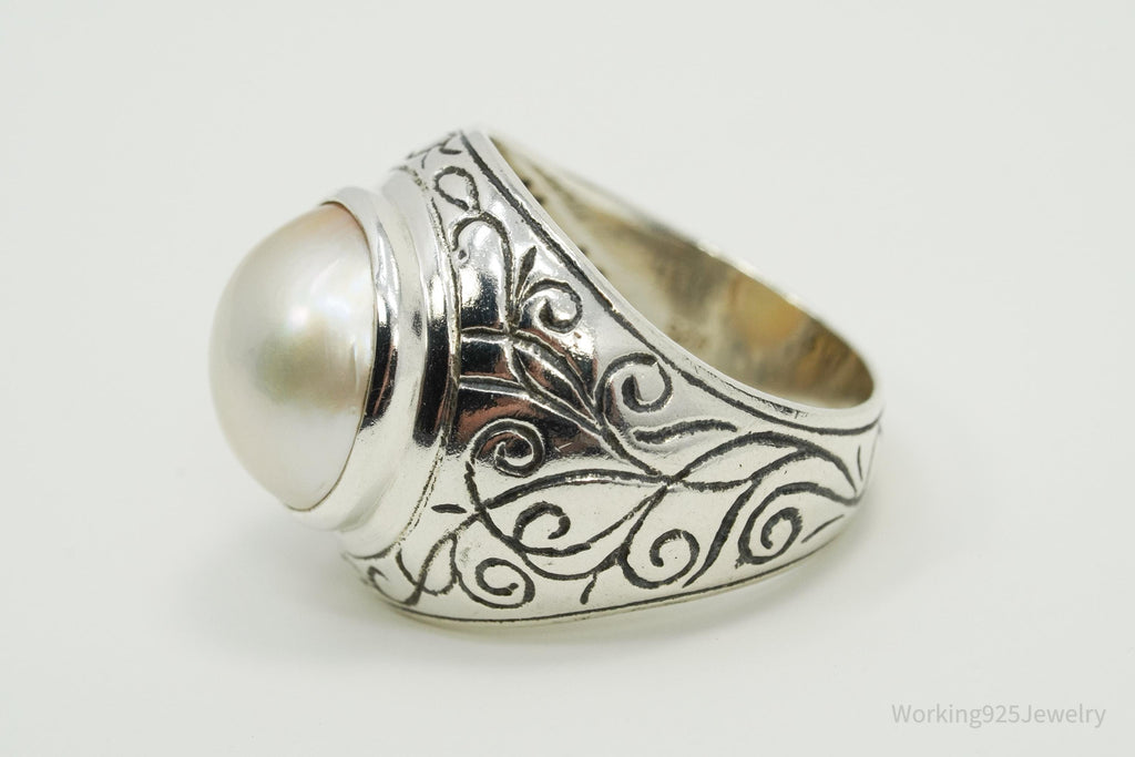 Vintage Pearl Sterling Silver Ring Size 8.25