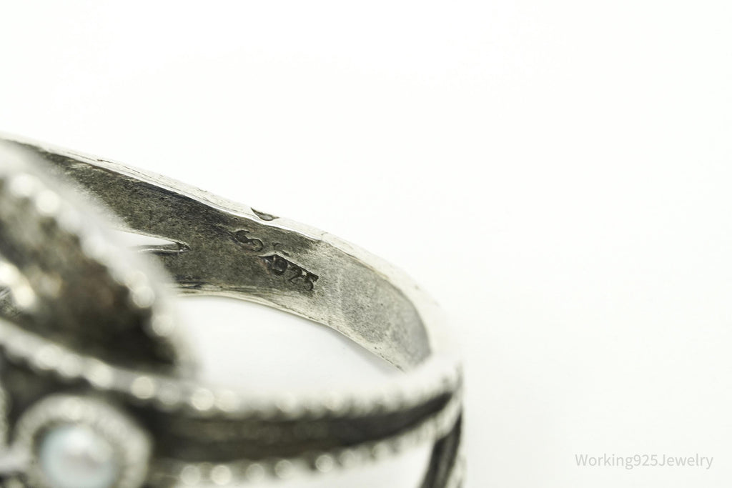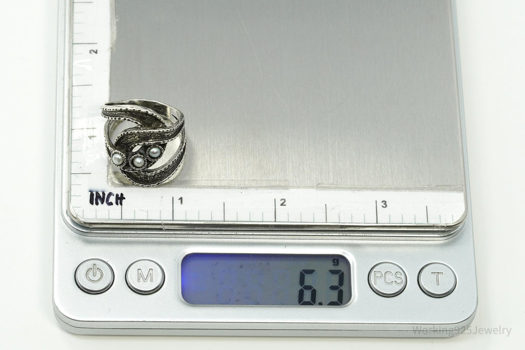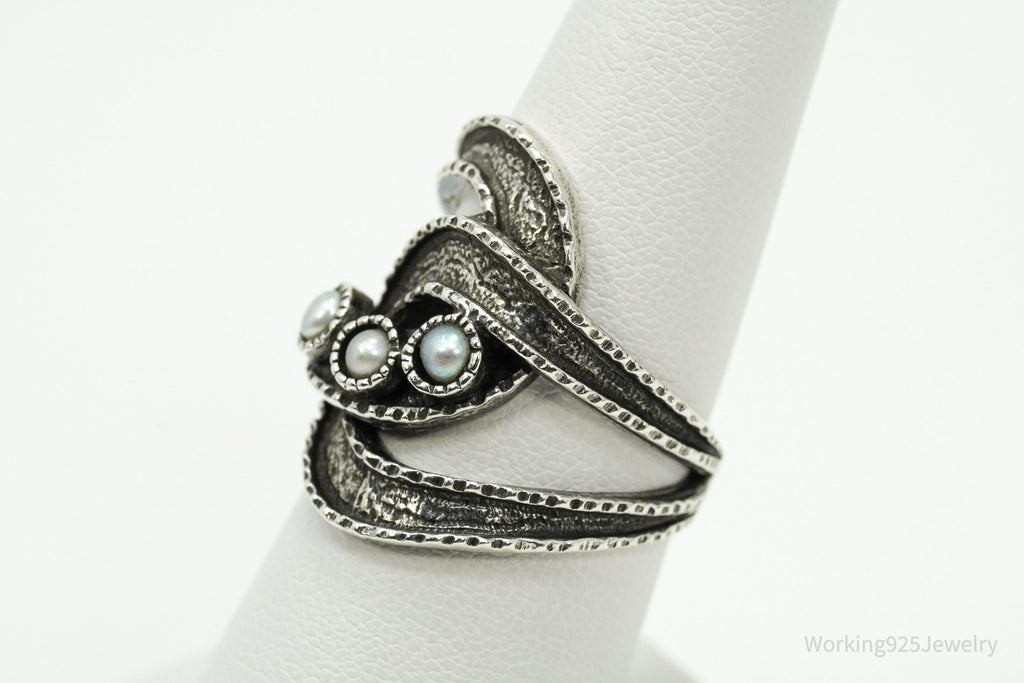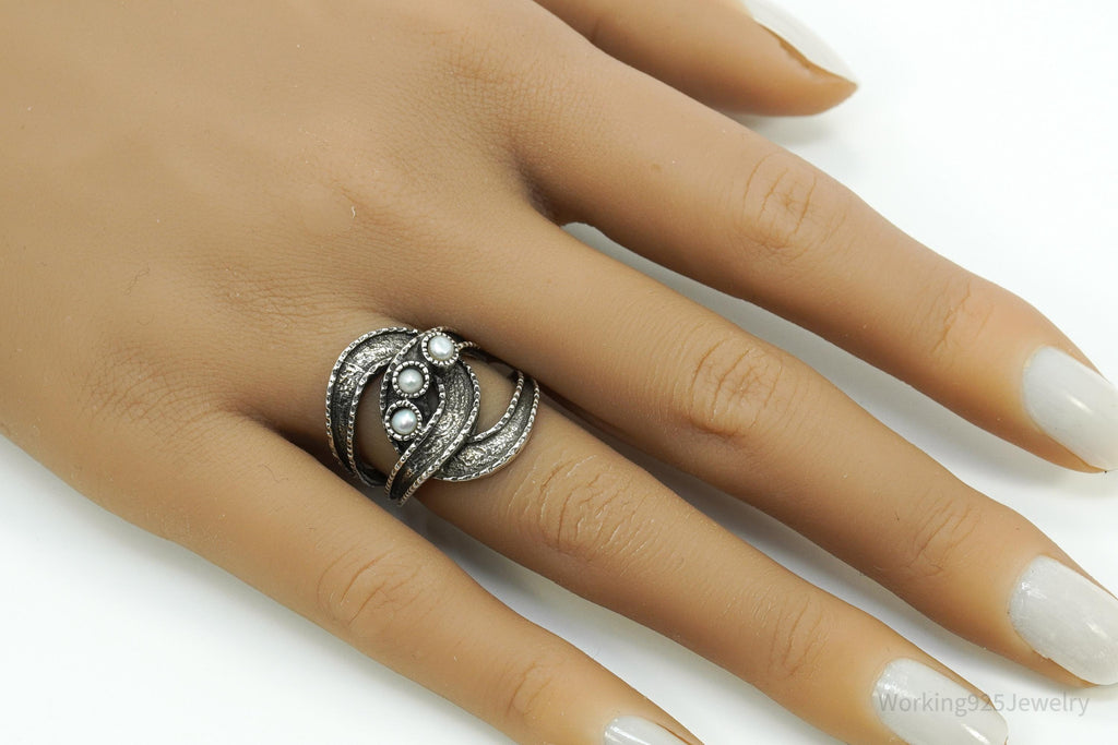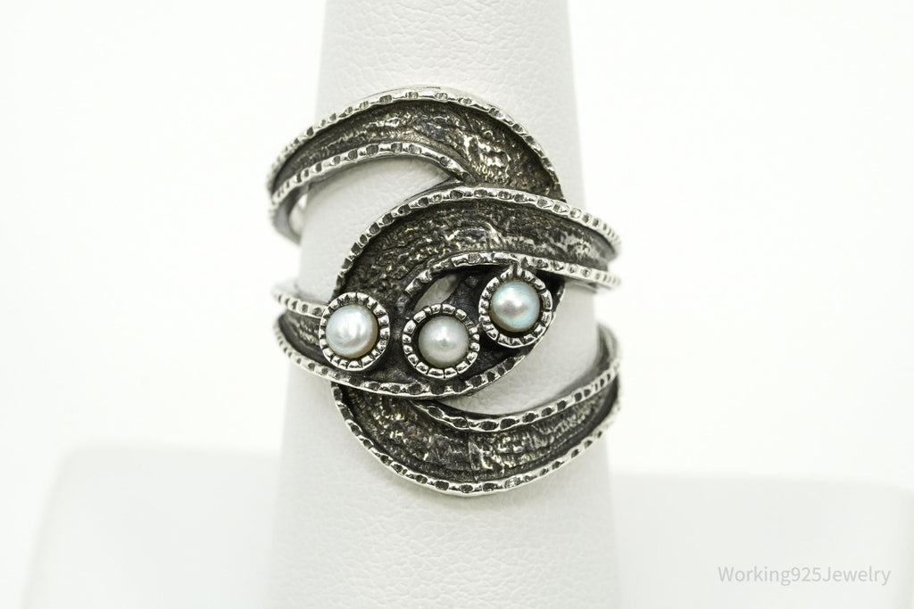 Vintage Pearls Modernist Style Sterling Silver Ring - Size 7.25