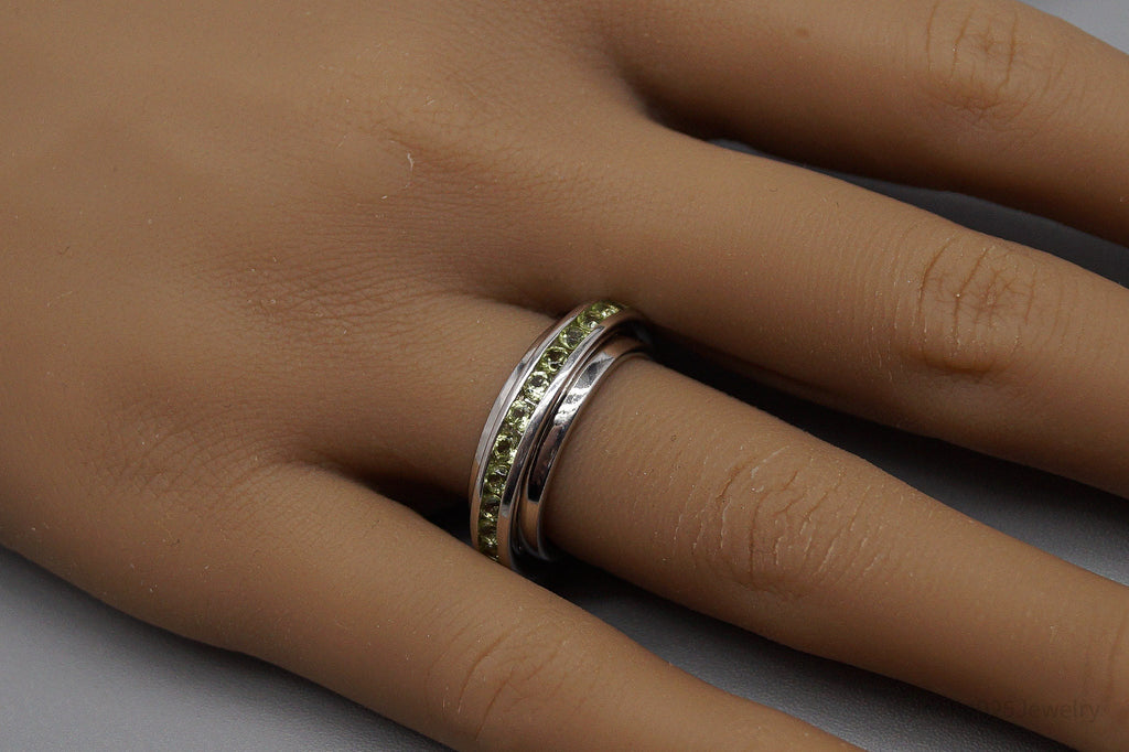 Vintage Peridot Sterling Silver Spinner Band Ring - Size 6.75