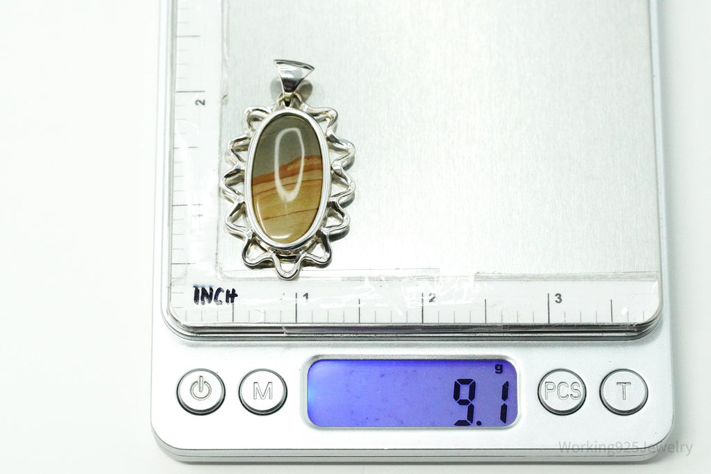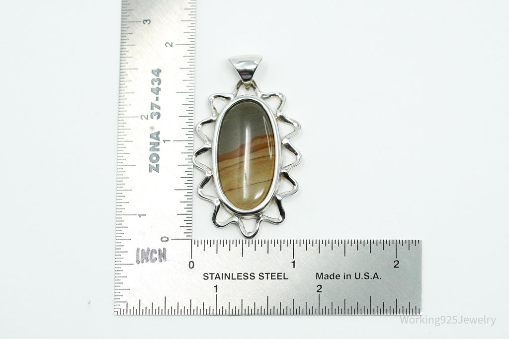 Vintage Picture Jasper Sterling Silver Necklace Pendant