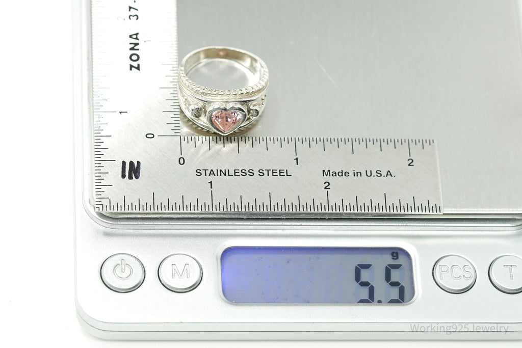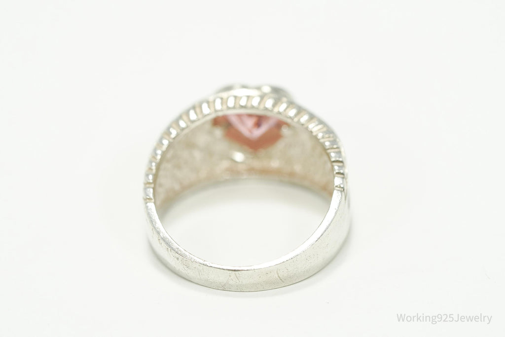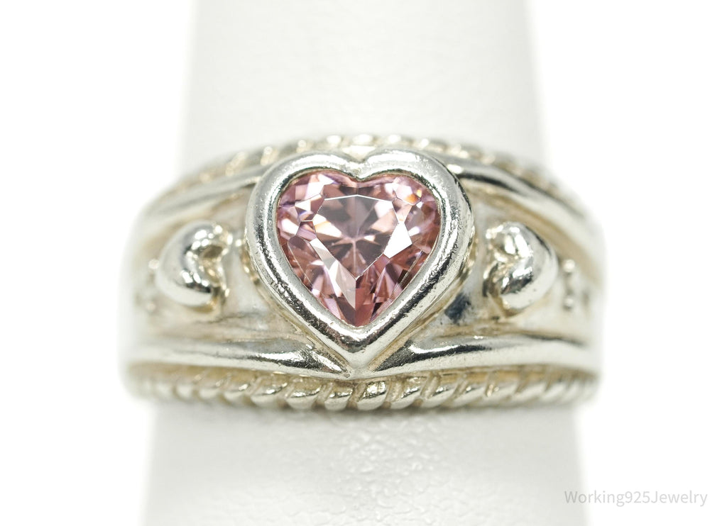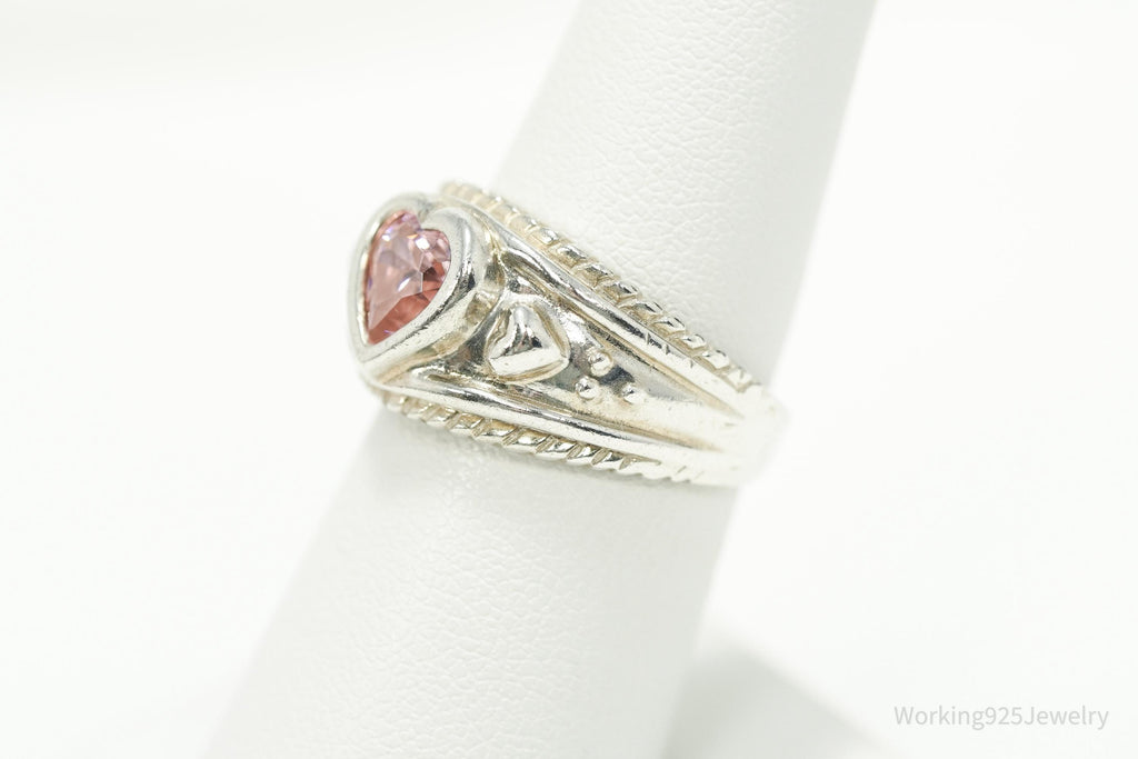 Vintage Pink Cubic Zirconia Heart Sterling Silver Ring - Size 7