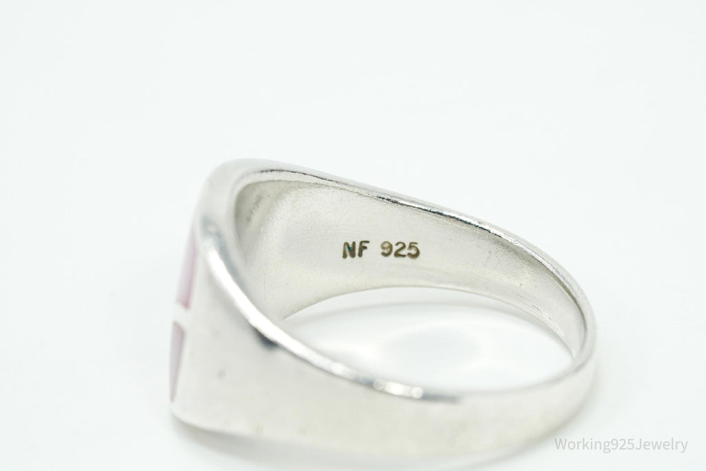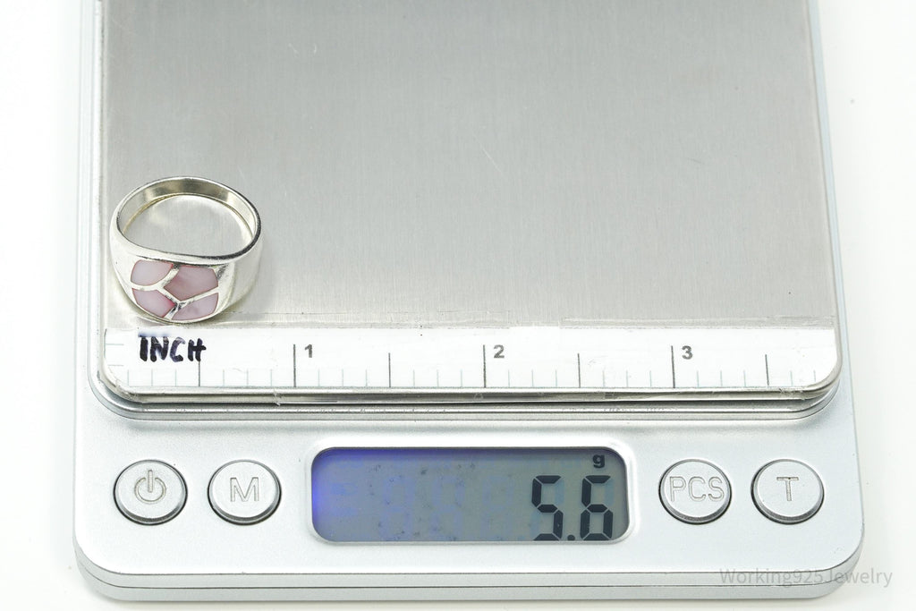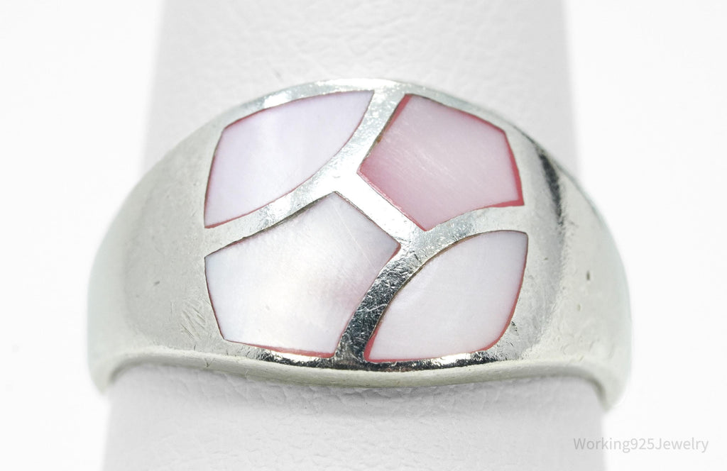 Vintage Pink Mother Of Pearl Inlay Sterling Silver Ring - Size 7.75