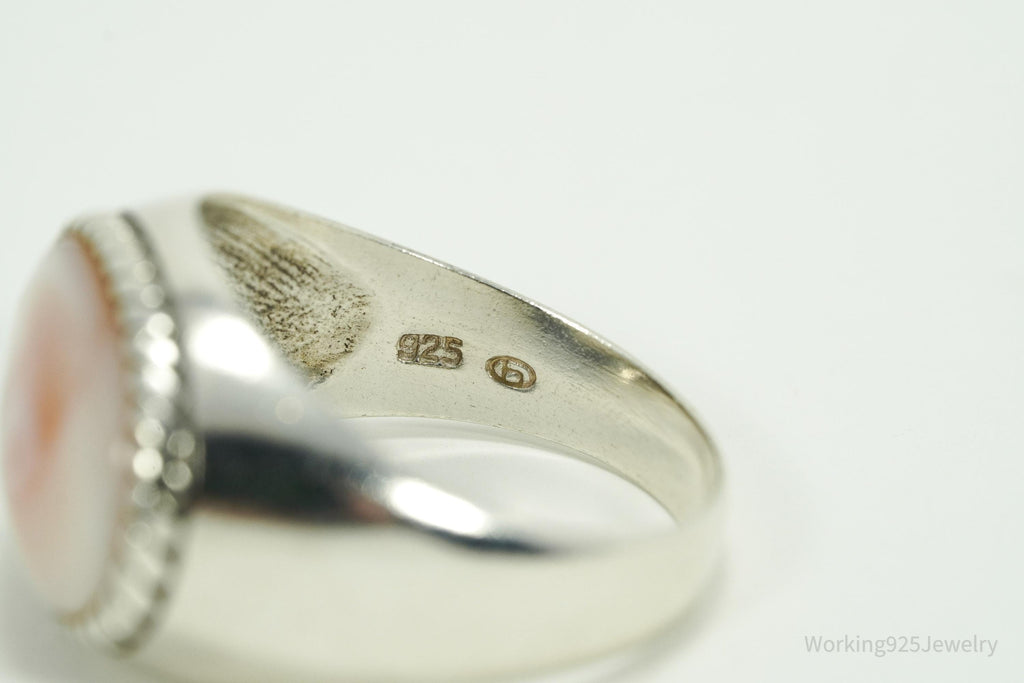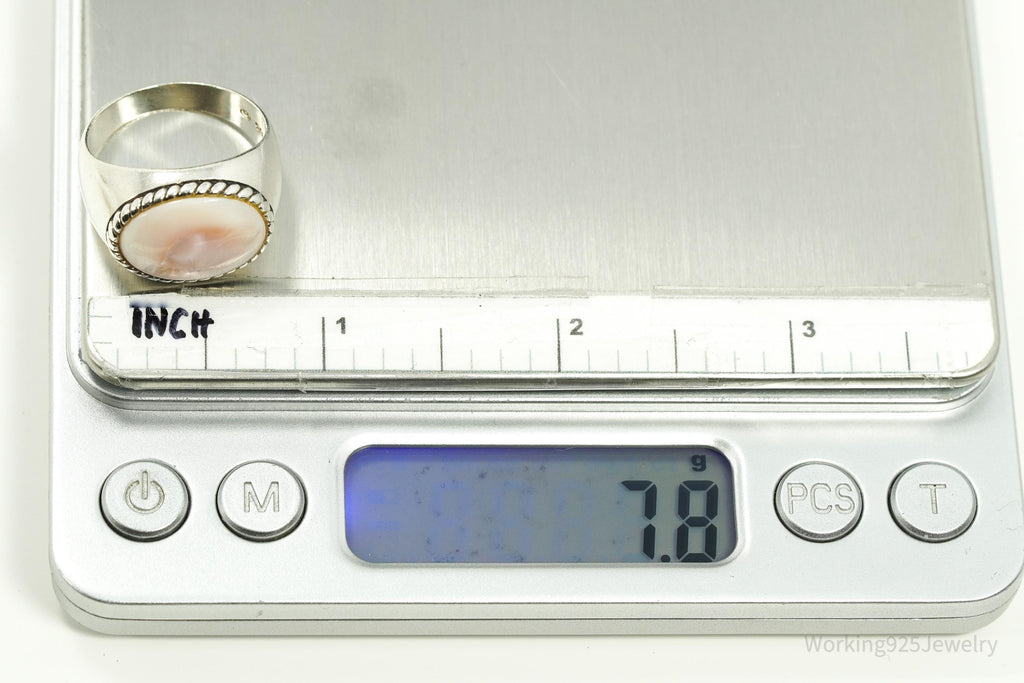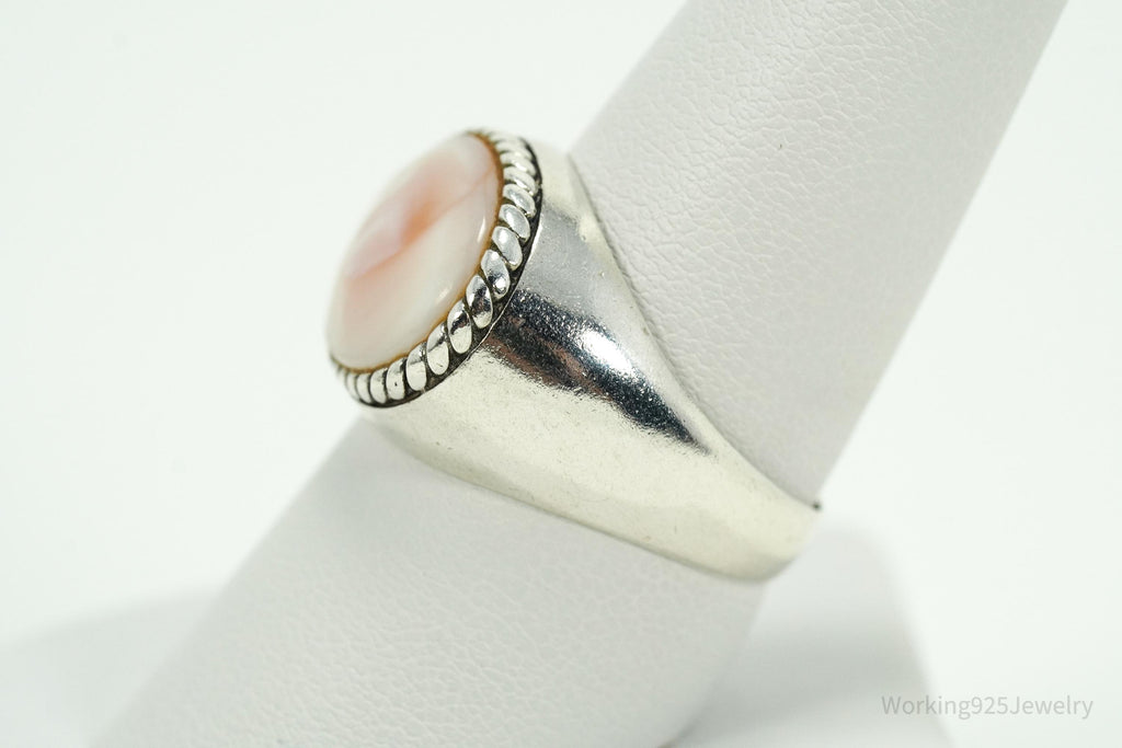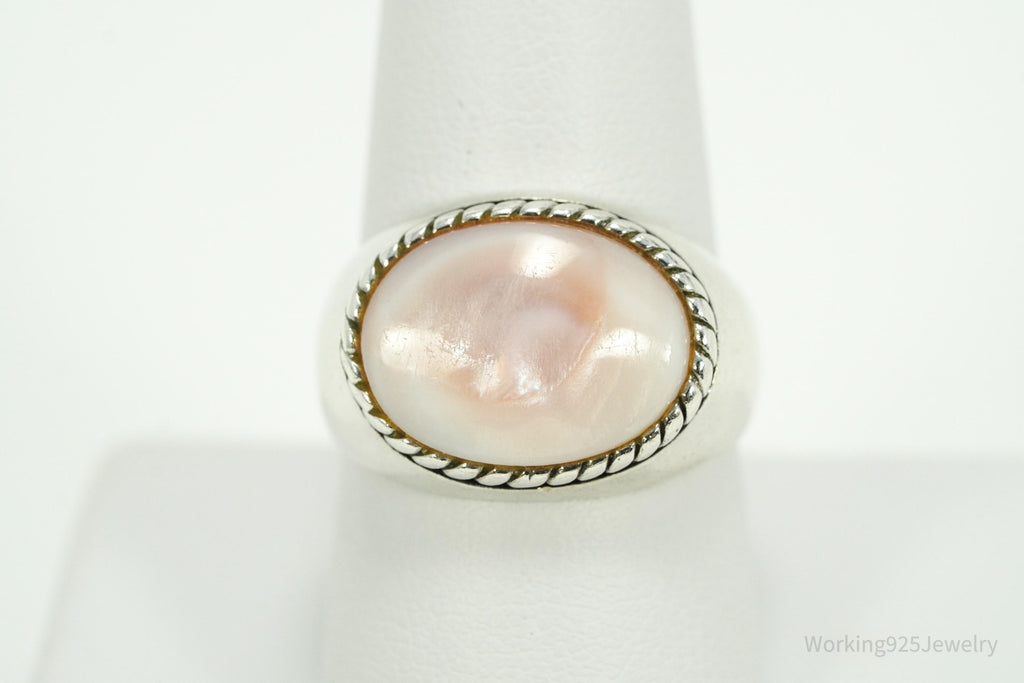 Vintage Pink Mother Of Pearl Sterling Silver Ring - Size 9