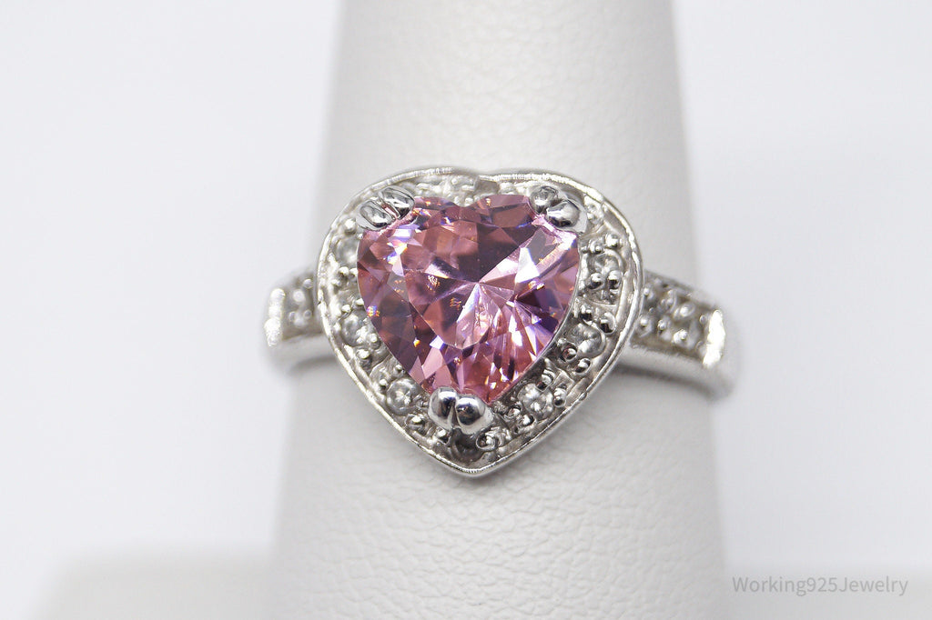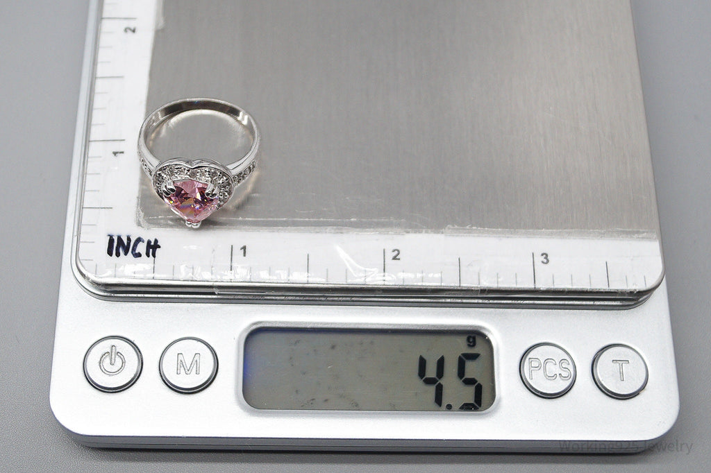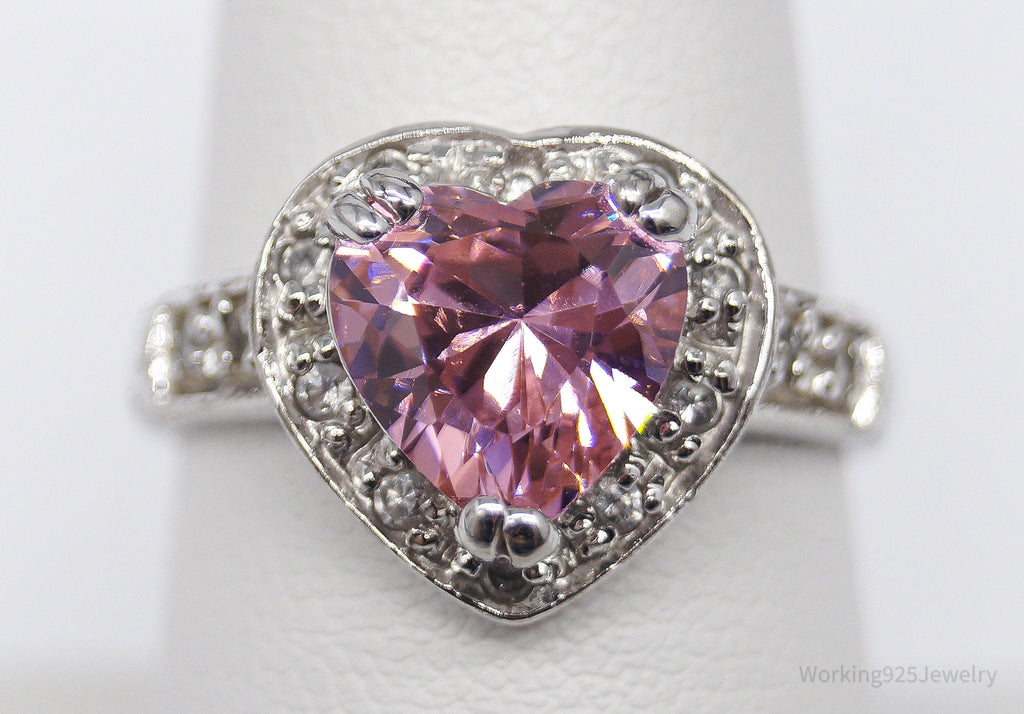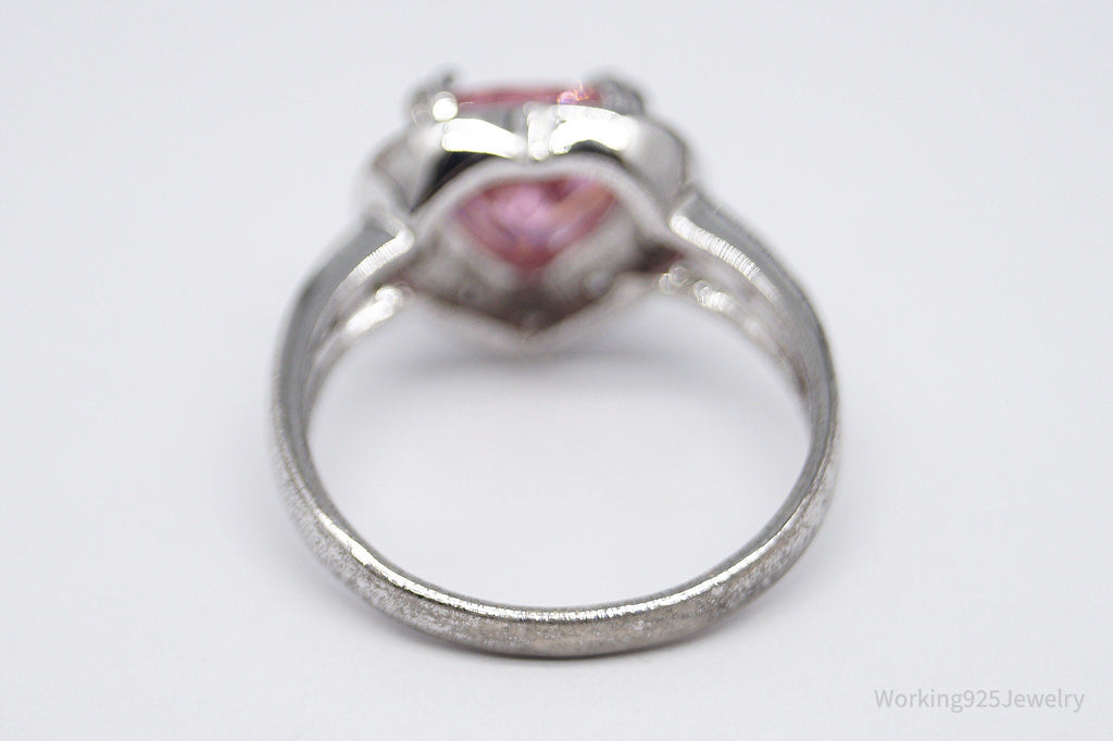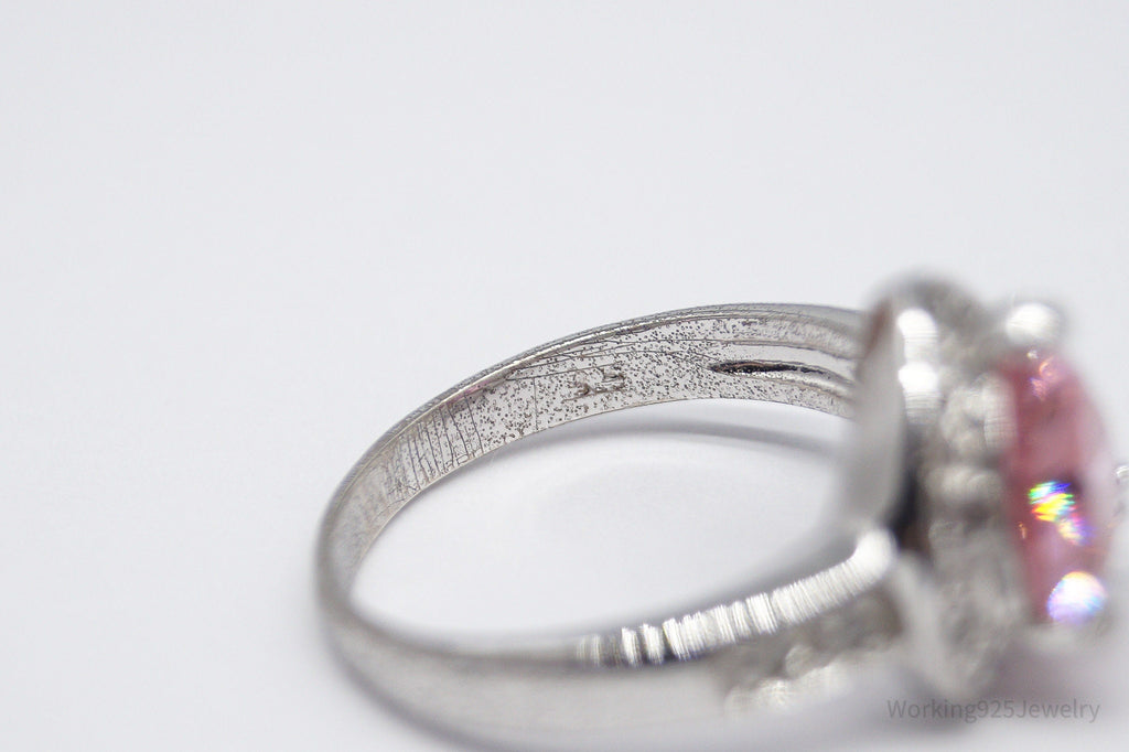 Vintage Pink & White Cubic Zirconia Rhodium Over Sterling Silver Ring - Size 8