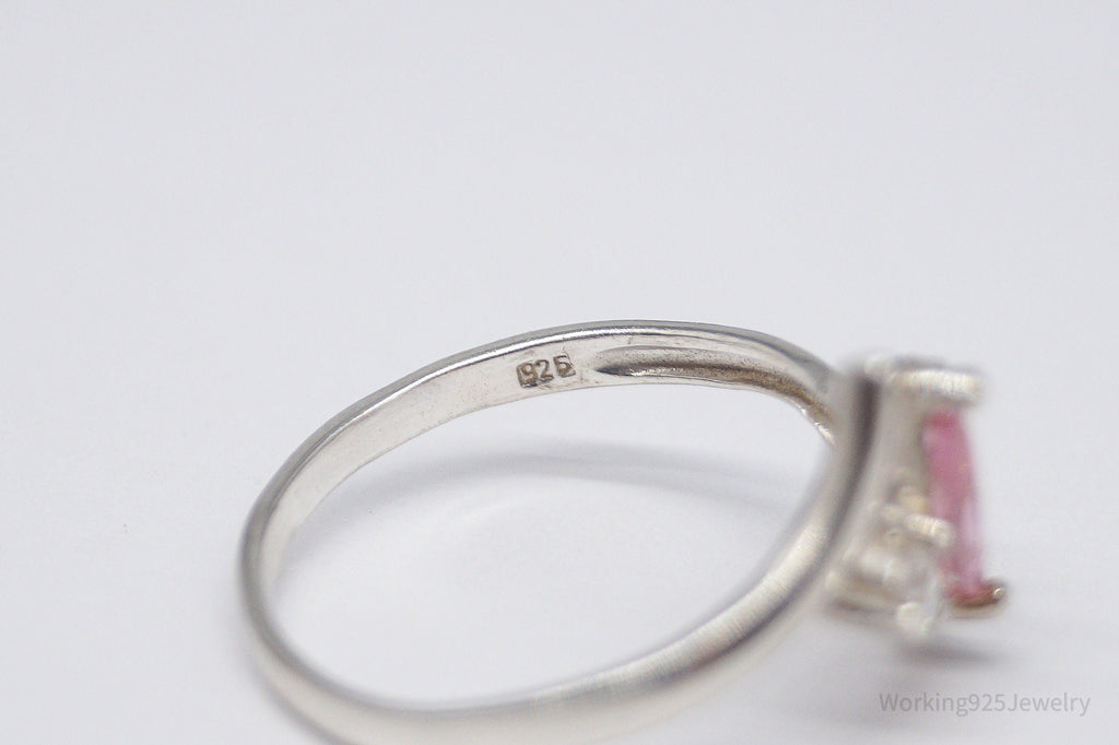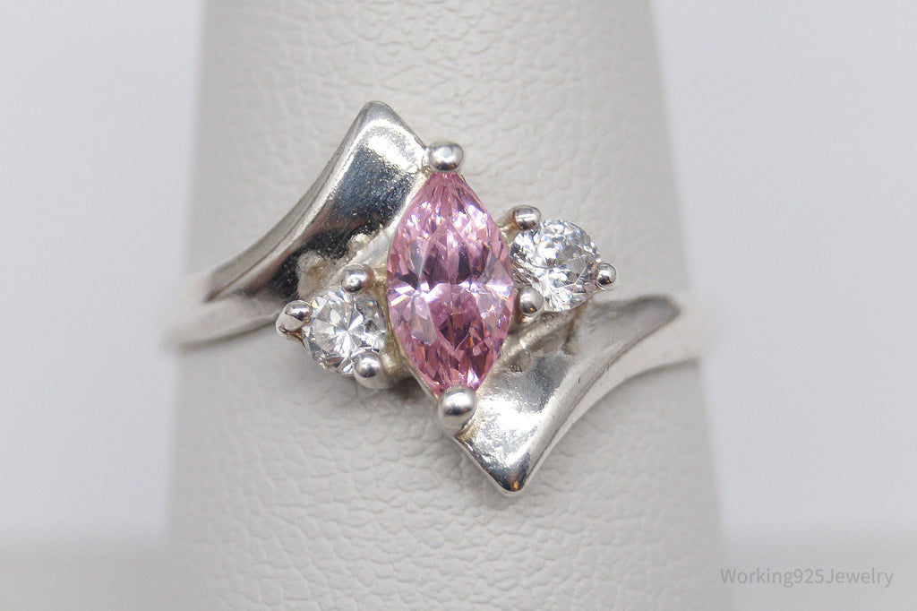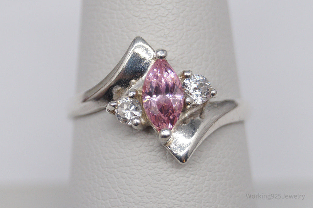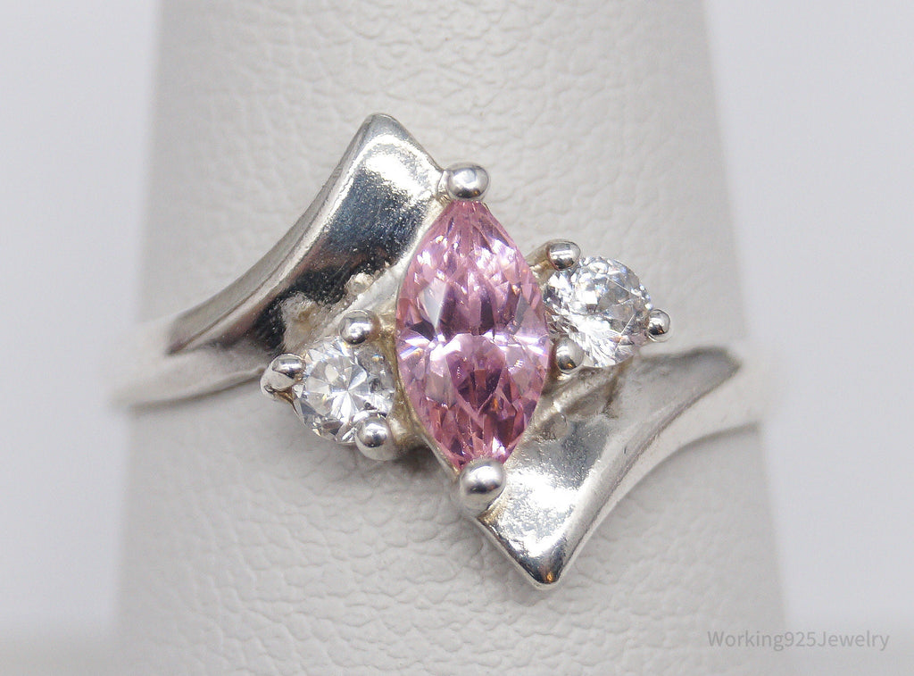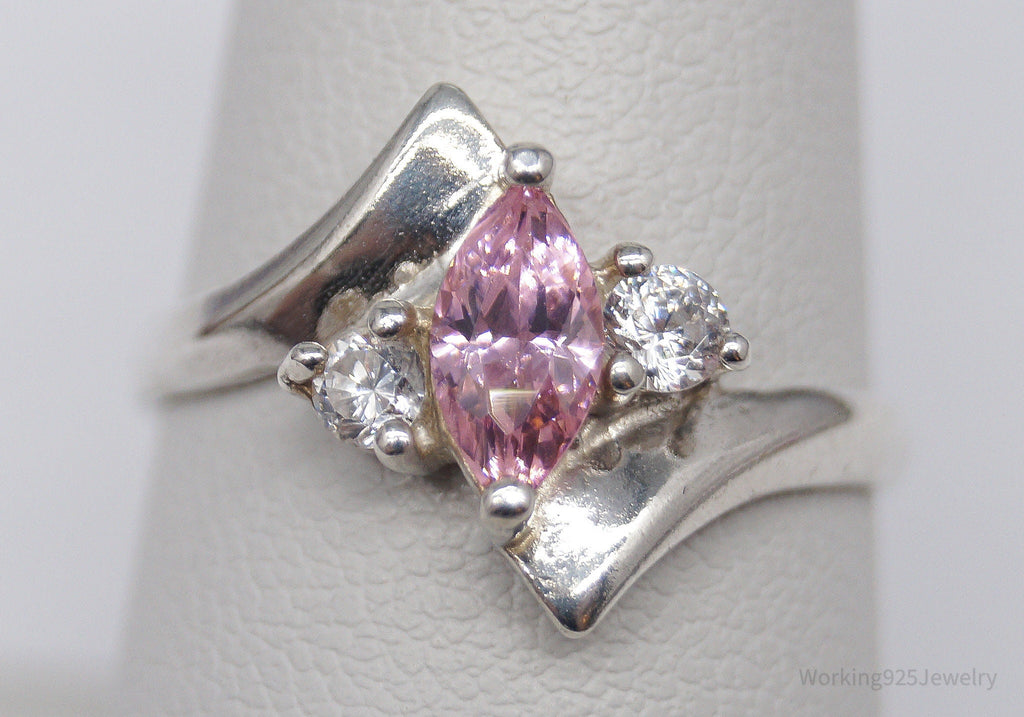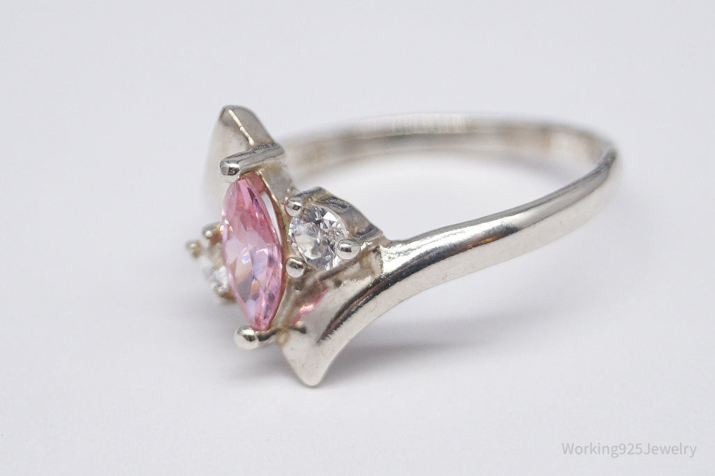 Vintage Pink & White Cubic Zirconia Sterling Silver Ring - Size 8