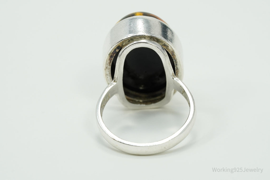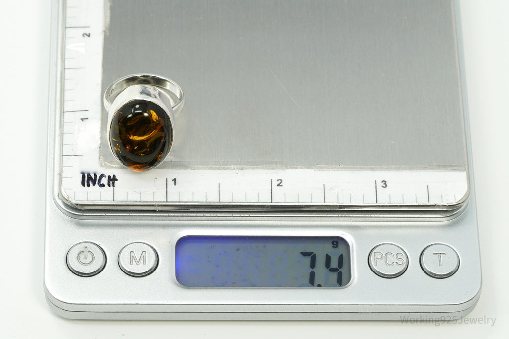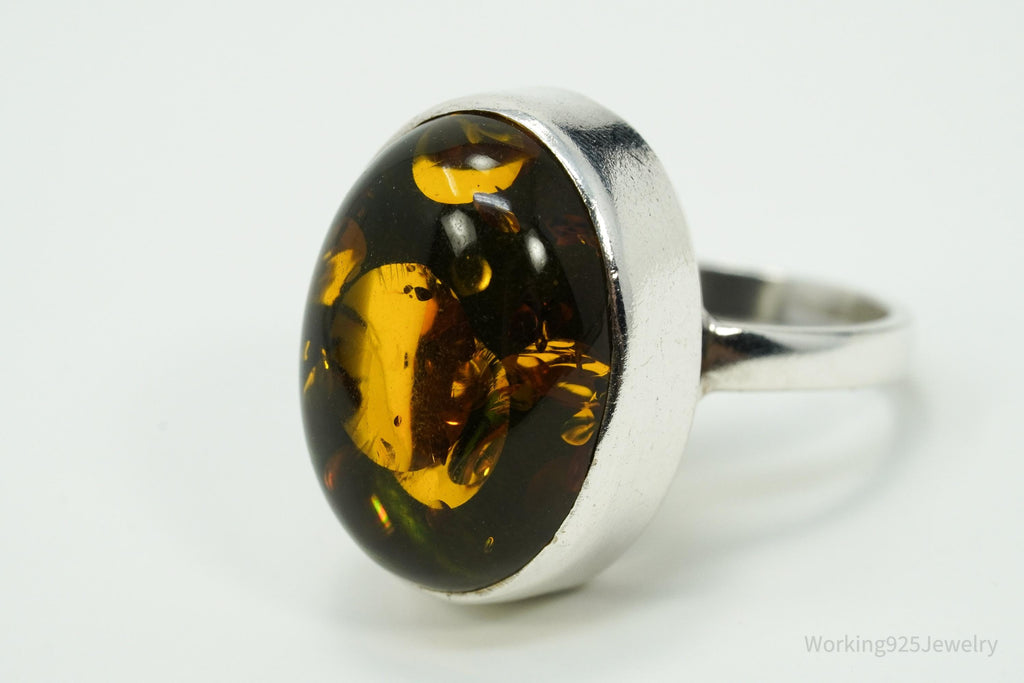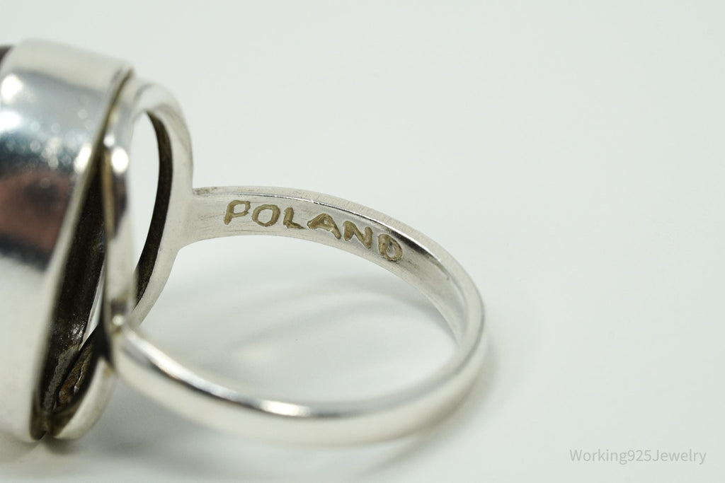 Vintage Polish Large Amber Sterling Silver Ring - Size 7