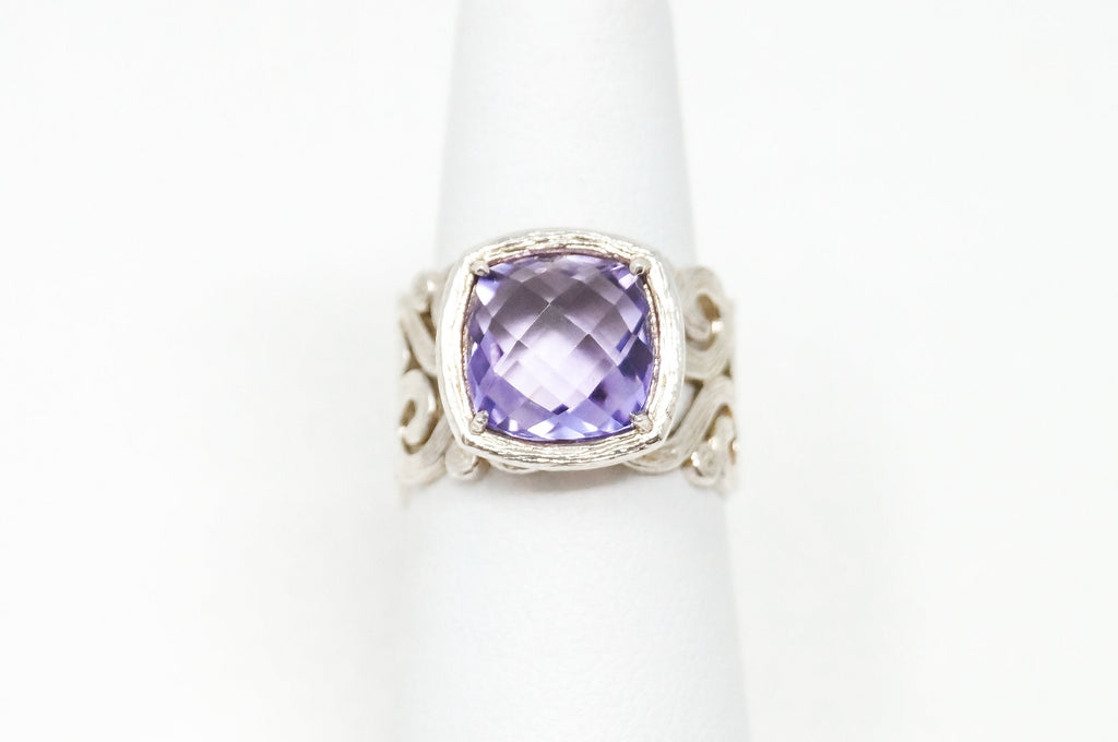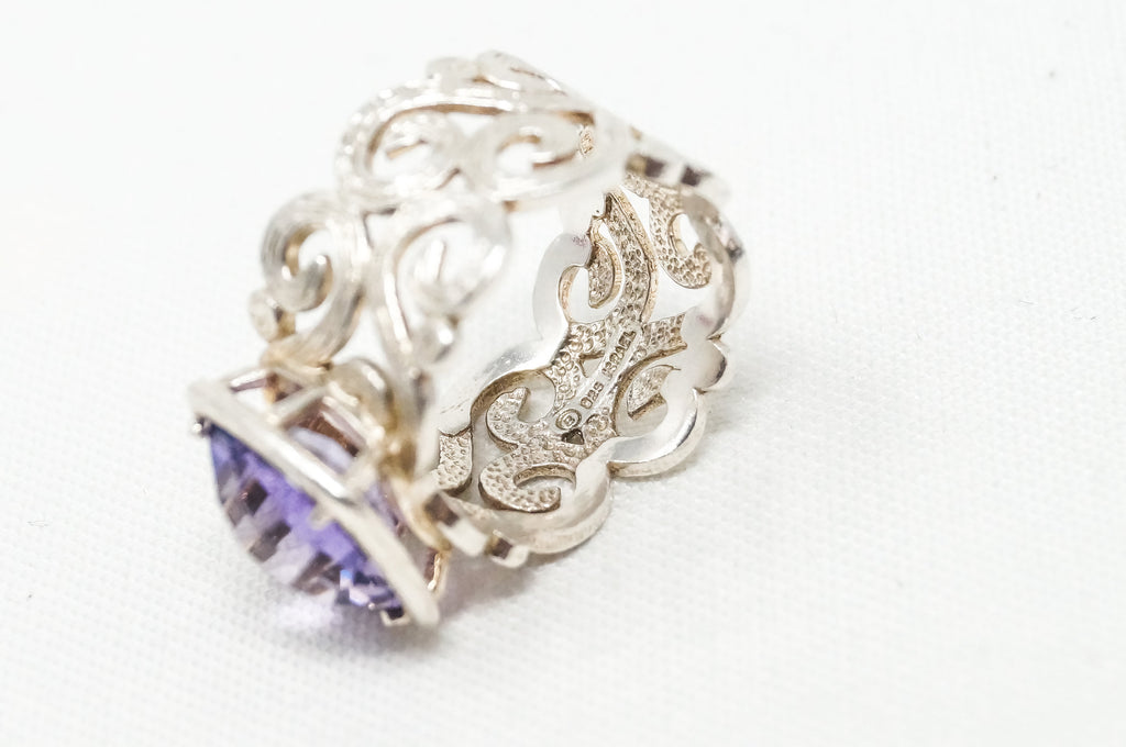 Vintage Purple Amethyst Cut Out Scroll Sterling Silver Ring - Sz 6 - 784661124