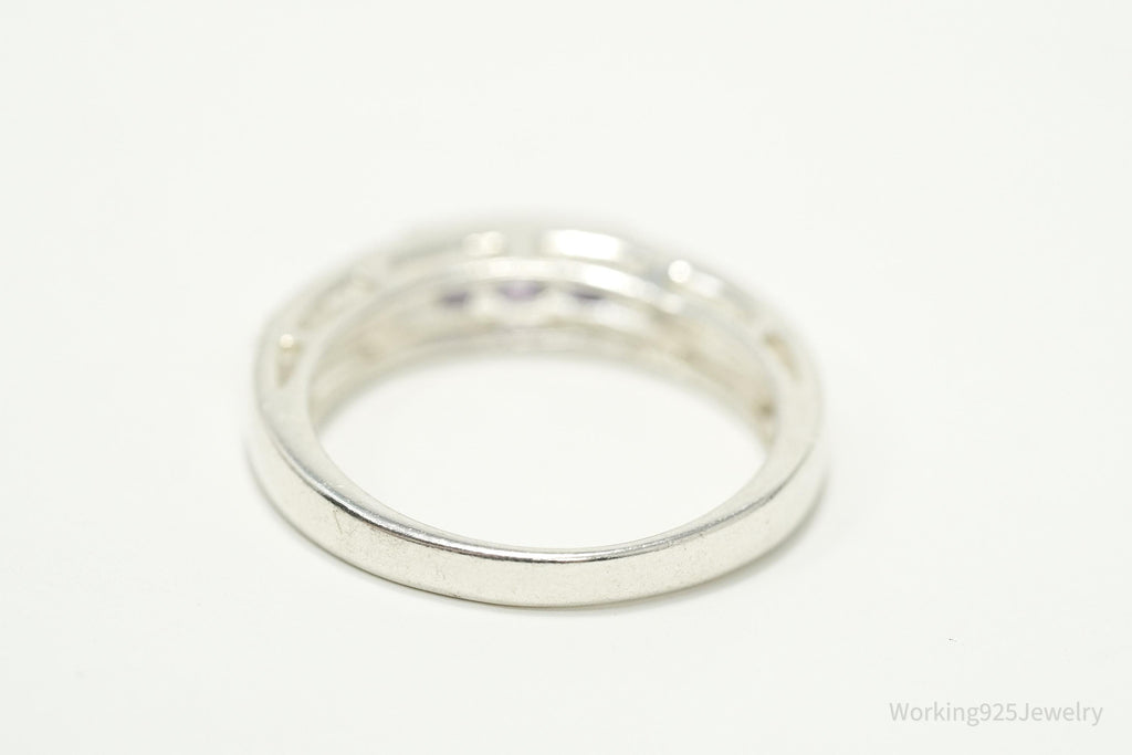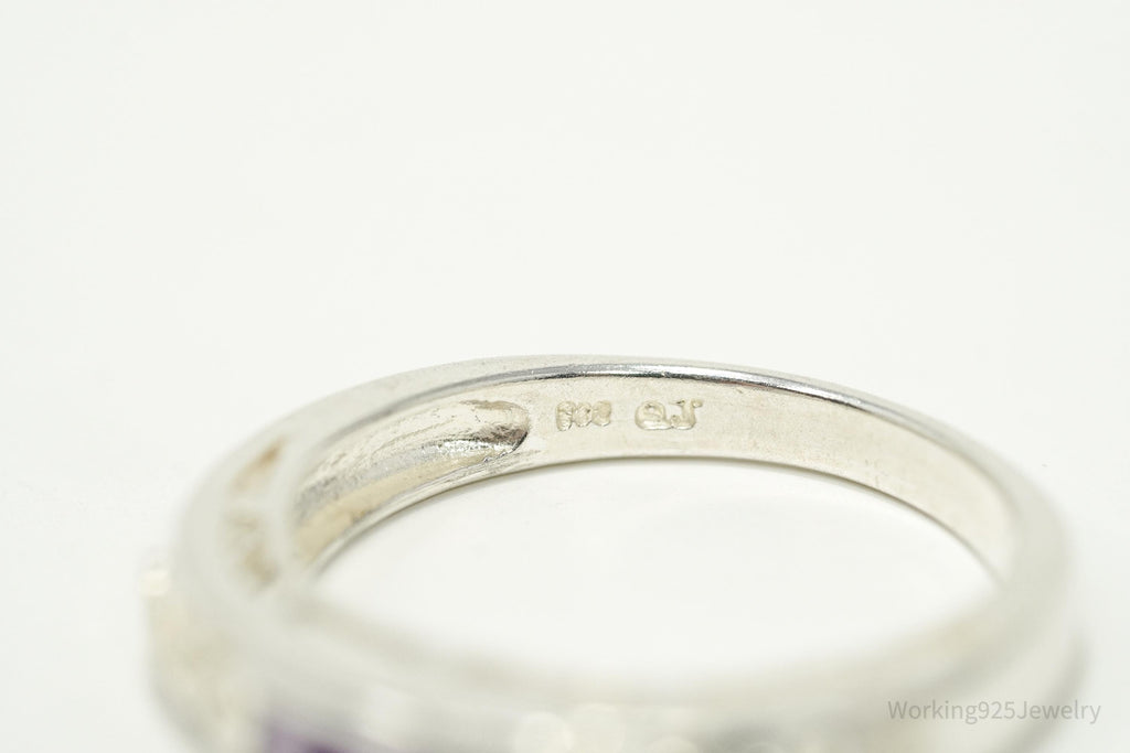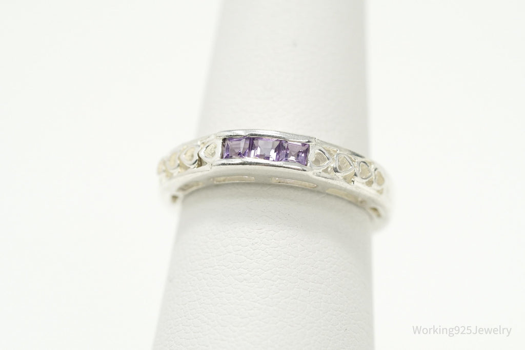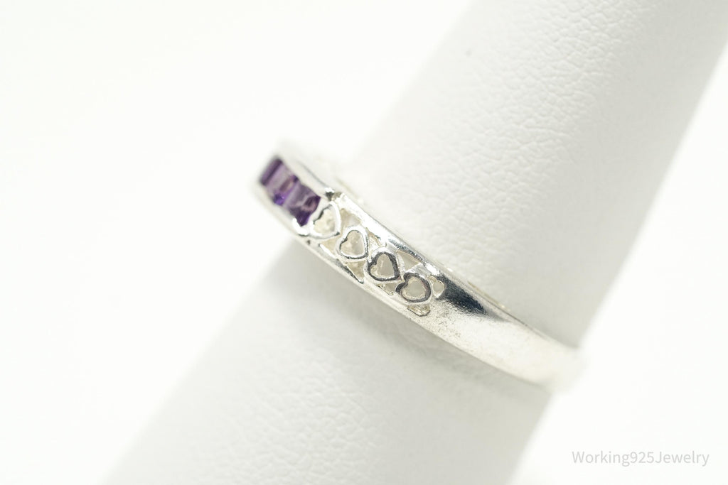 Vintage Purple Amethyst Hearts Pattern Sterling Silver Ring - Size 7