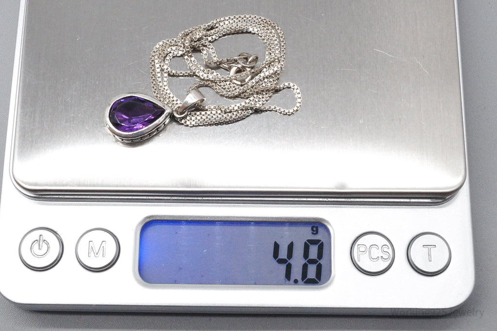 Vintage Purple Amethyst Sterling Silver Necklace - 20"