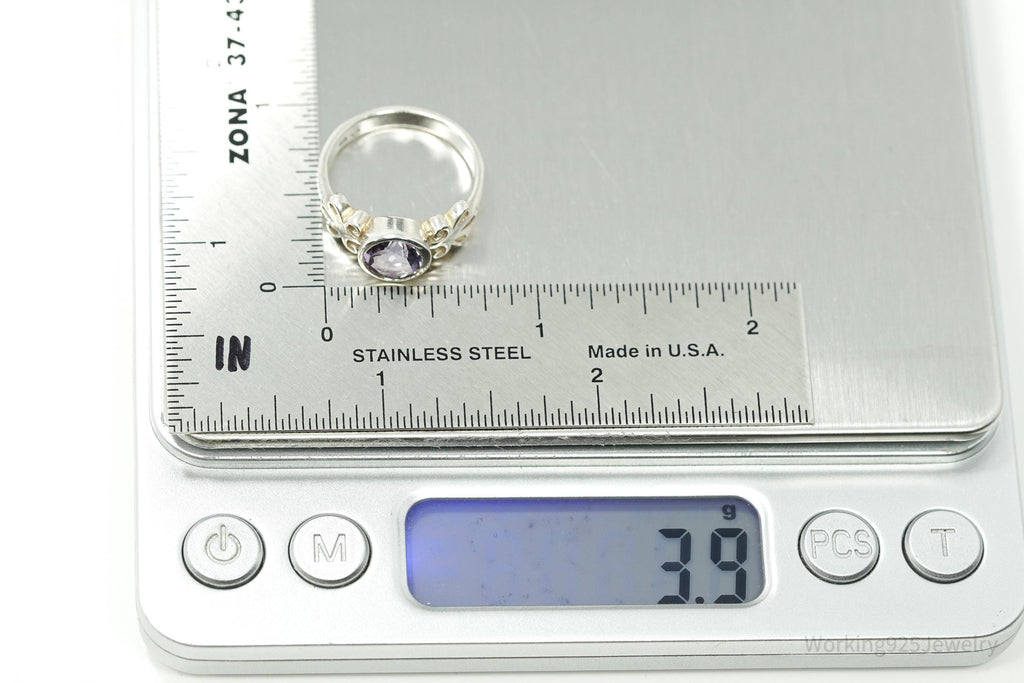 Vintage Purple Amethyst Sterling Silver Ring - Size 7.25
