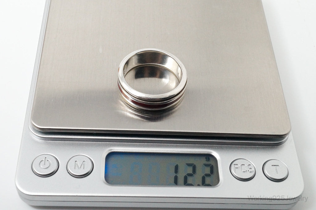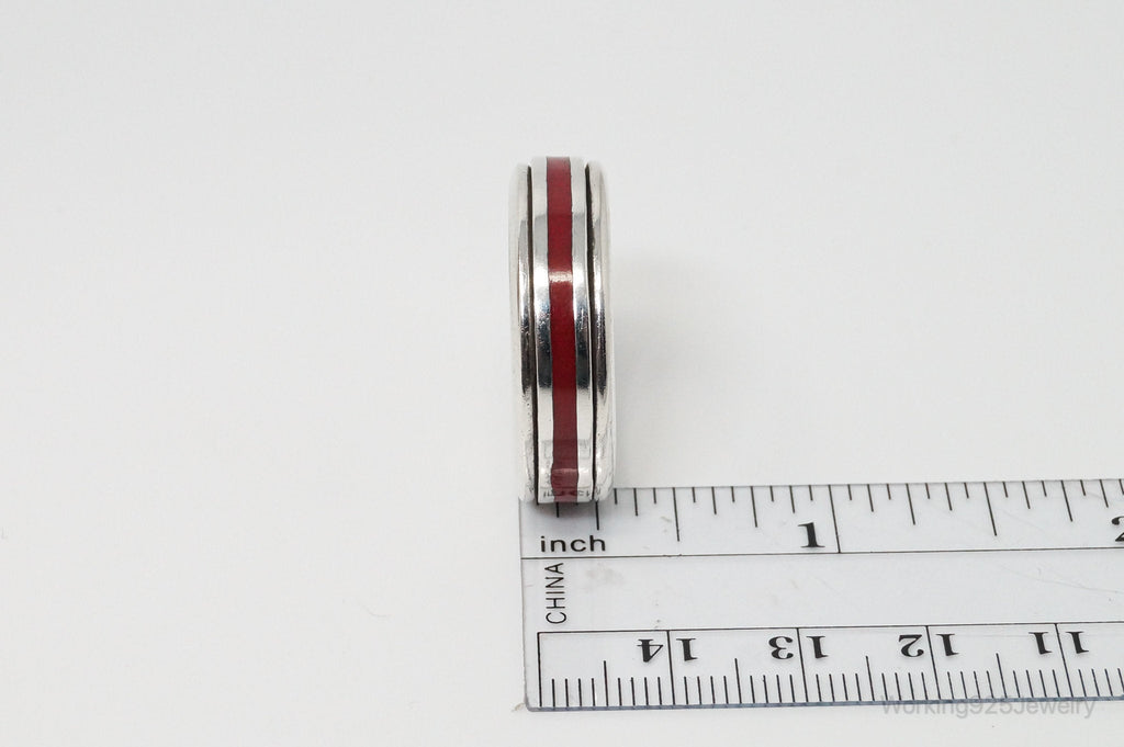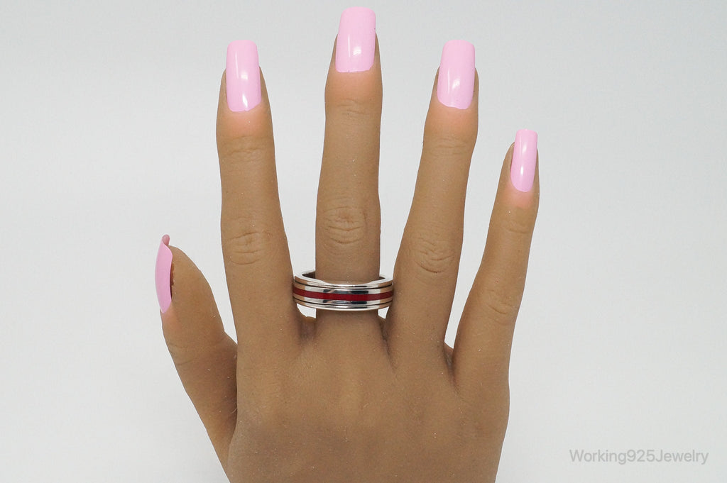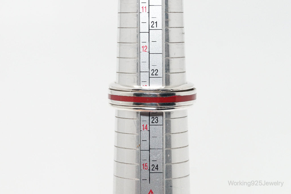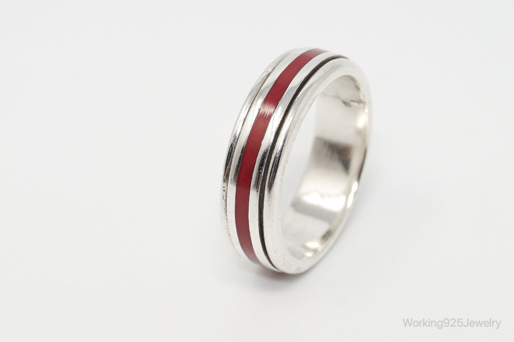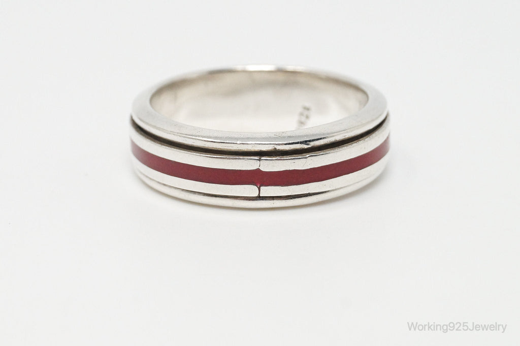 Vintage Red Enamel Modern Sterling Silver Band Spinner Ring - Sz 13.5