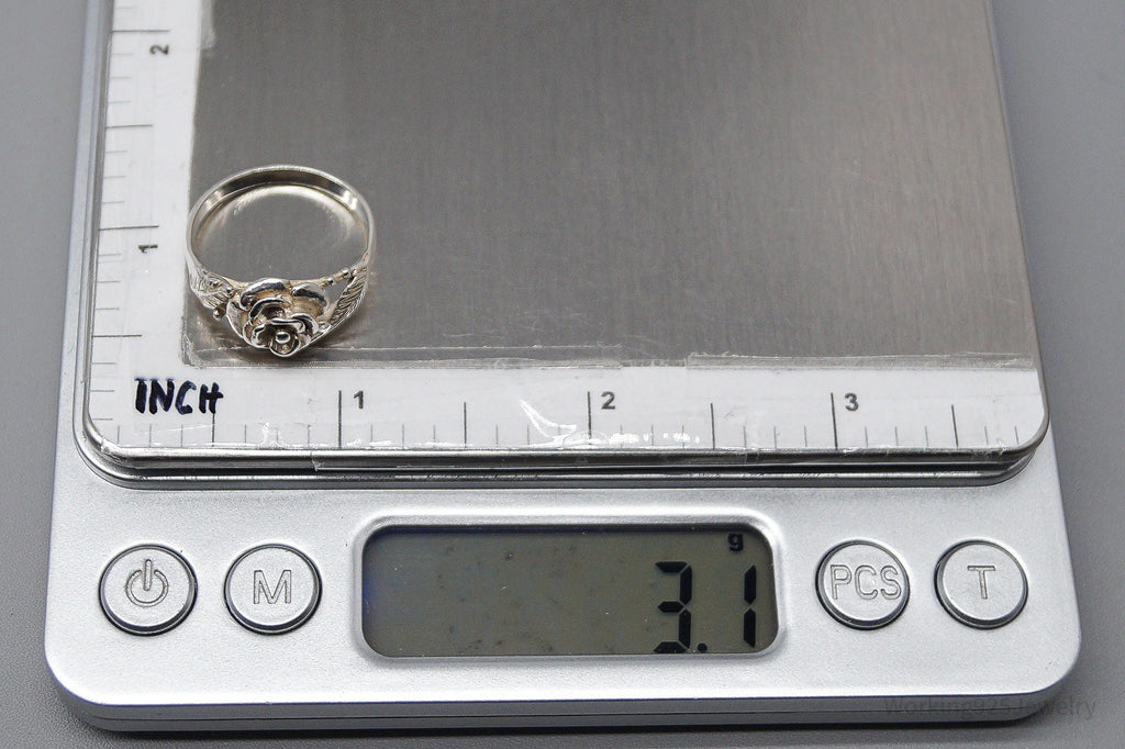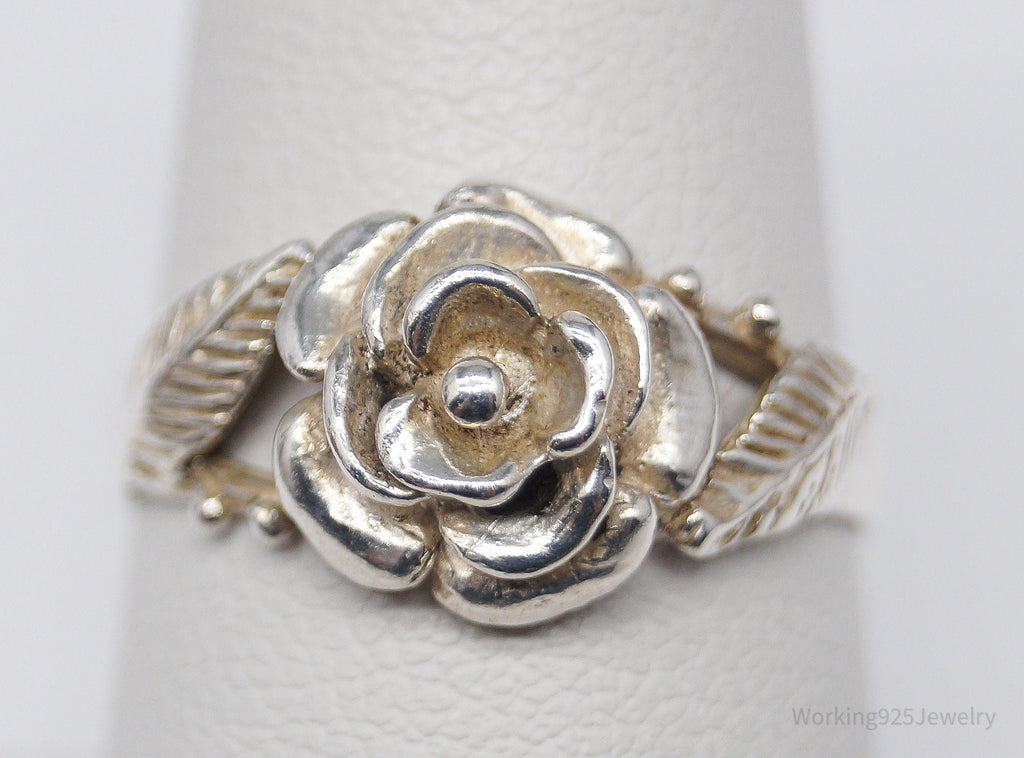 Vintage Rose Flower Sterling Silver Ring - Size 7.75