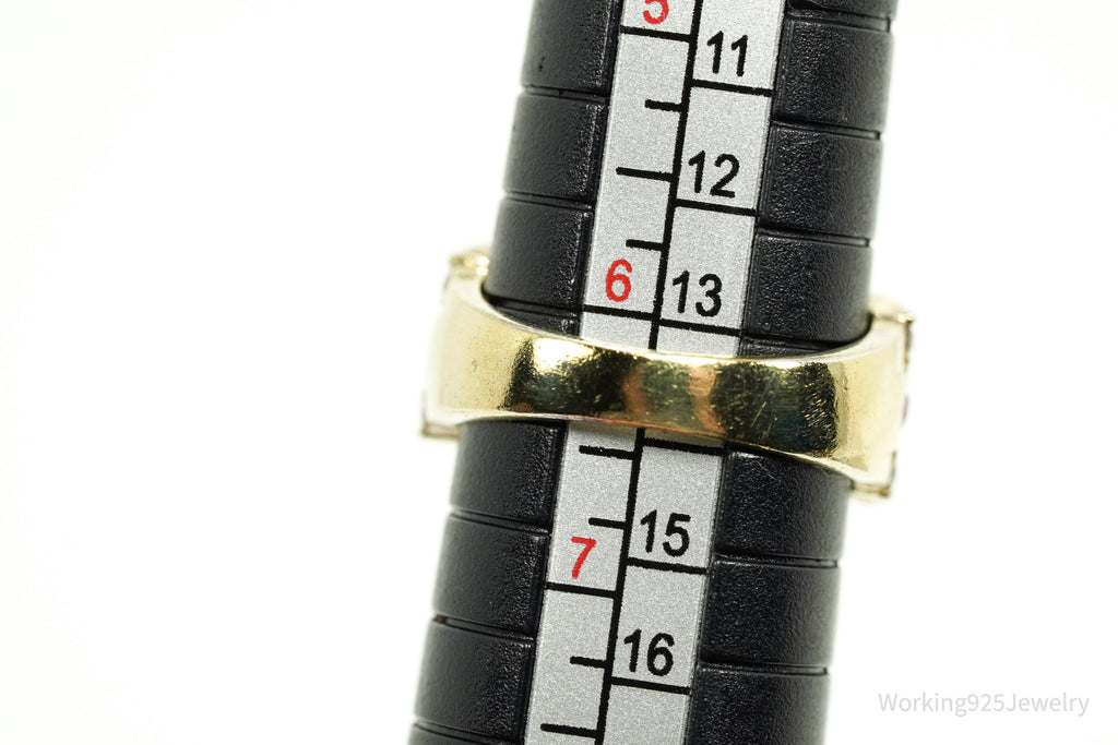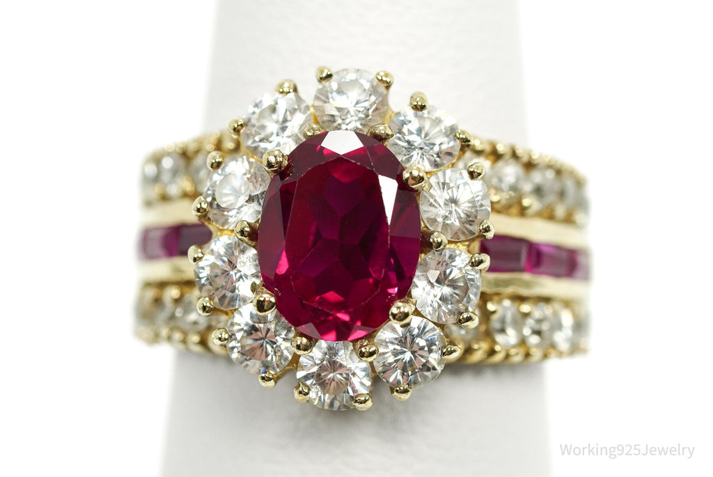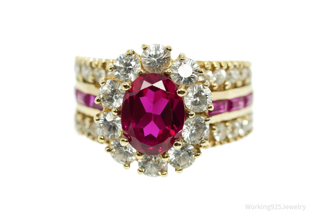 Vintage Ruby & Cubic Zirconia Gold Vermeil Sterling Silver Ring Size 6.25
