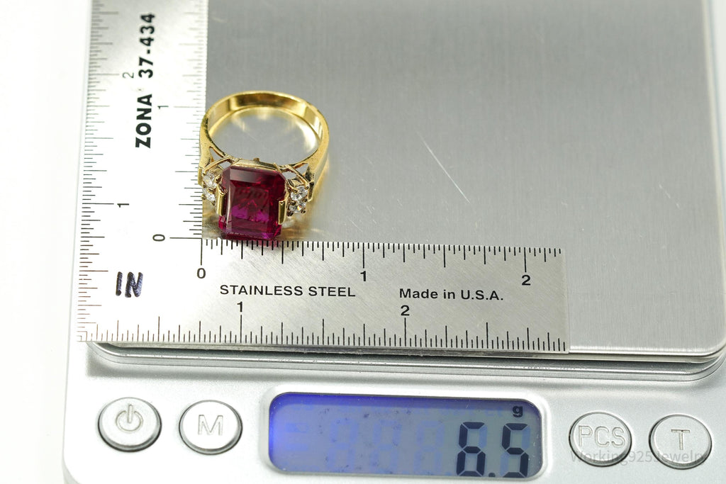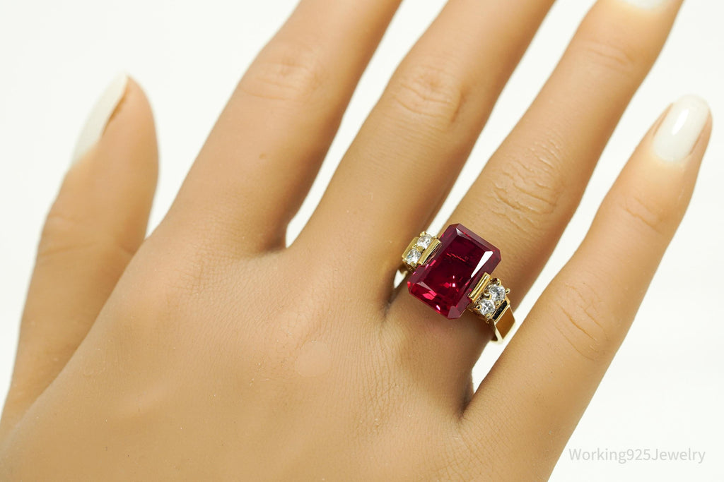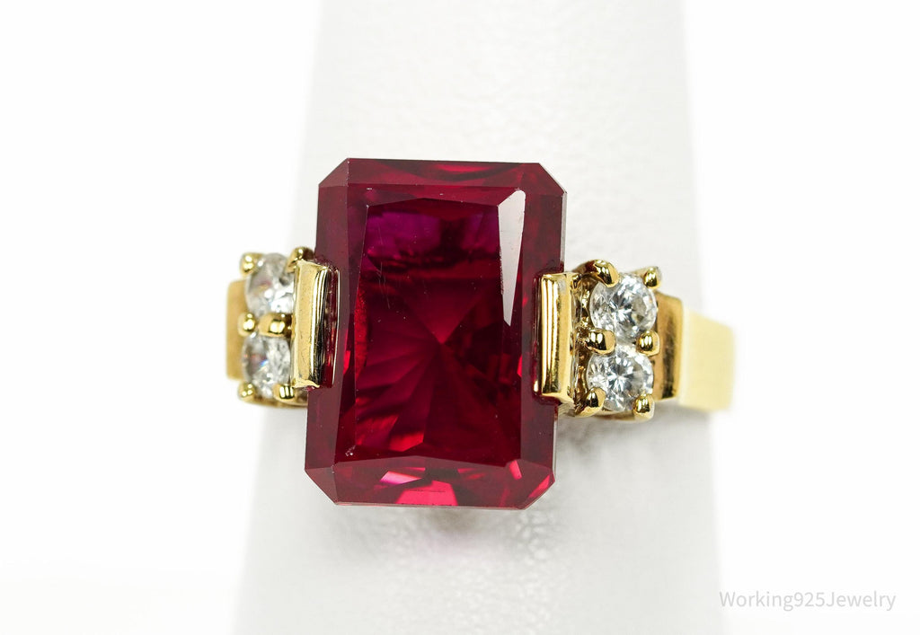 Vintage Ruby & Cubic Zirconia Gold Vermeil Sterling Silver Ring Size 8