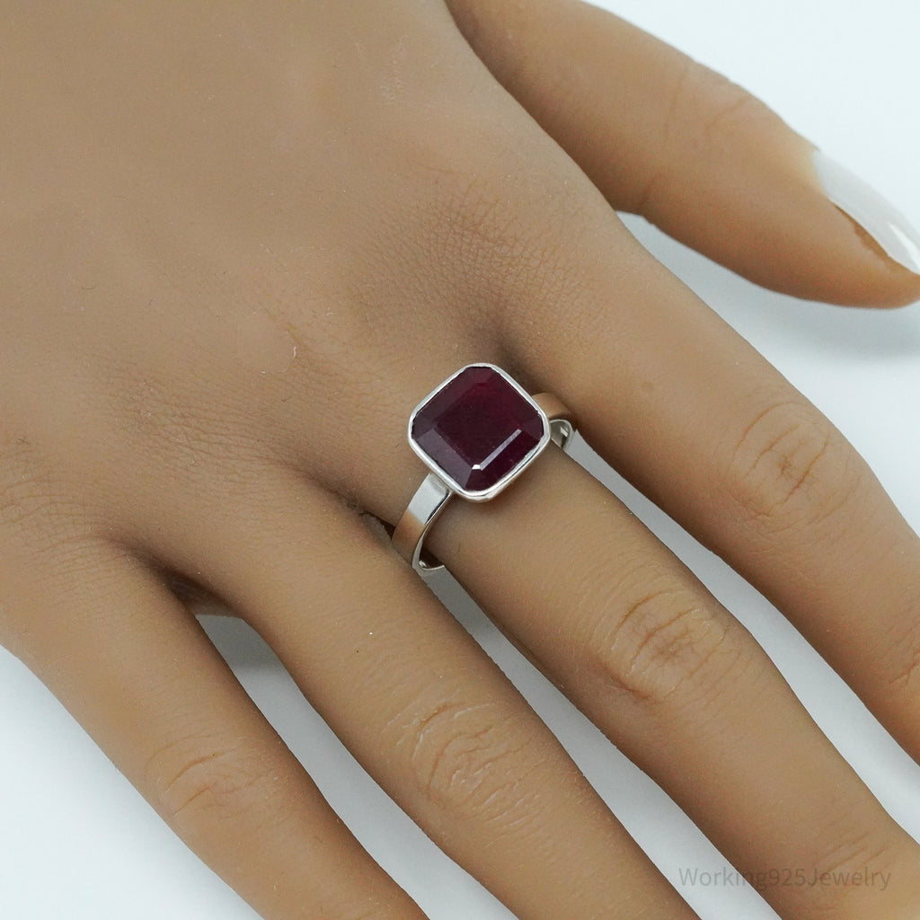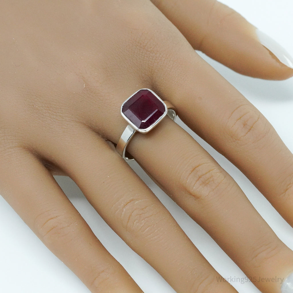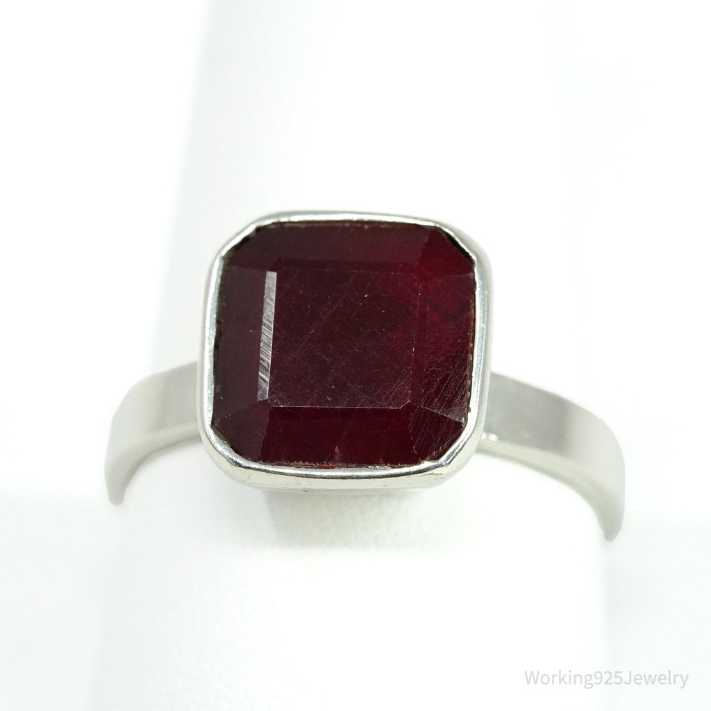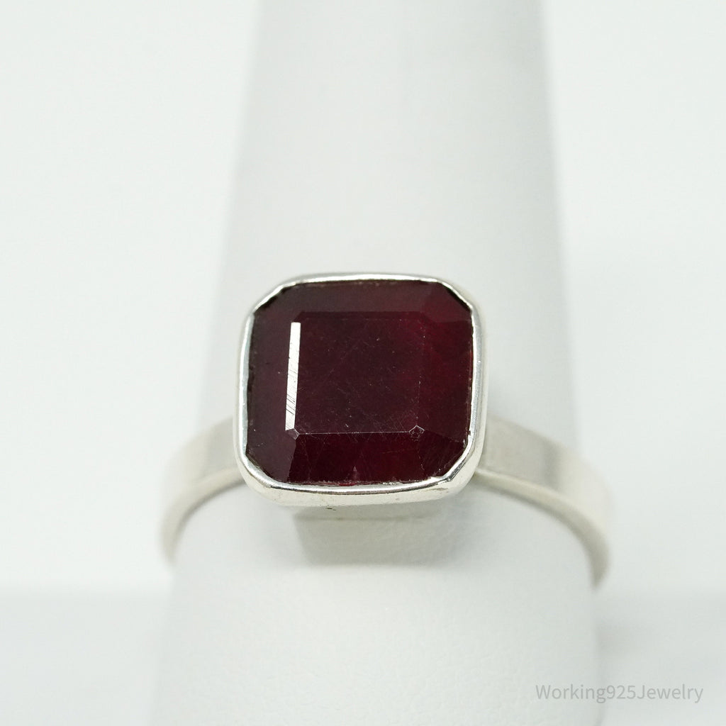 Vintage Ruby Sterling Silver Ring - Size 10.75