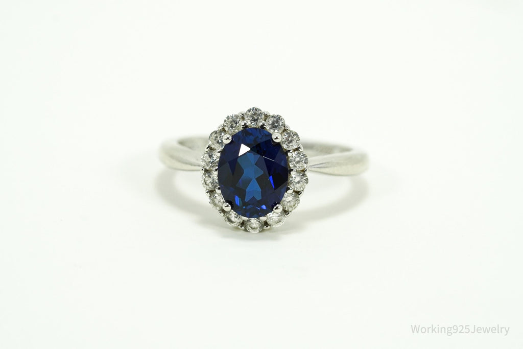 Vintage SAI Blue & White Sapphire Sterling Silver Ring - Size 8.25