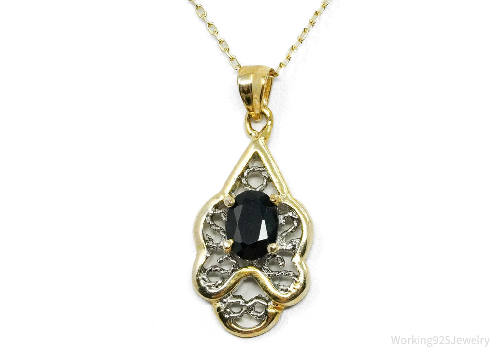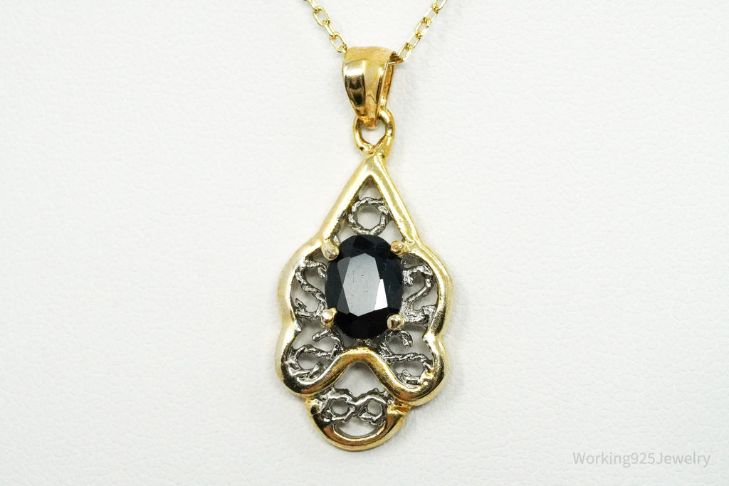 Vintage Sapphire Gold Vermeil Sterling Silver Necklace 18"