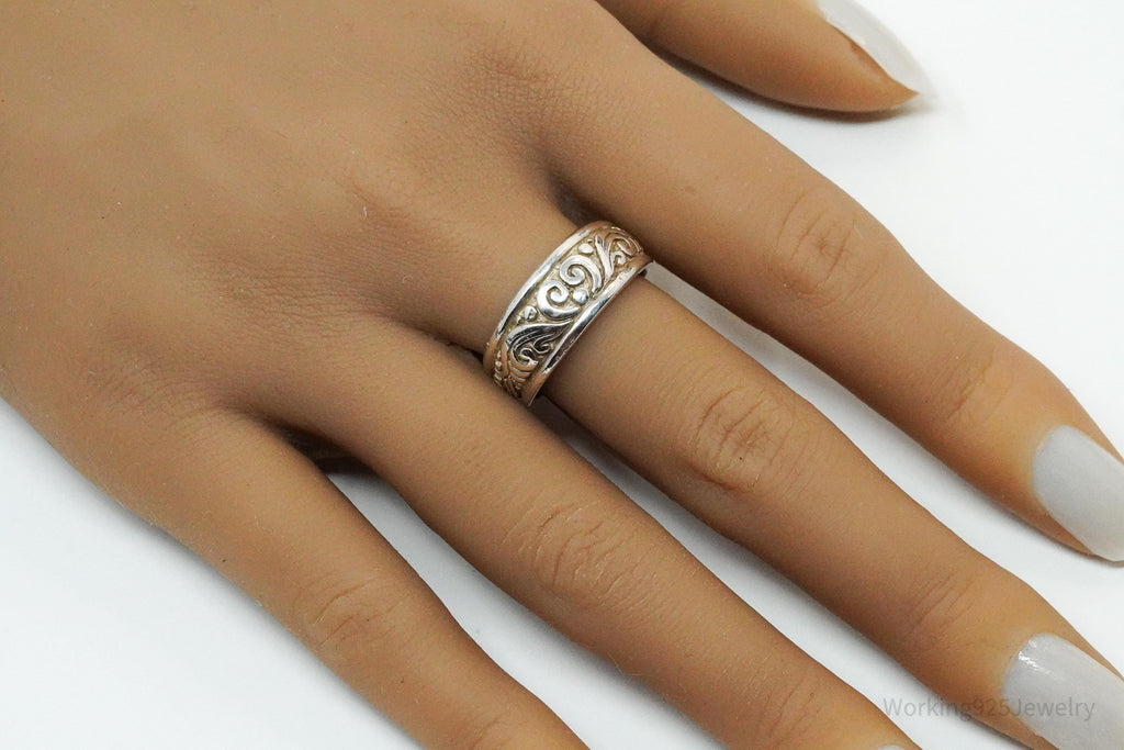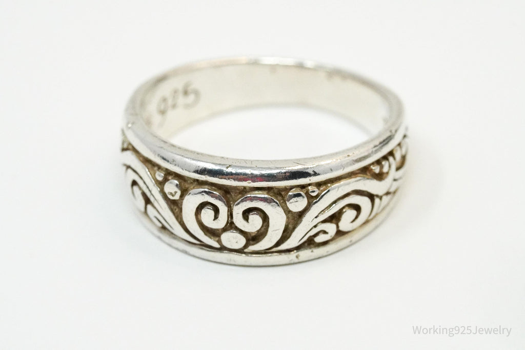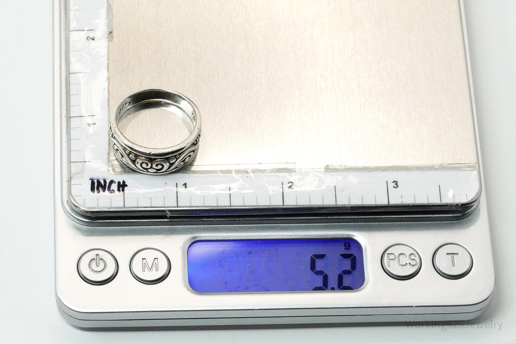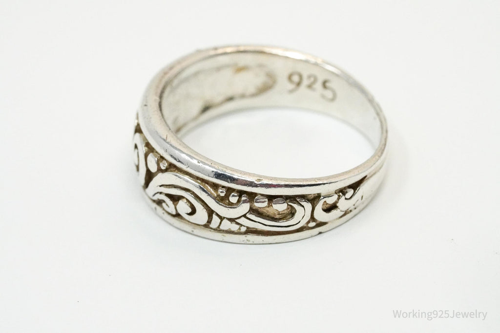 Vintage Scroll Design Sterling Silver Band Ring - Size 9