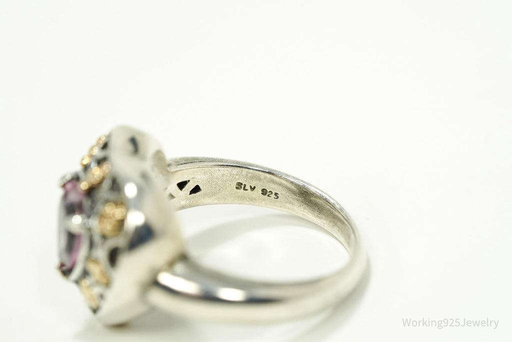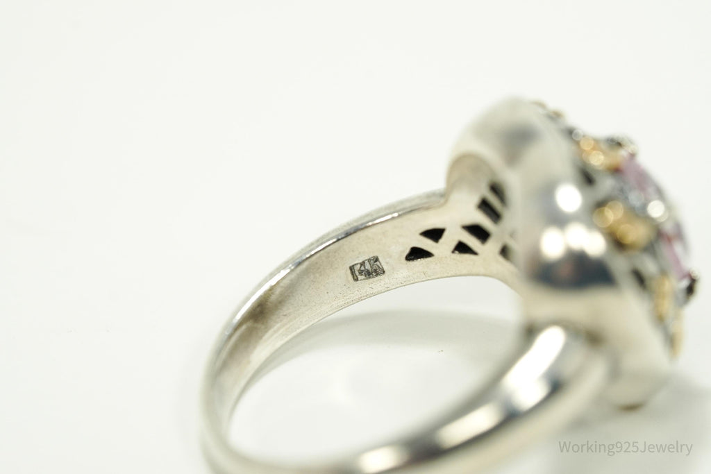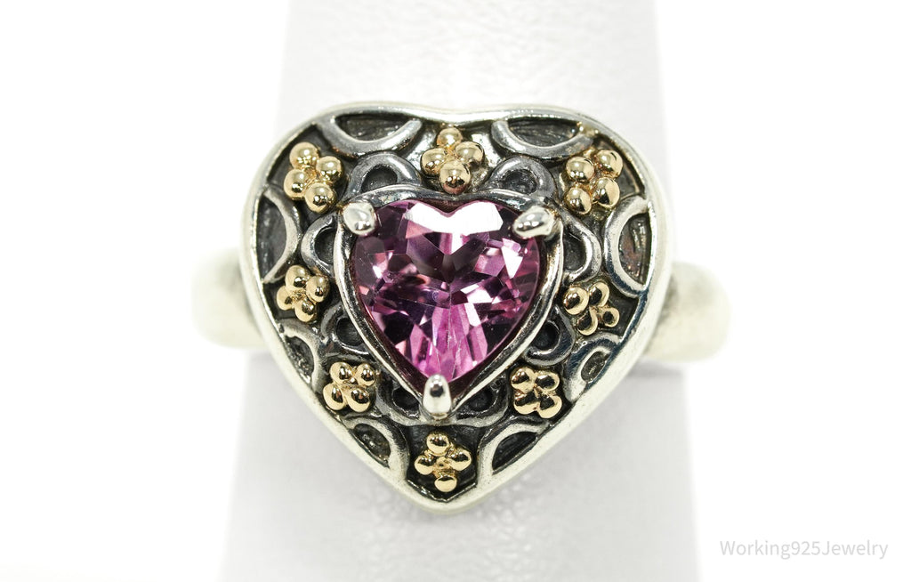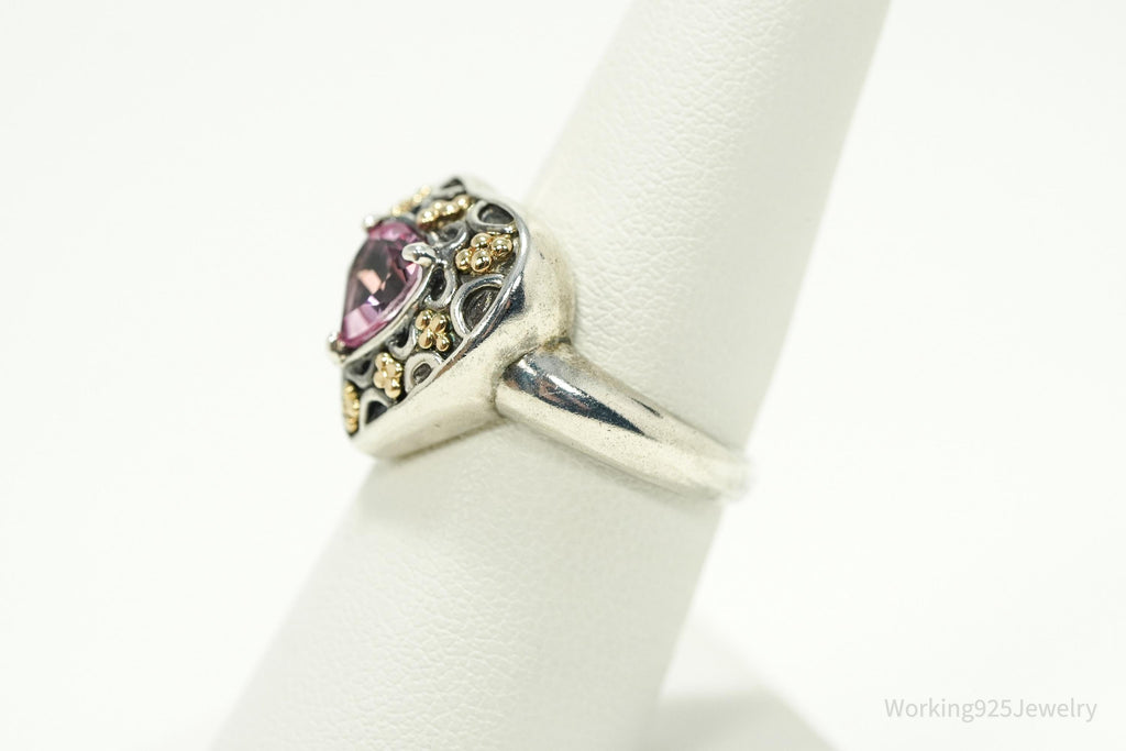 Vintage SLV Pink Topaz 14K Yellow Gold Sterling Silver Ring - Size 7