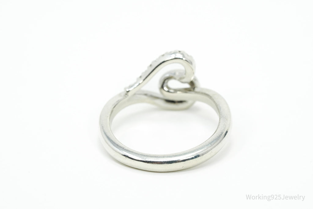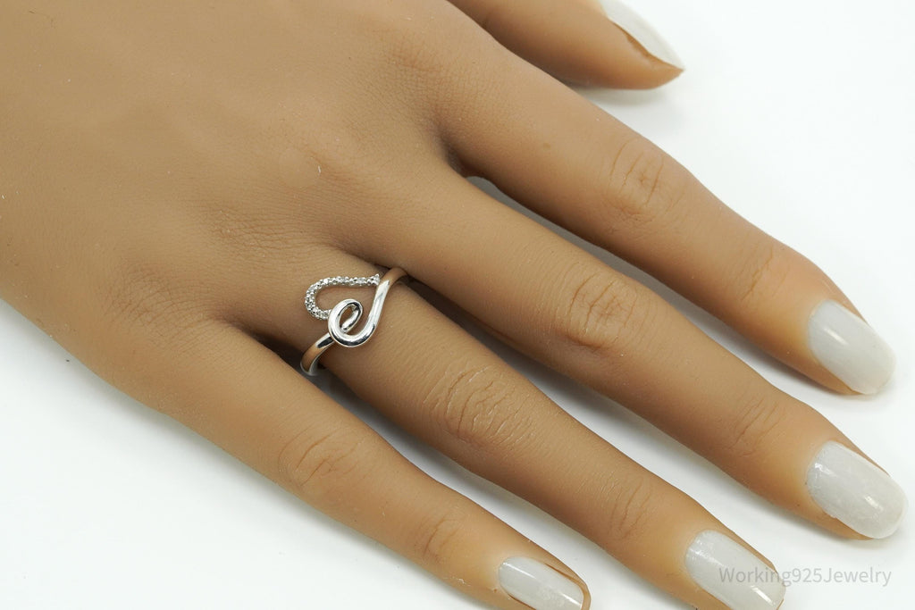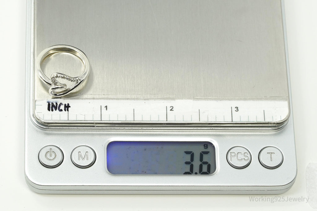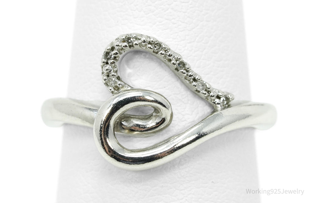 Vintage SUN White Diamond Heart Sterling Silver Ring - Size 6.75