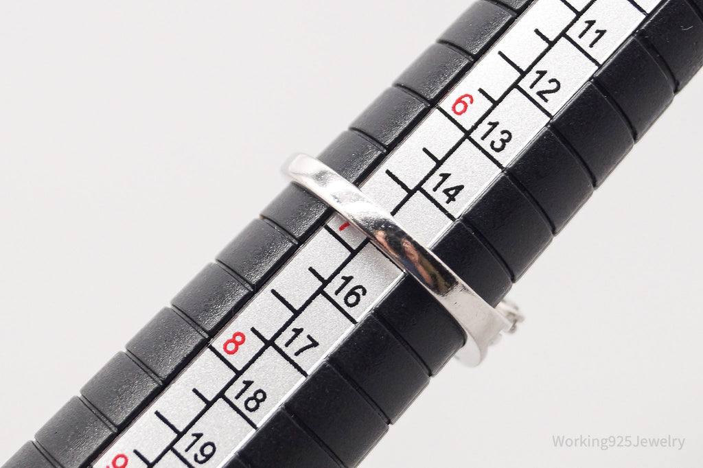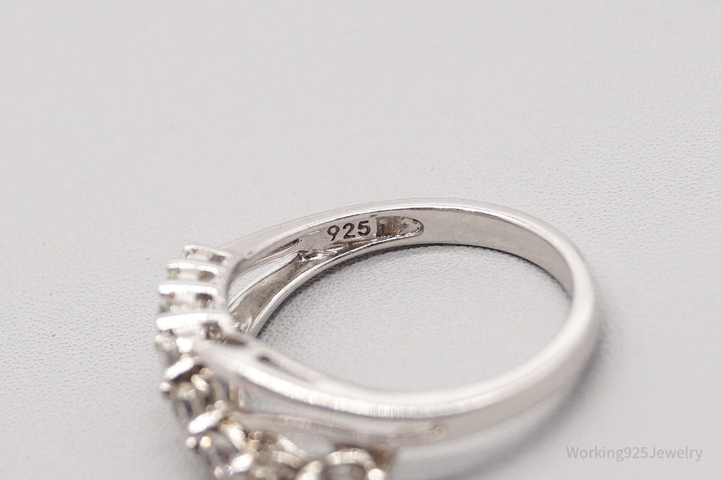 Vintage SUN White Sapphire Sterling Silver Ring - Size 6.75