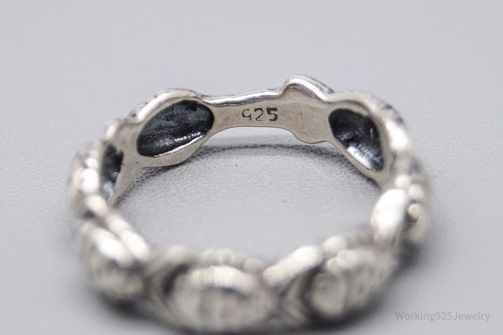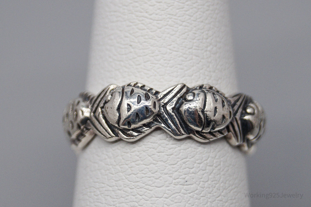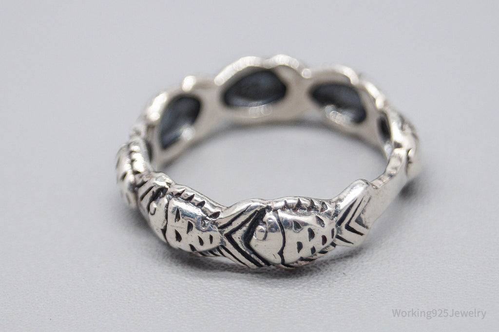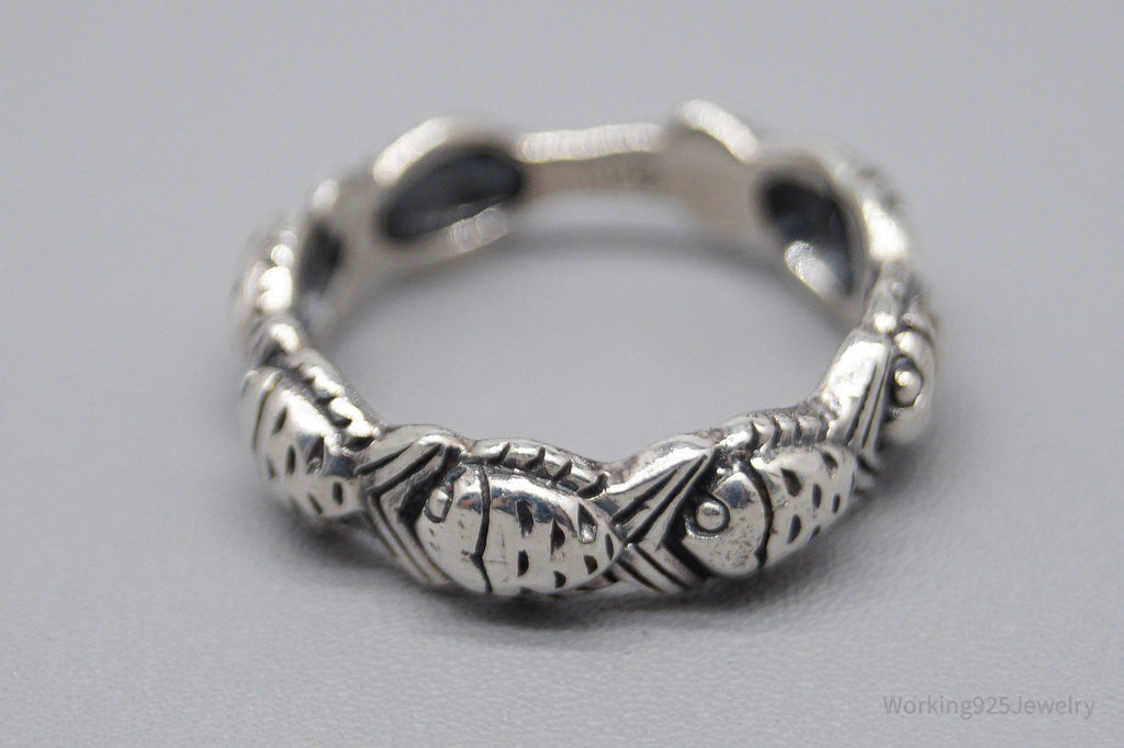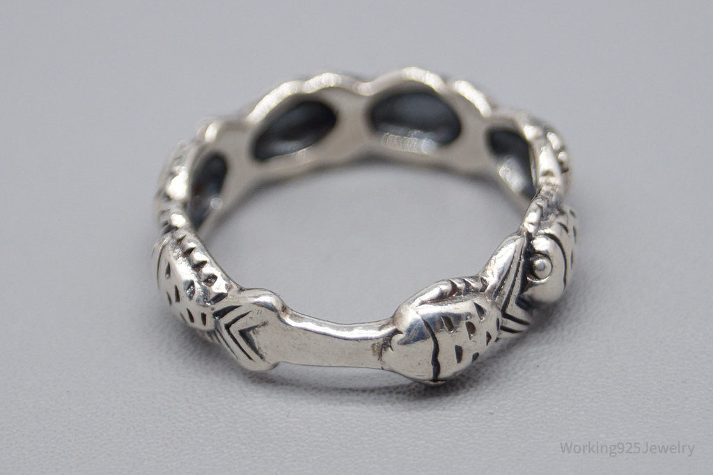Vintage Swimming Fish Sterling Silver Band Ring - Size 6