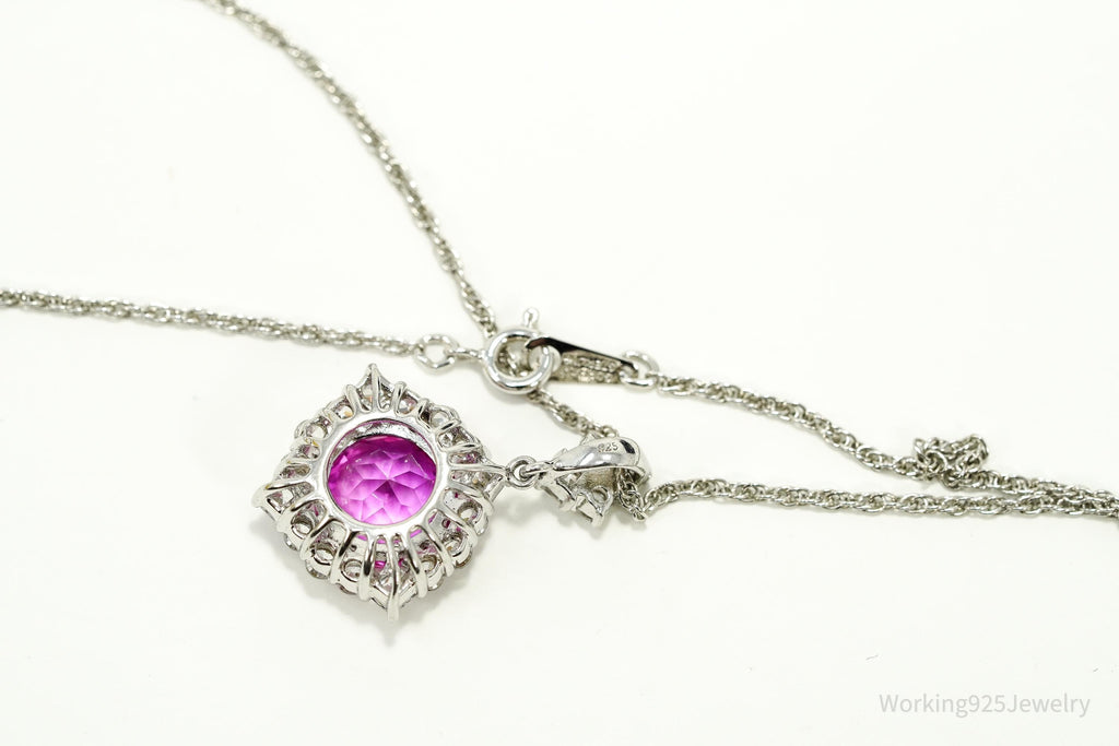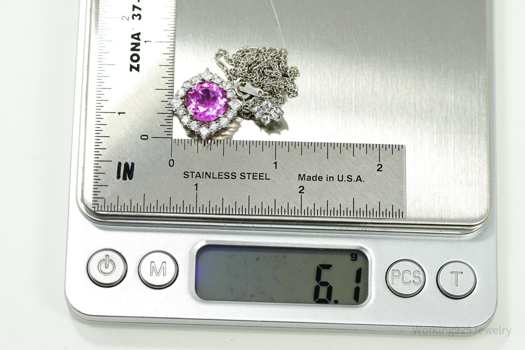 Vintage Synthetic Pink Sapphire & Cubic Zirconia Sterling Silver Necklace 18"