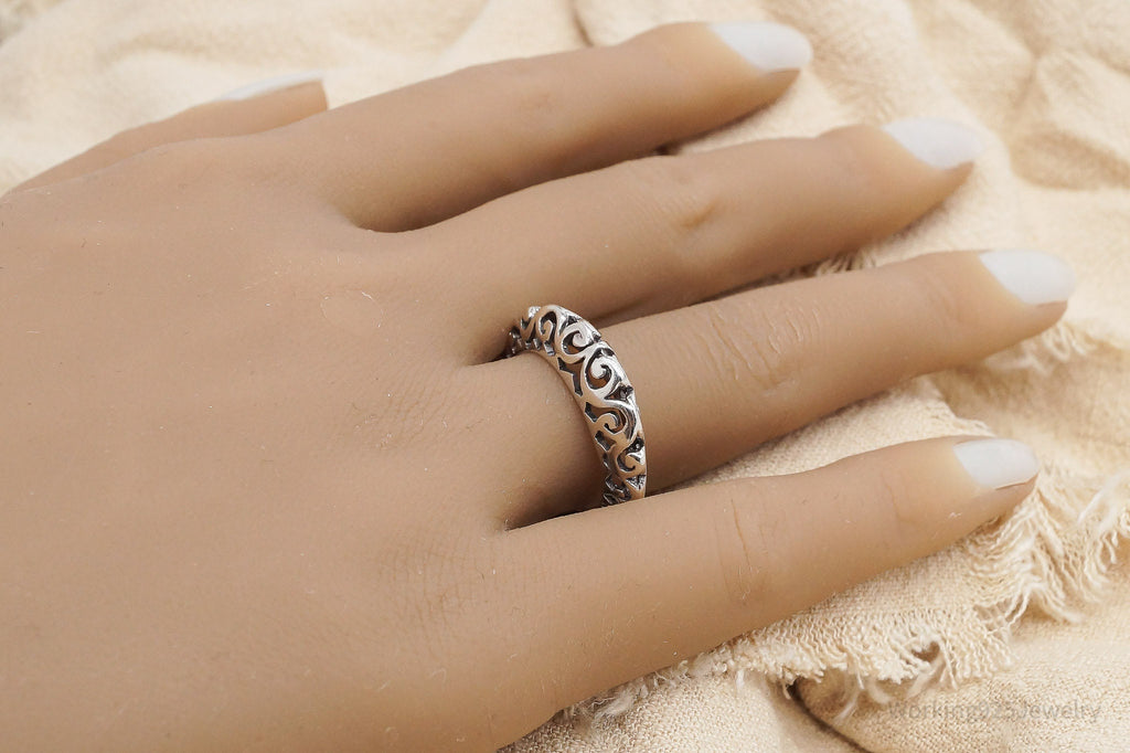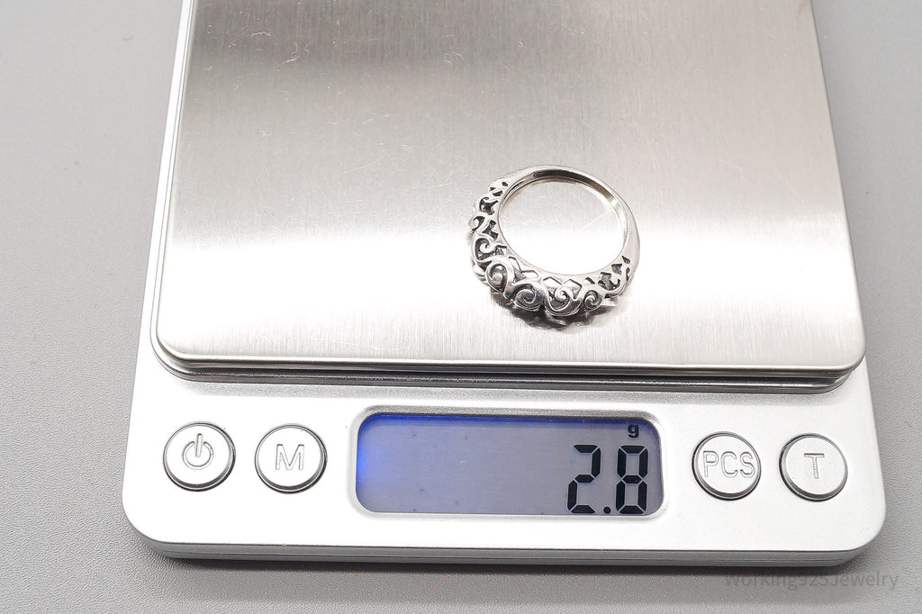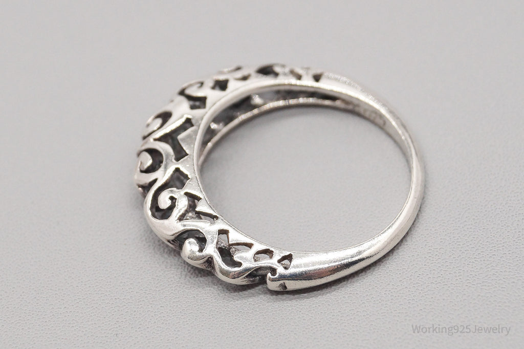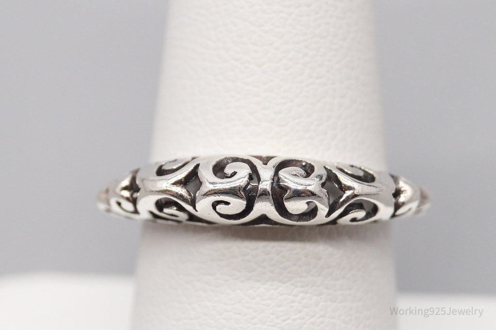Vintage Tall Scrolls & Swirls Sterling Silver Band Ring - Size 7.75