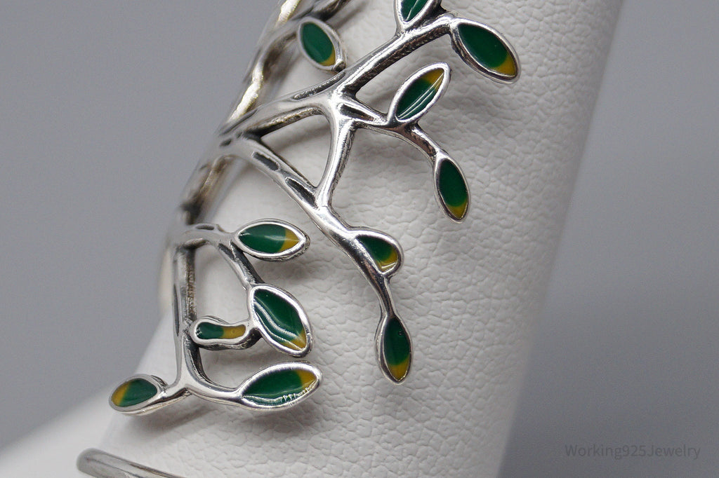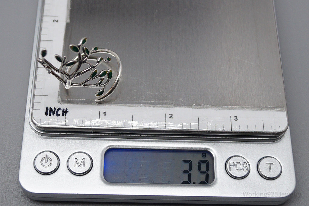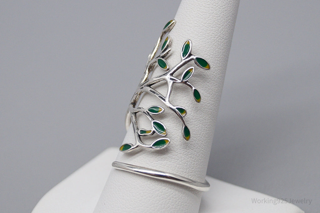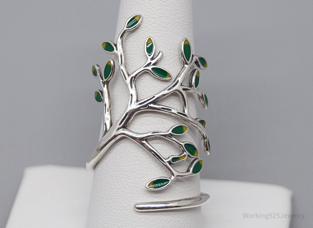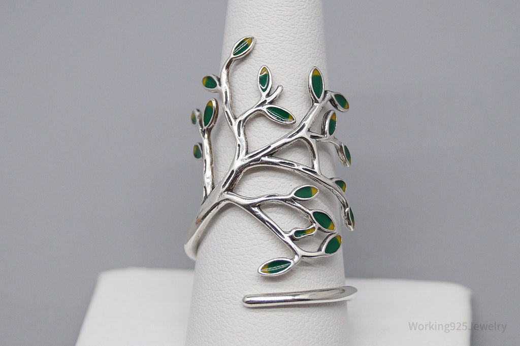 Vintage Tree Sterling Silver & Enamel Wrap Ring - Size 10.15 Adjustable