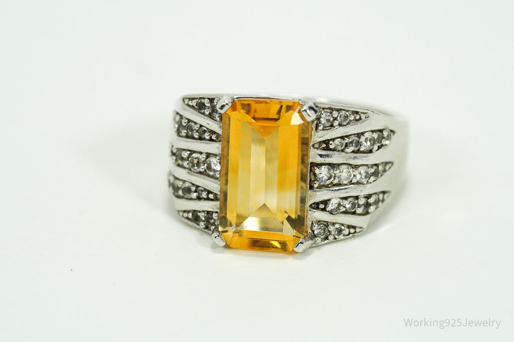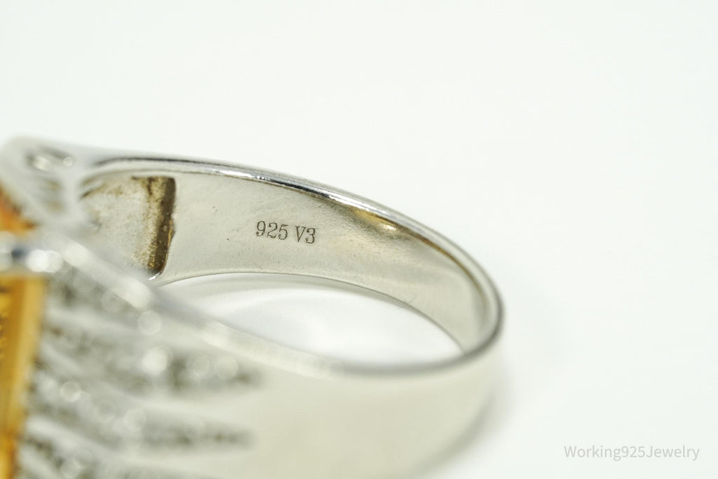 Vintage V3 Citrine & White Topaz Sterling Silver Ring - Size 9.25