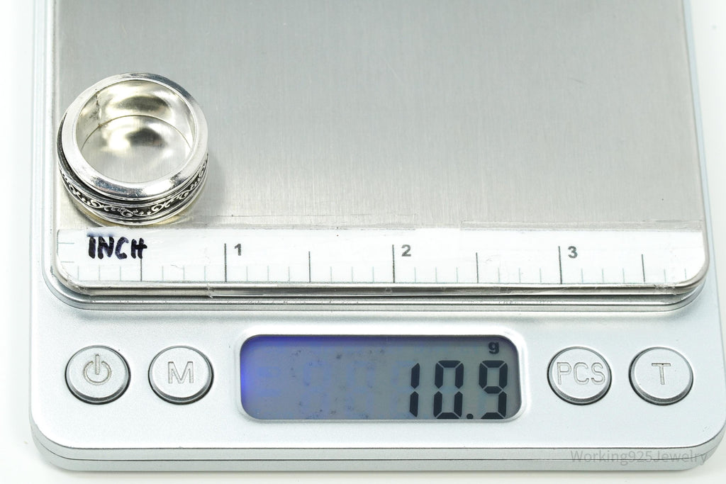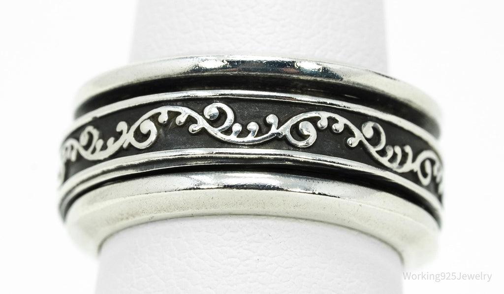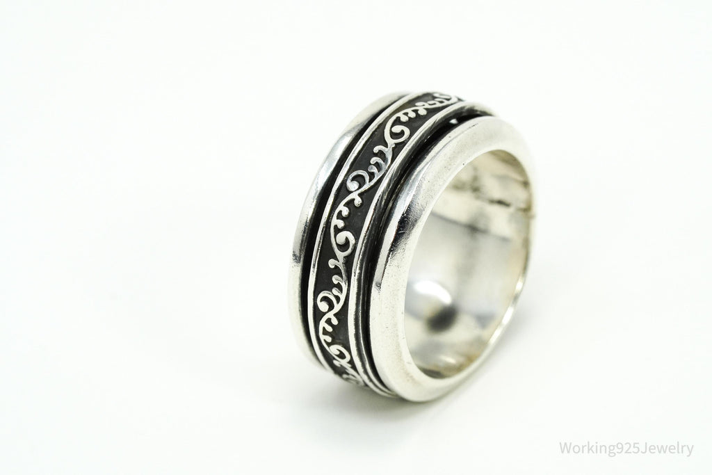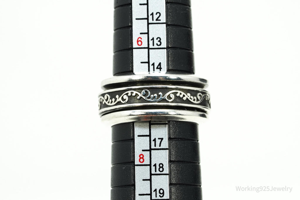 Vintage Vine Design Sterling Silver Spinner Ring - Size 7.25