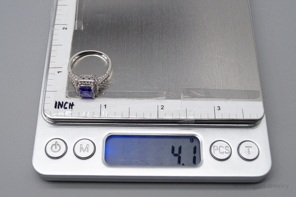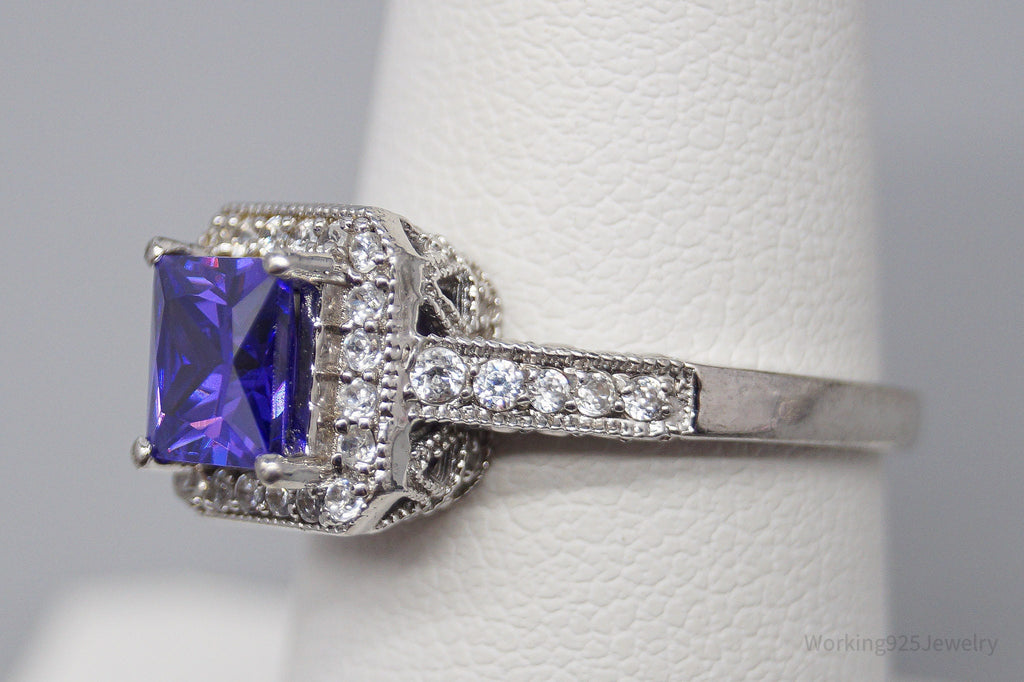 Vintage Violet Stone & White Cubic Zirconia Sterling Silver Ring - Size 7