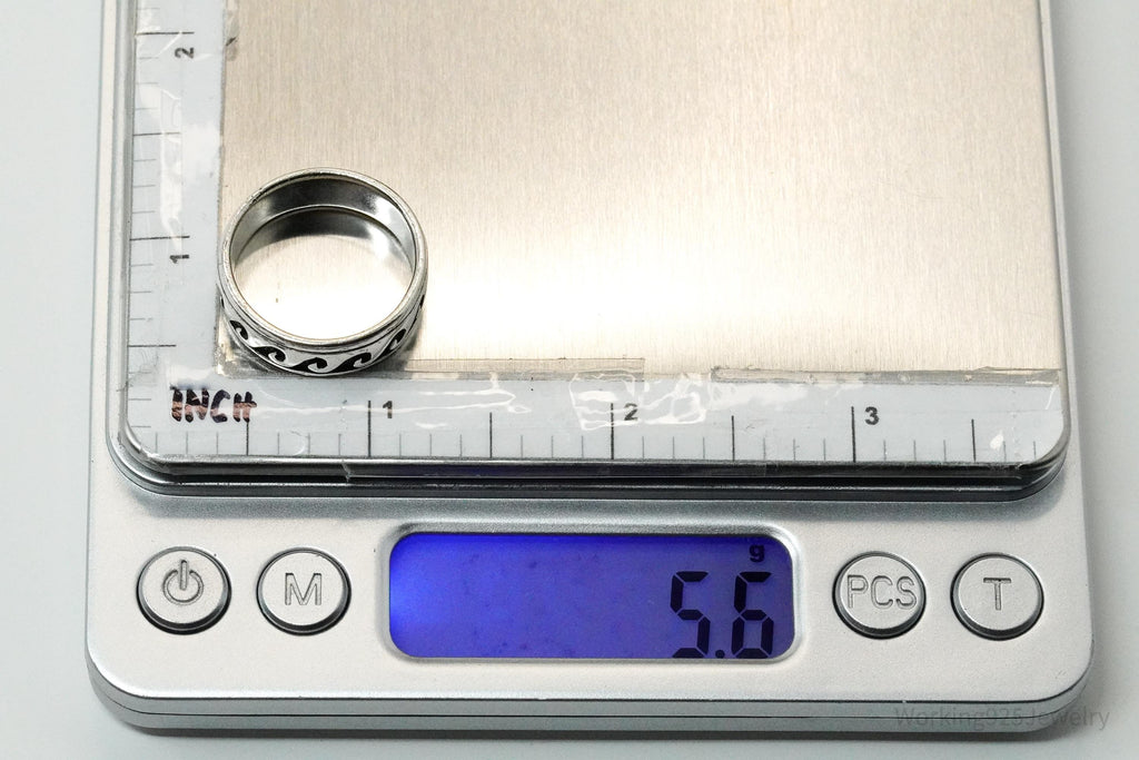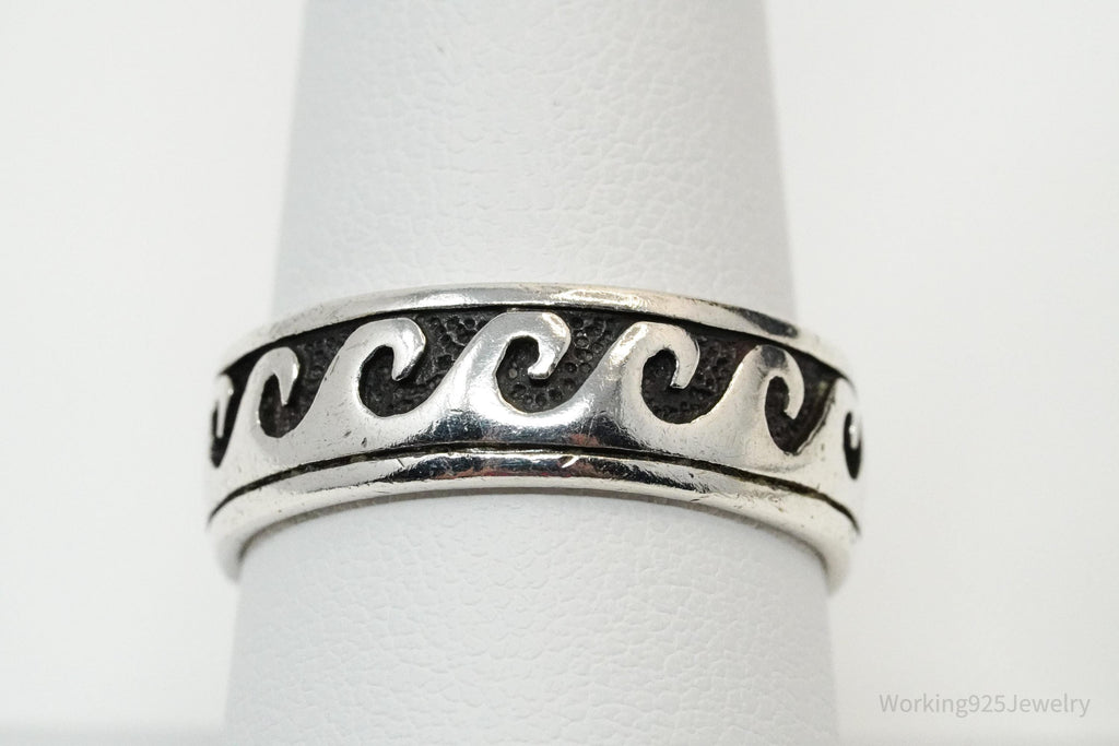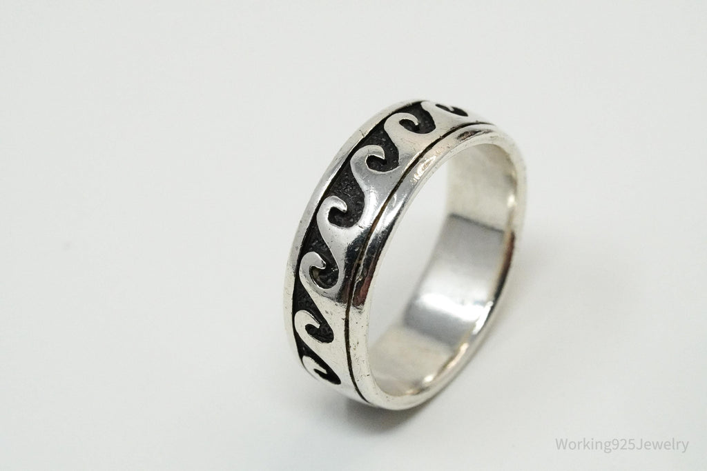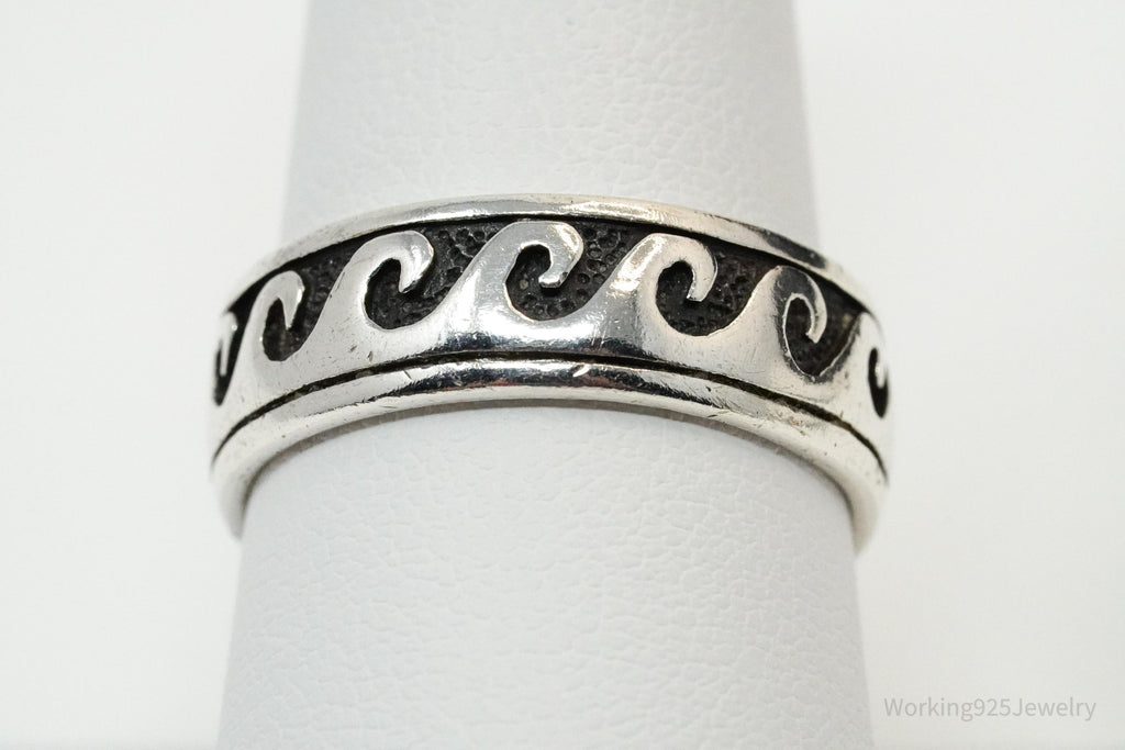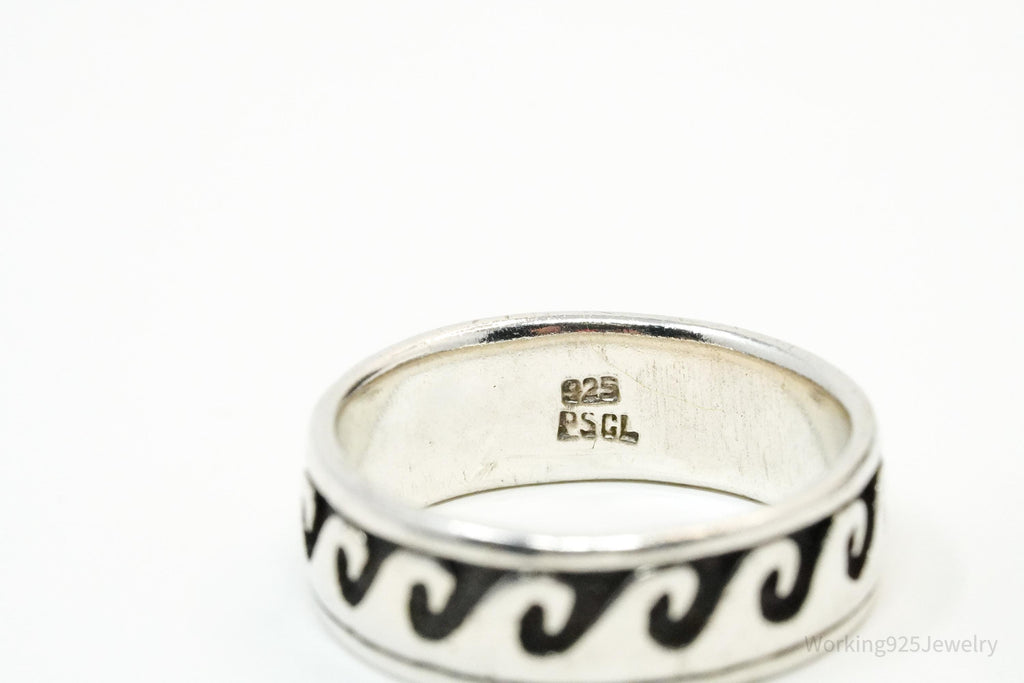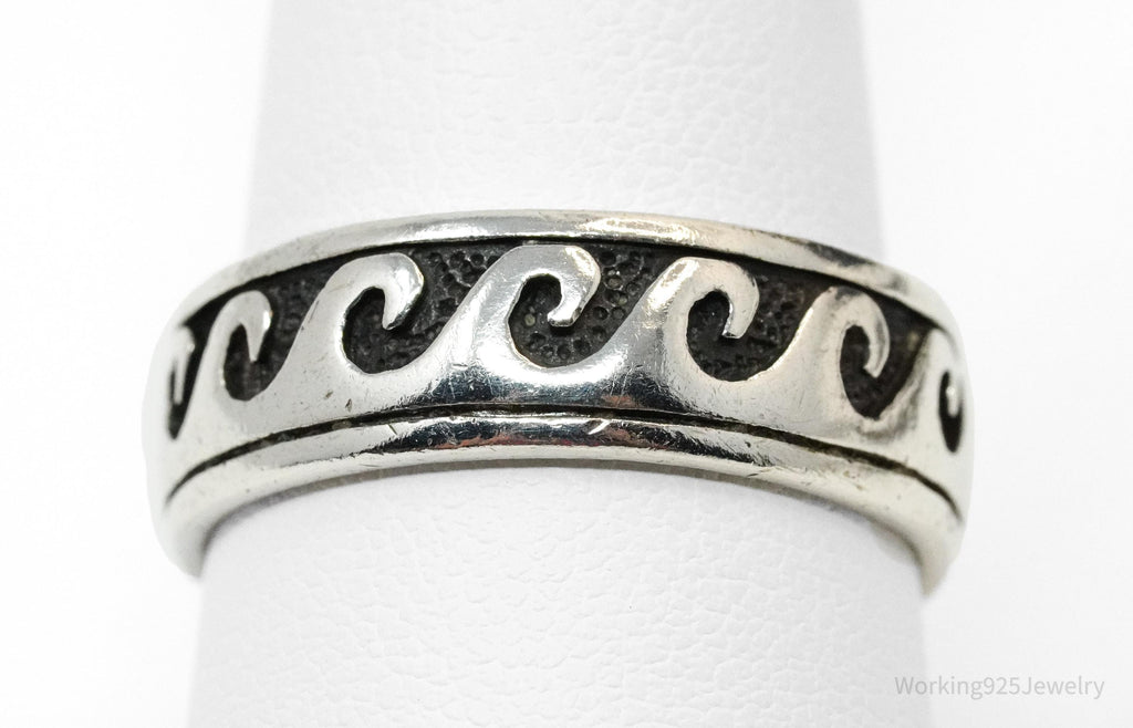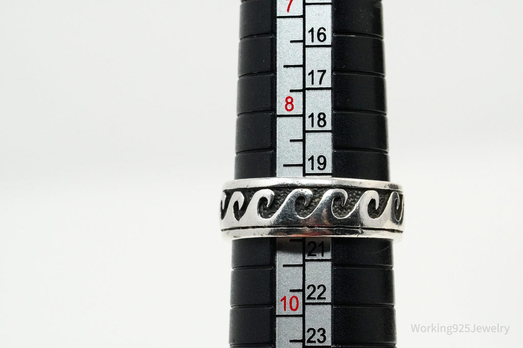 Vintage Waves Design Sterling Silver Band Ring - Size 9.25