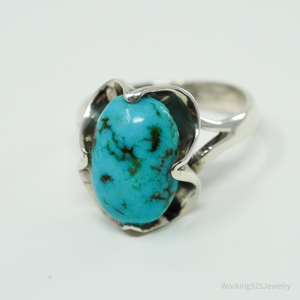 Vintage Western Turquoise Sterling Silver Ring - Size 6.75