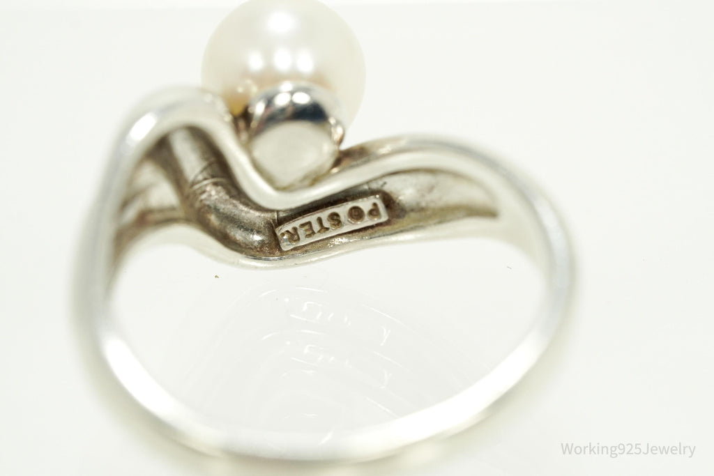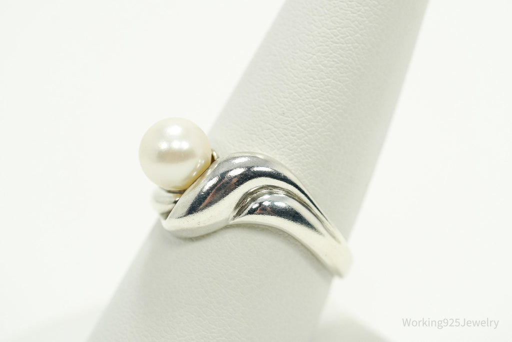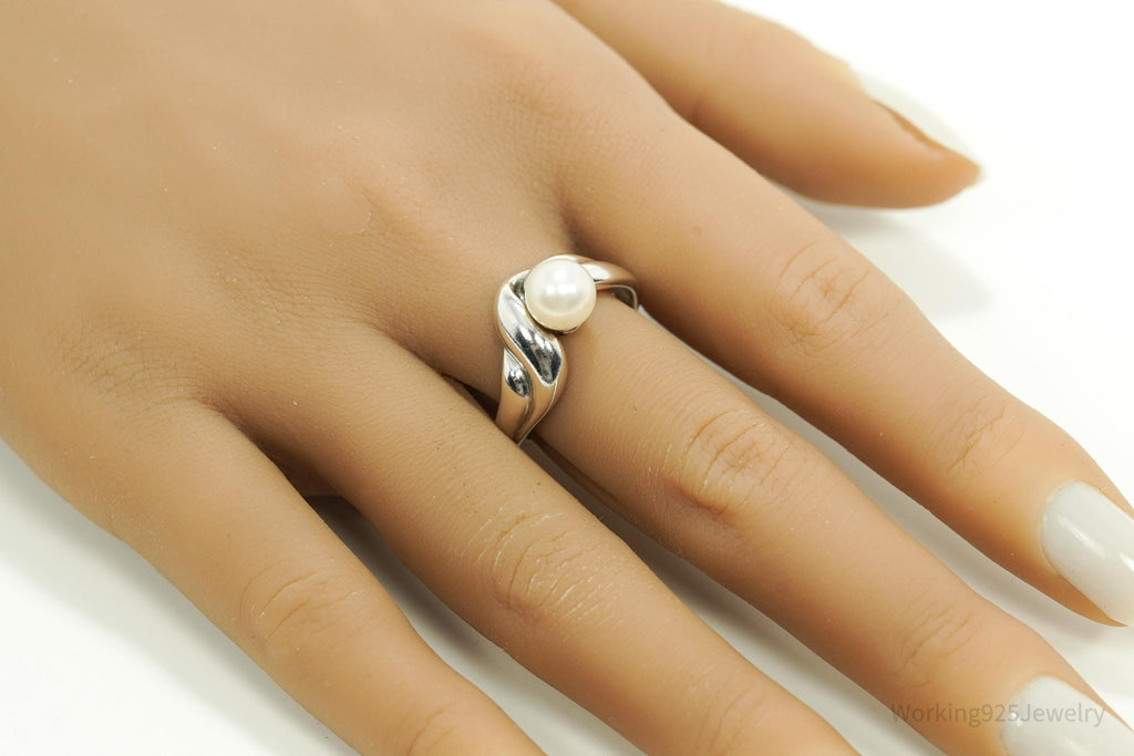 Vintage White Pearl Sterling Silver Ring - Size 9