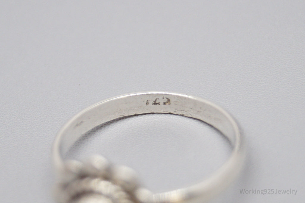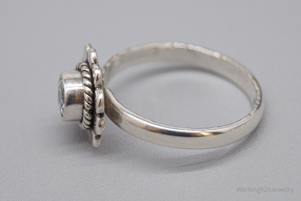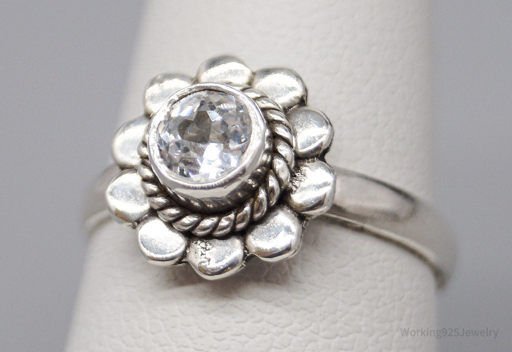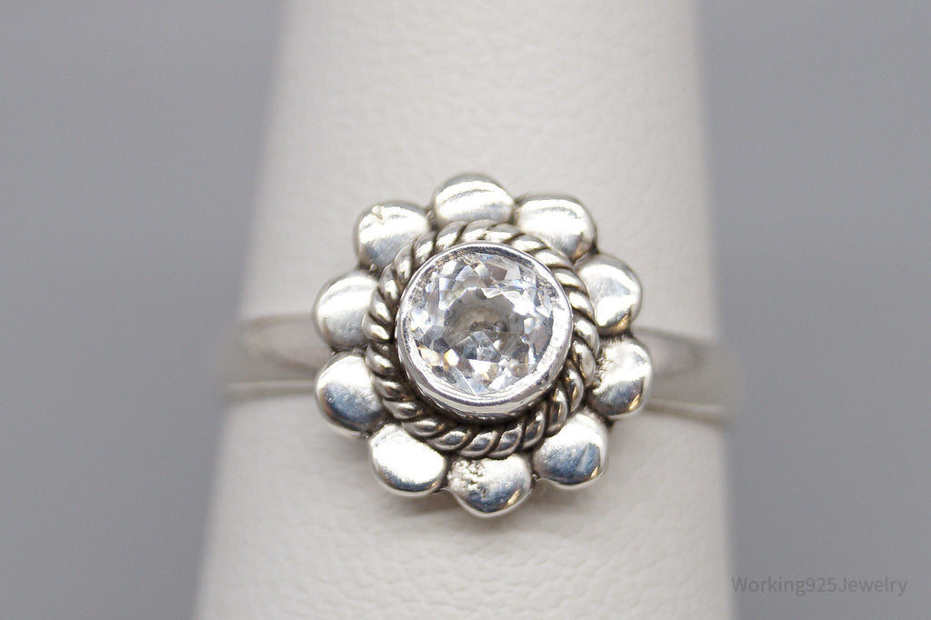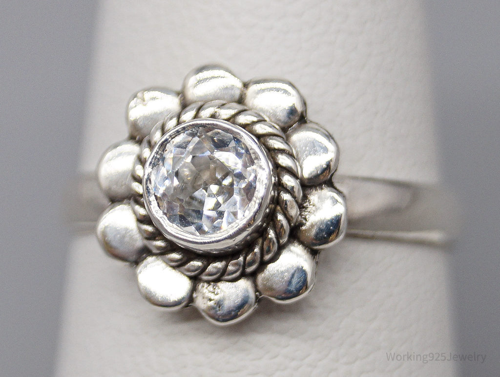 Vintage White Topaz Sterling Silver Flower Ring - Size 6.75