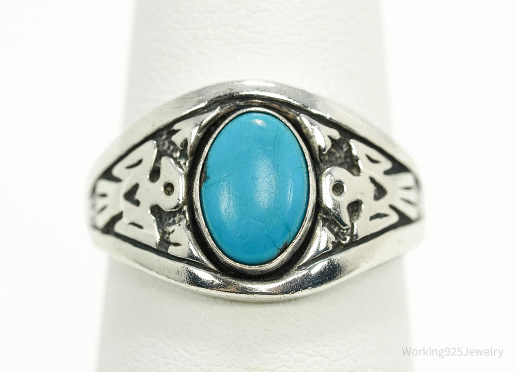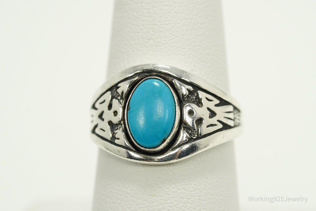 Vintage WMCO Turquoise ThunderBird Design Sterling Silver Ring - Size 8