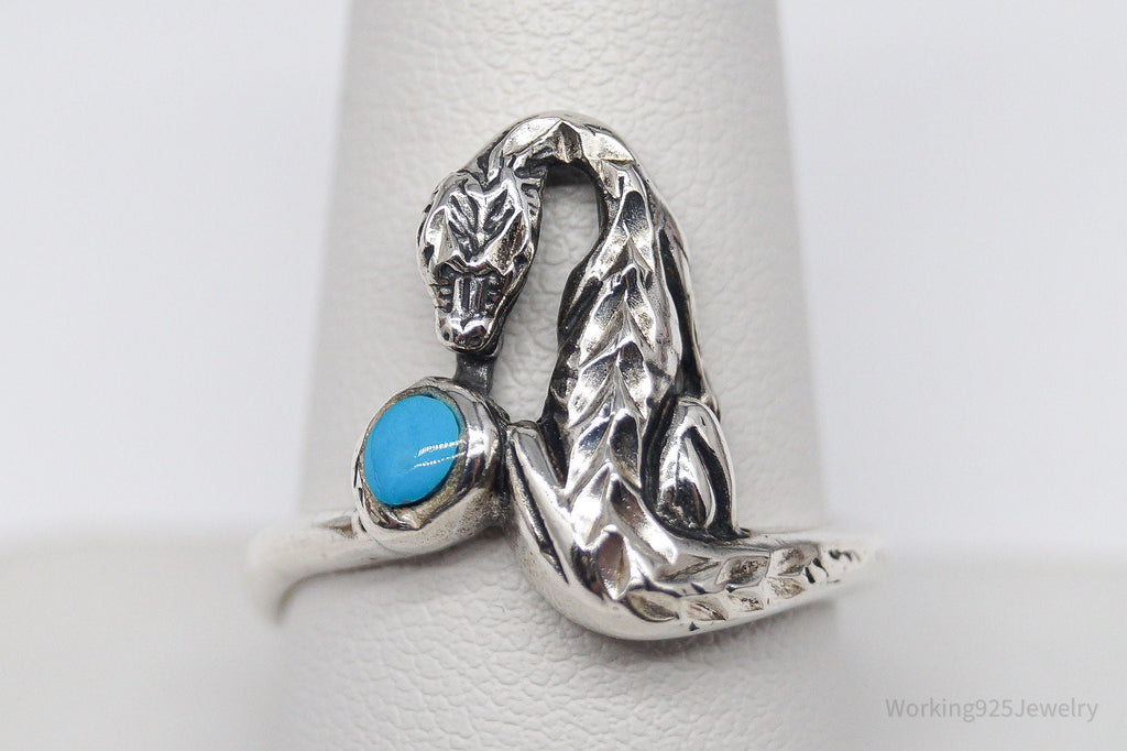 Vintage Wrapped Snake Turquoise Sterling Silver Ring - Size 9.75